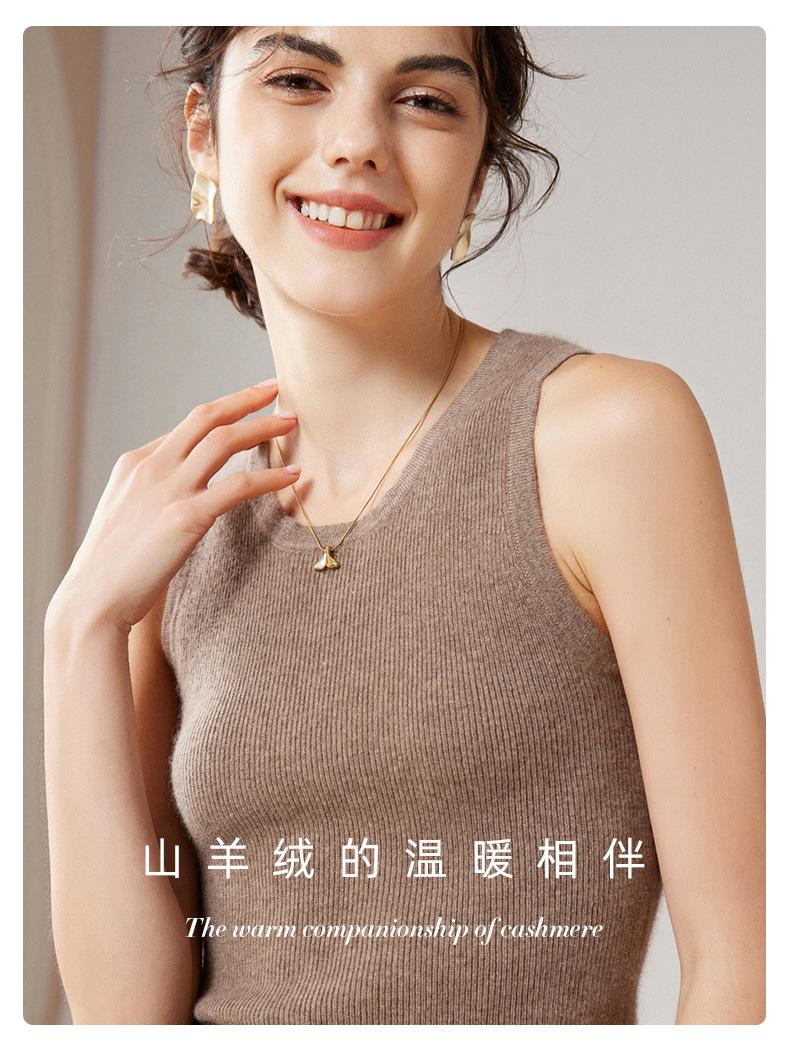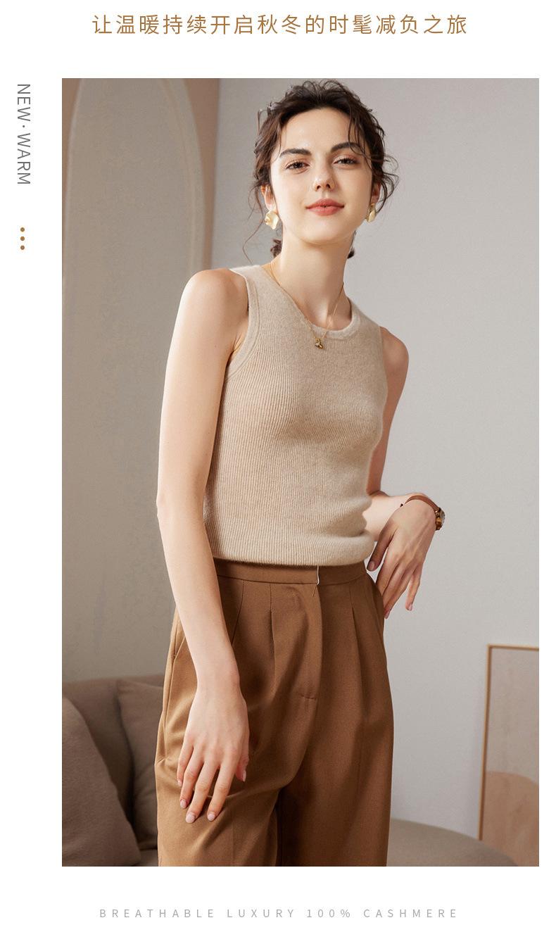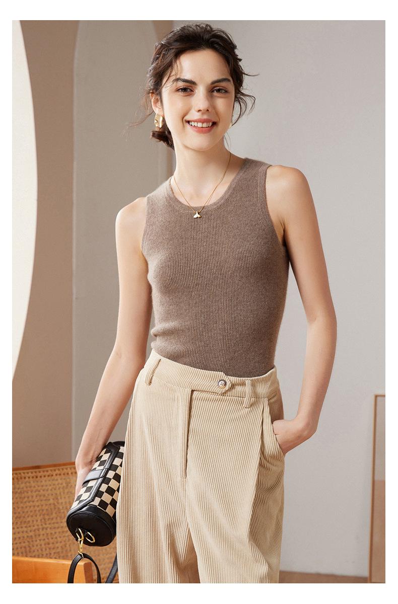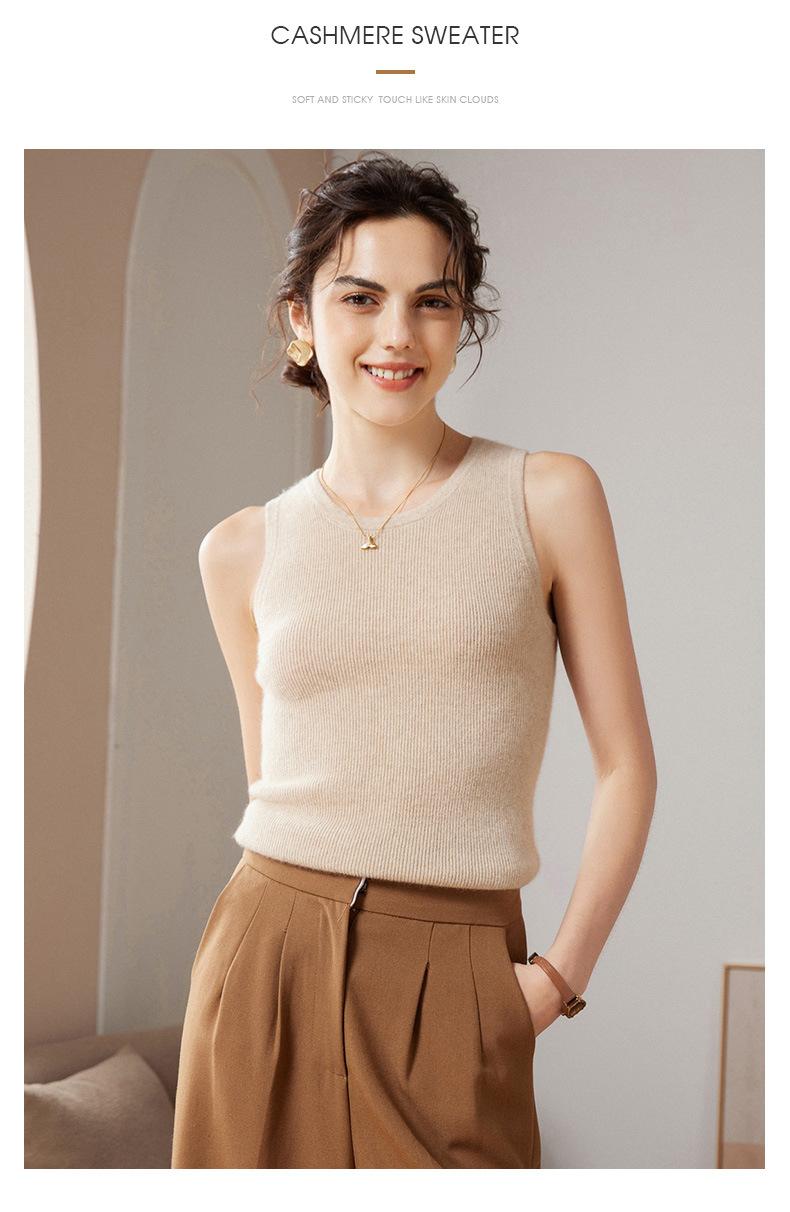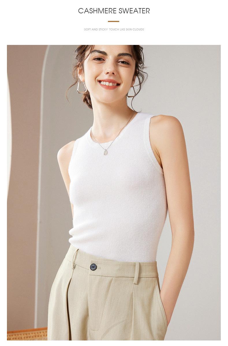 Chaleco de cachemira 100% pura para mujer, prenda interior de primavera/otoño/invierno, de punto ajustado, sin mangas, con escote en U apilado y tirantes pequeños.