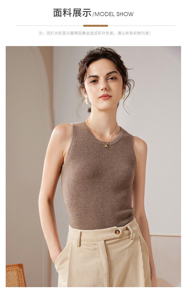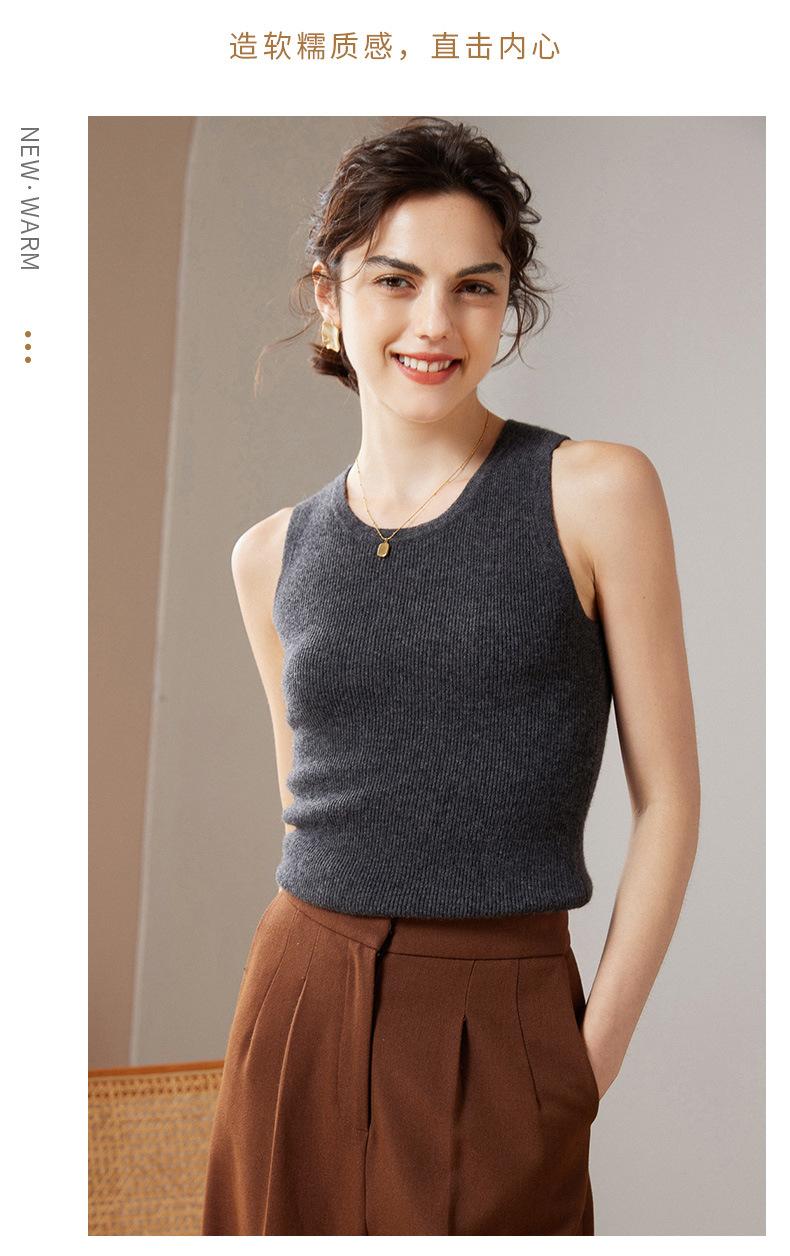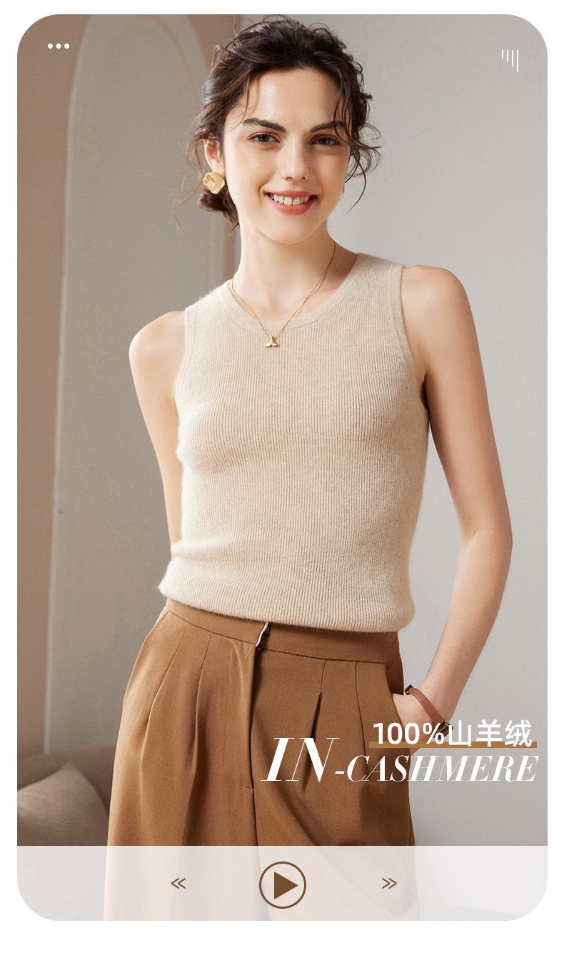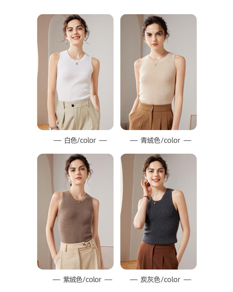 Chaleco de cachemira 100% pura para mujer, prenda interior de primavera/otoño/invierno, de punto ajustado, sin mangas, con escote en U apilado y tirantes pequeños.