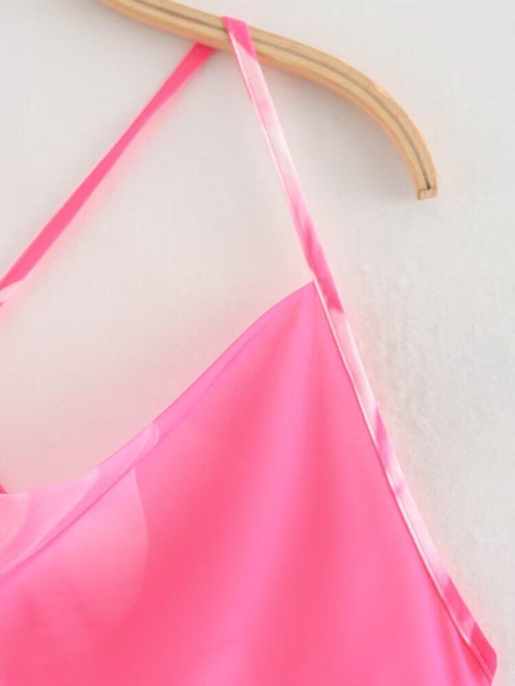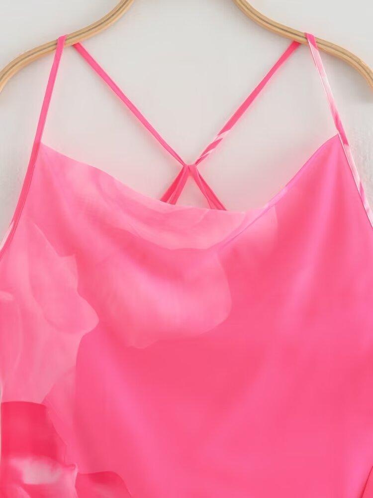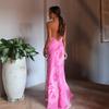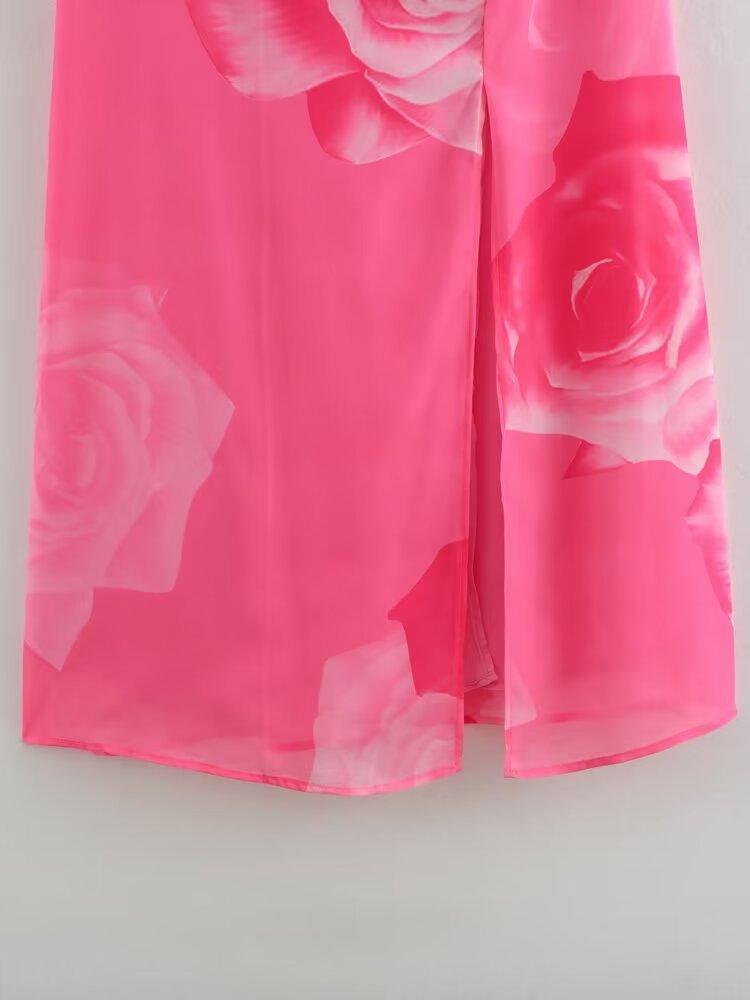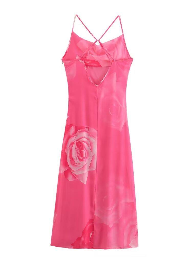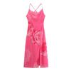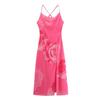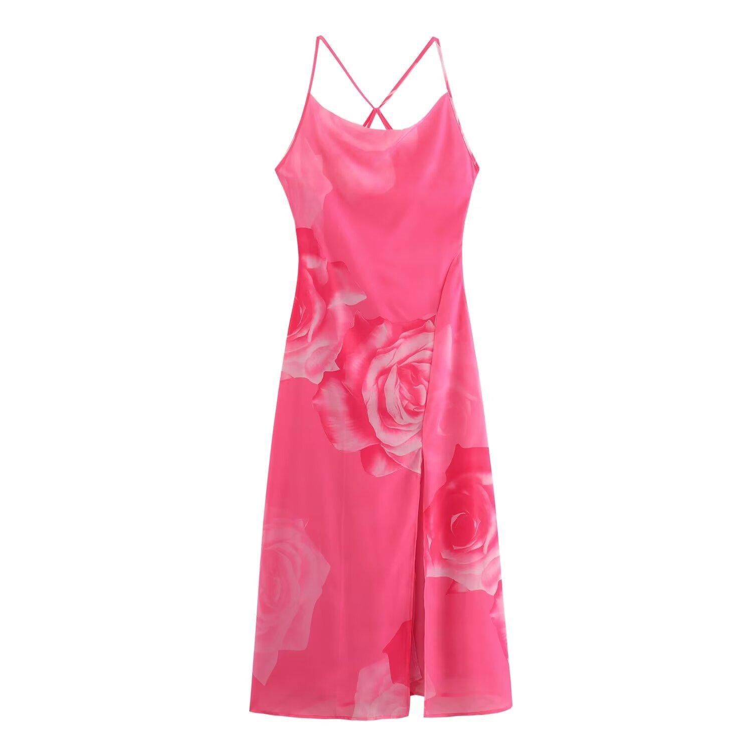 Vestido de verano de estilo europeo y americano con estampado de tirantes, espalda descubierta, sexy, con abertura alta y falda larga, a la moda.