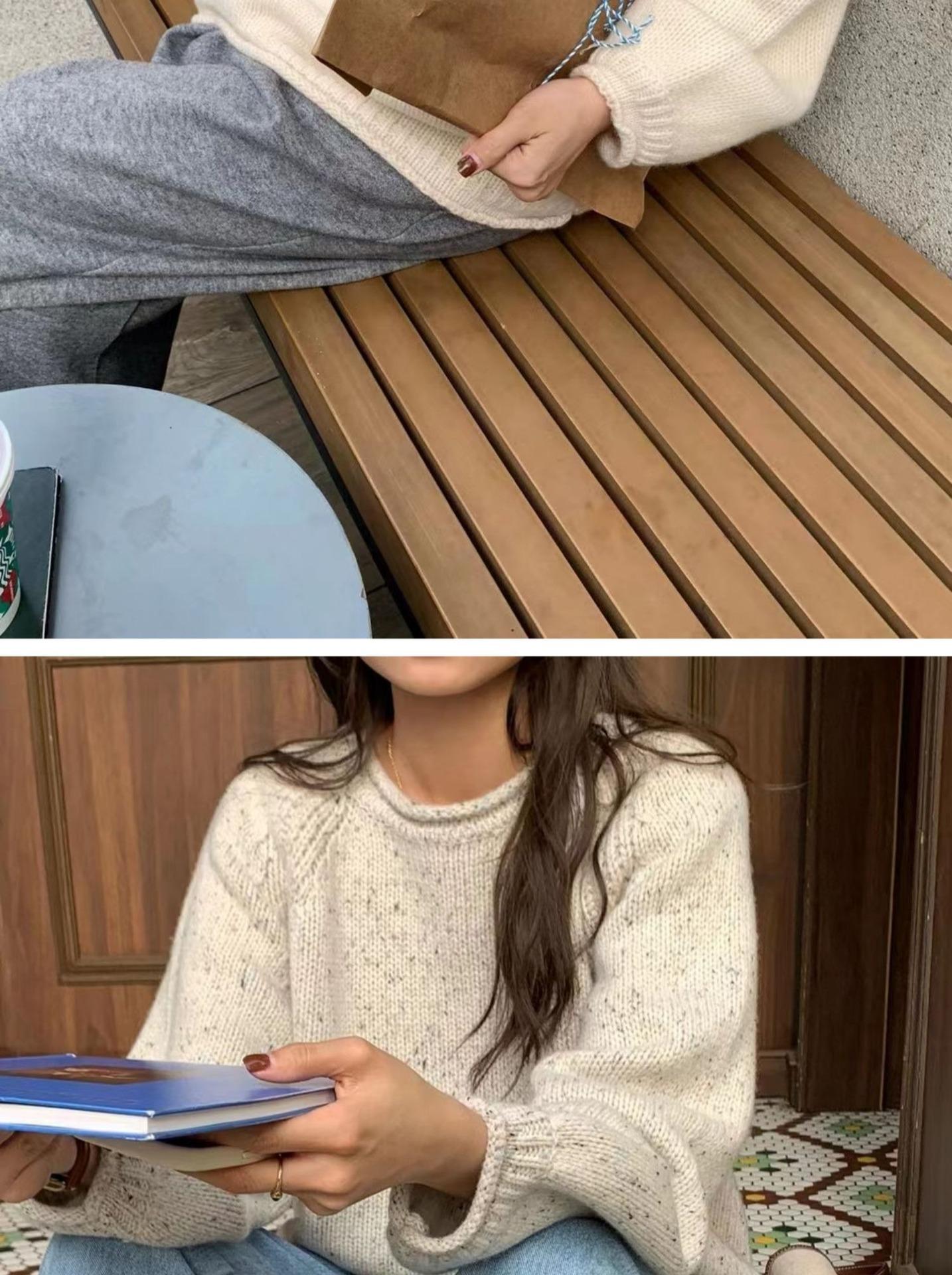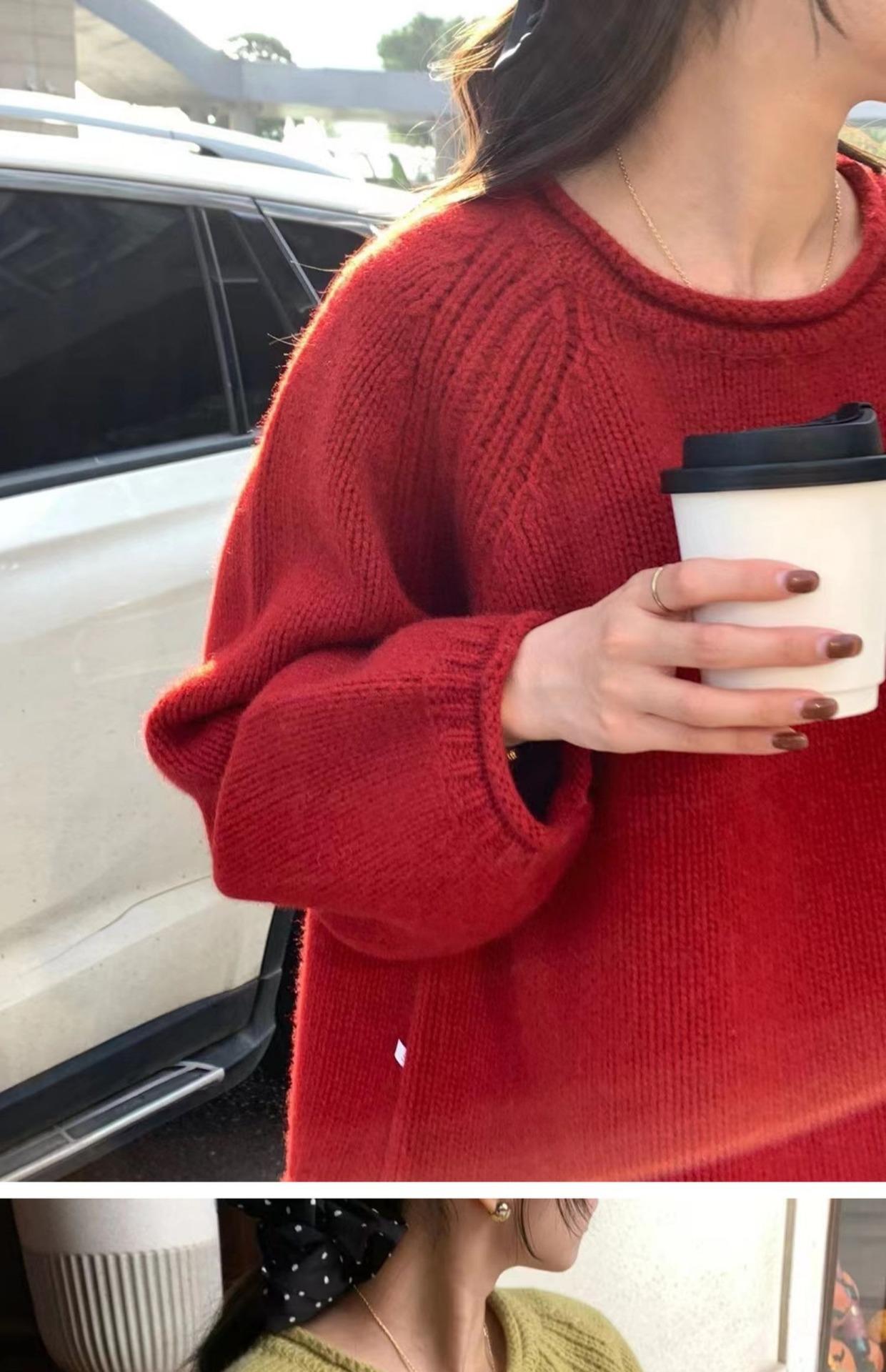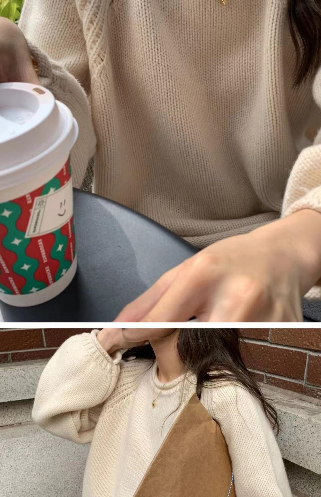 Suéter Holgado Estilo Perezoso para Mujer Suéter Otoño e Invierno Combinable Nuevo Holgado Ropa Exterior Top Básico Color Sólido Trendy