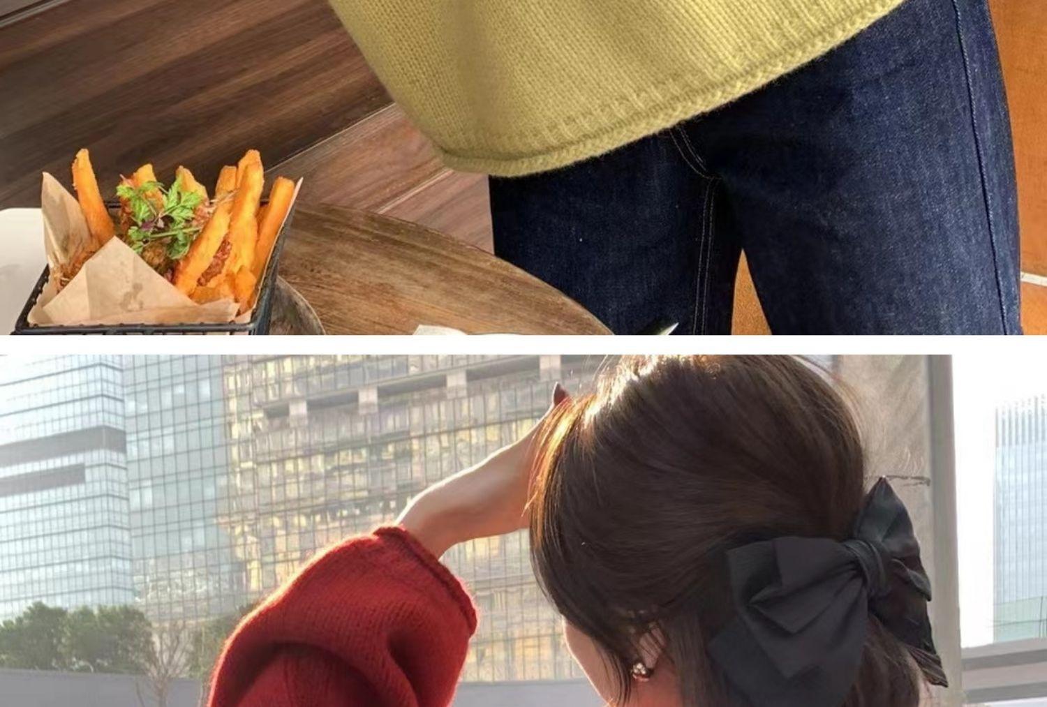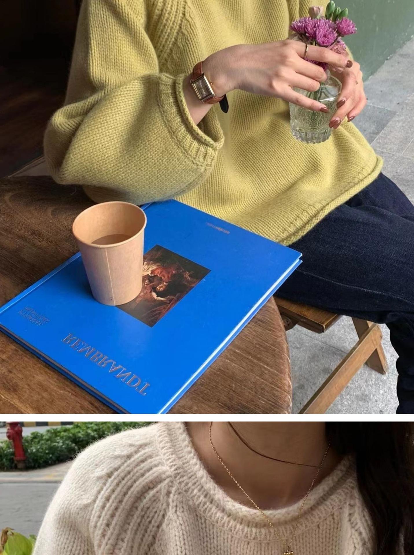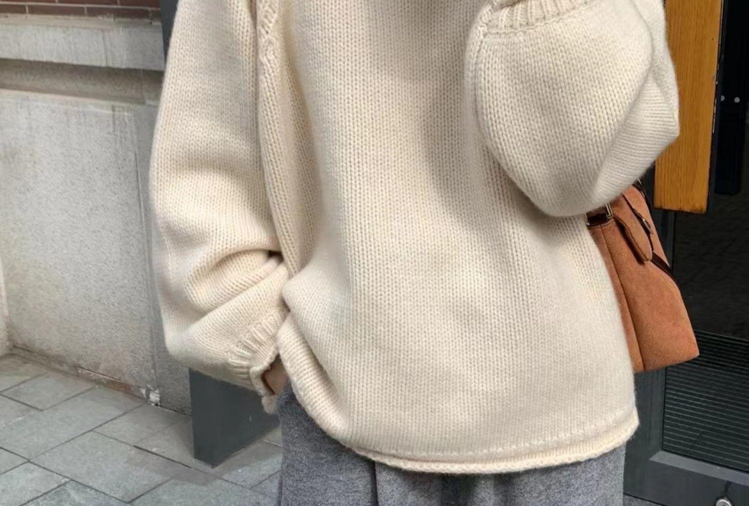 Suéter Holgado Estilo Perezoso para Mujer Suéter Otoño e Invierno Combinable Nuevo Holgado Ropa Exterior Top Básico Color Sólido Trendy