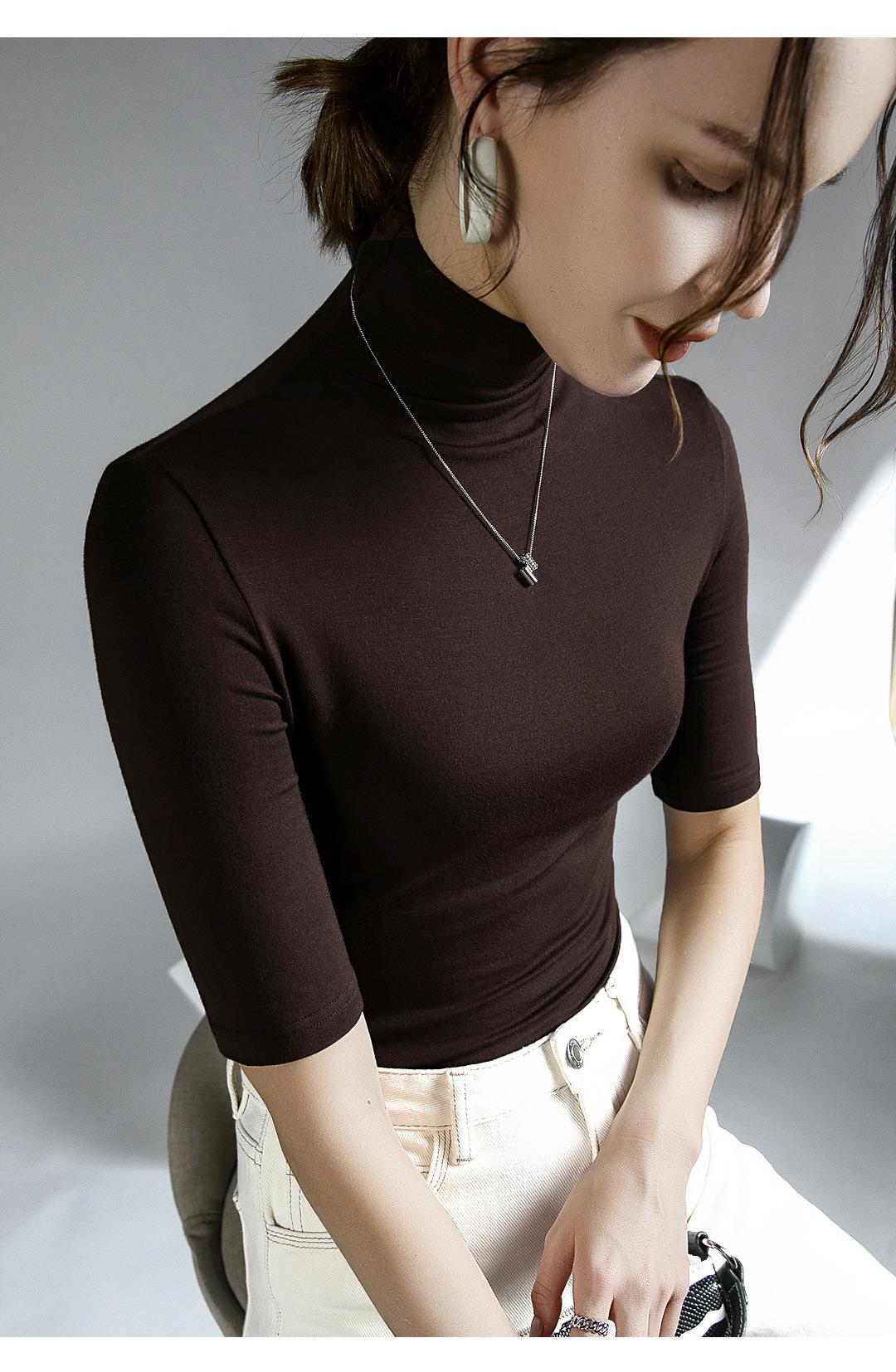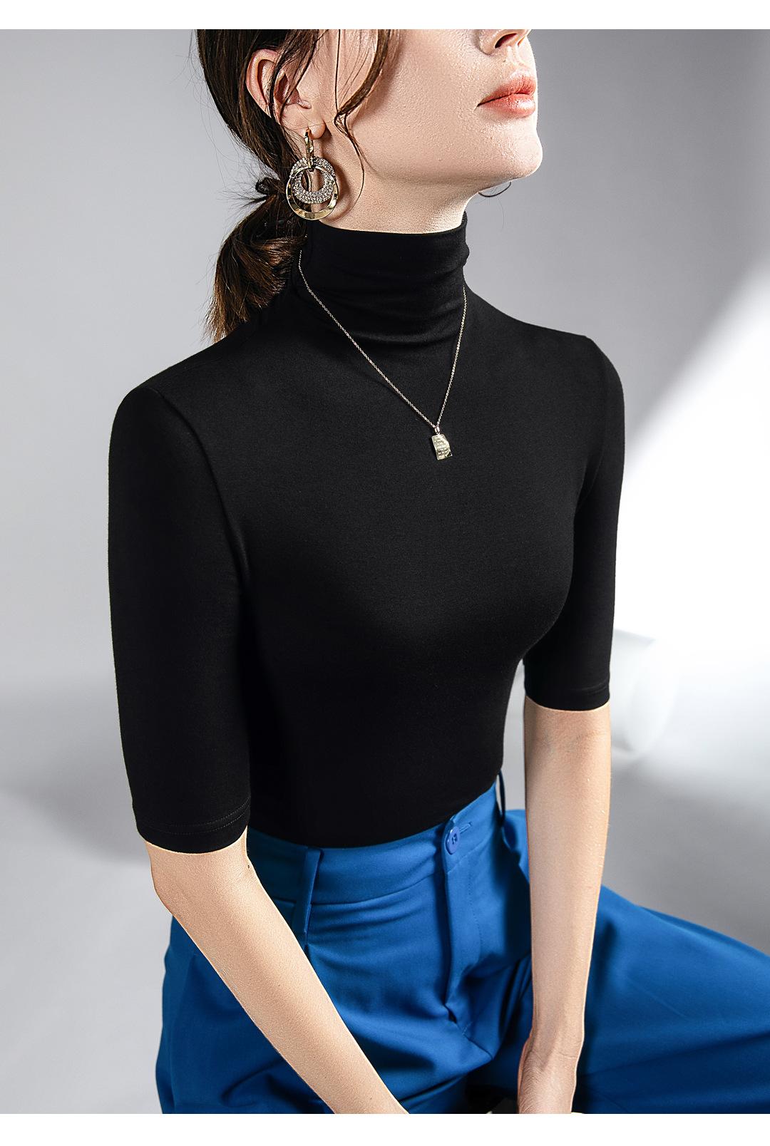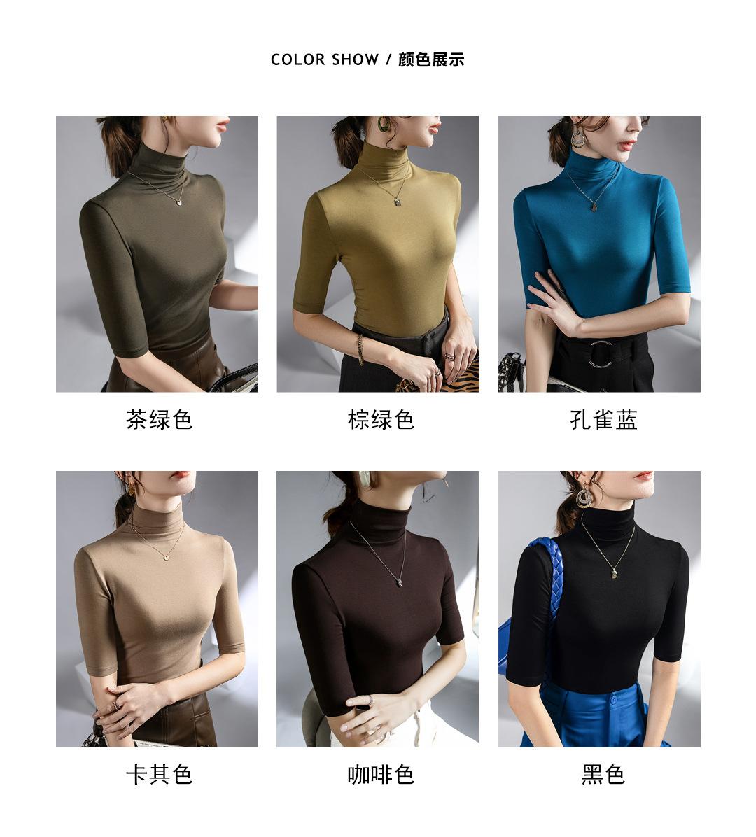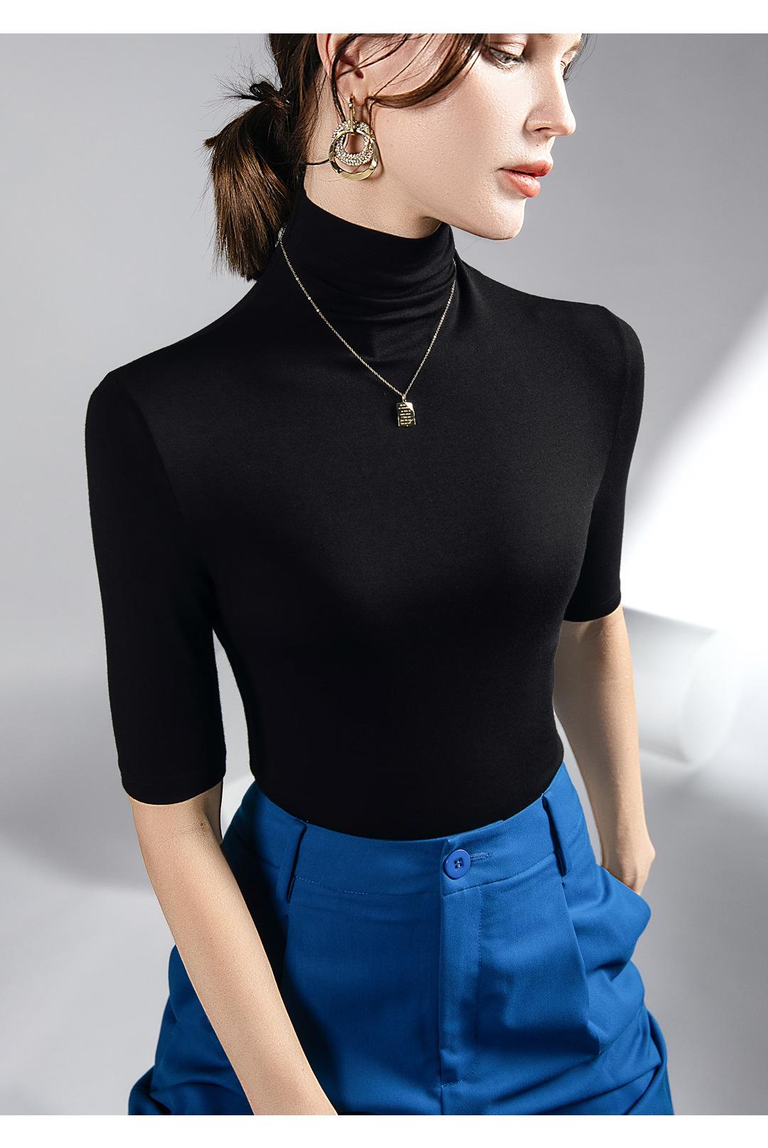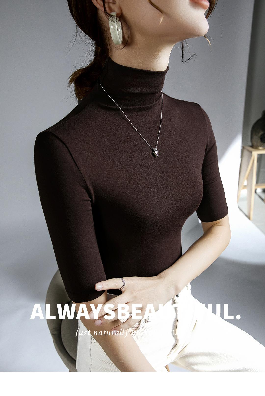 Top de cuello alto de media manga otoño e invierno Nueva camisa de fondo Camisa de manga larga con temperamento interior elástico