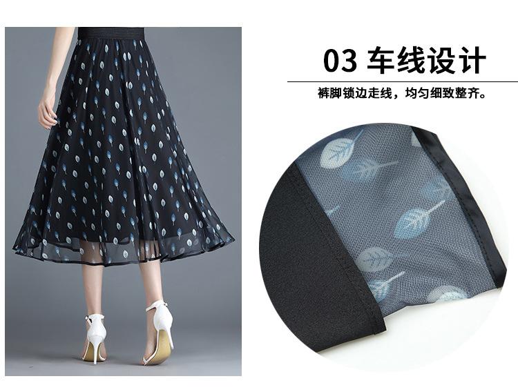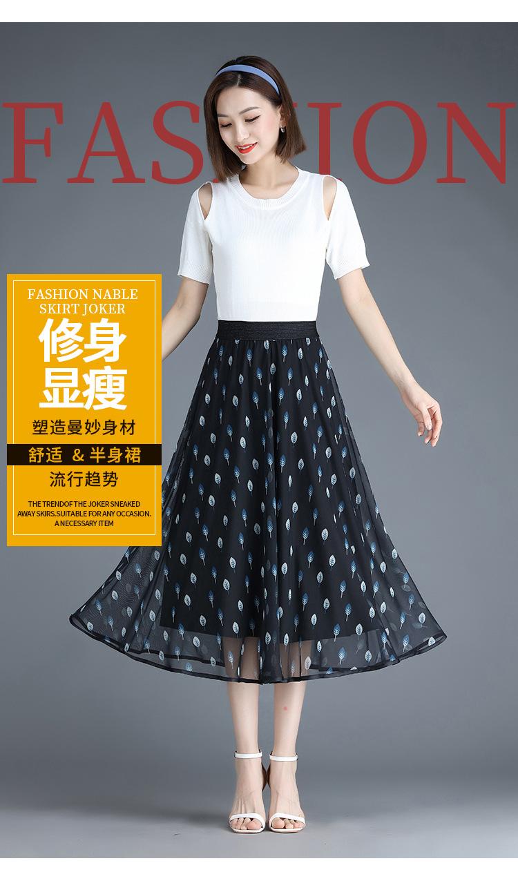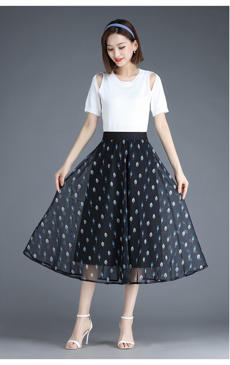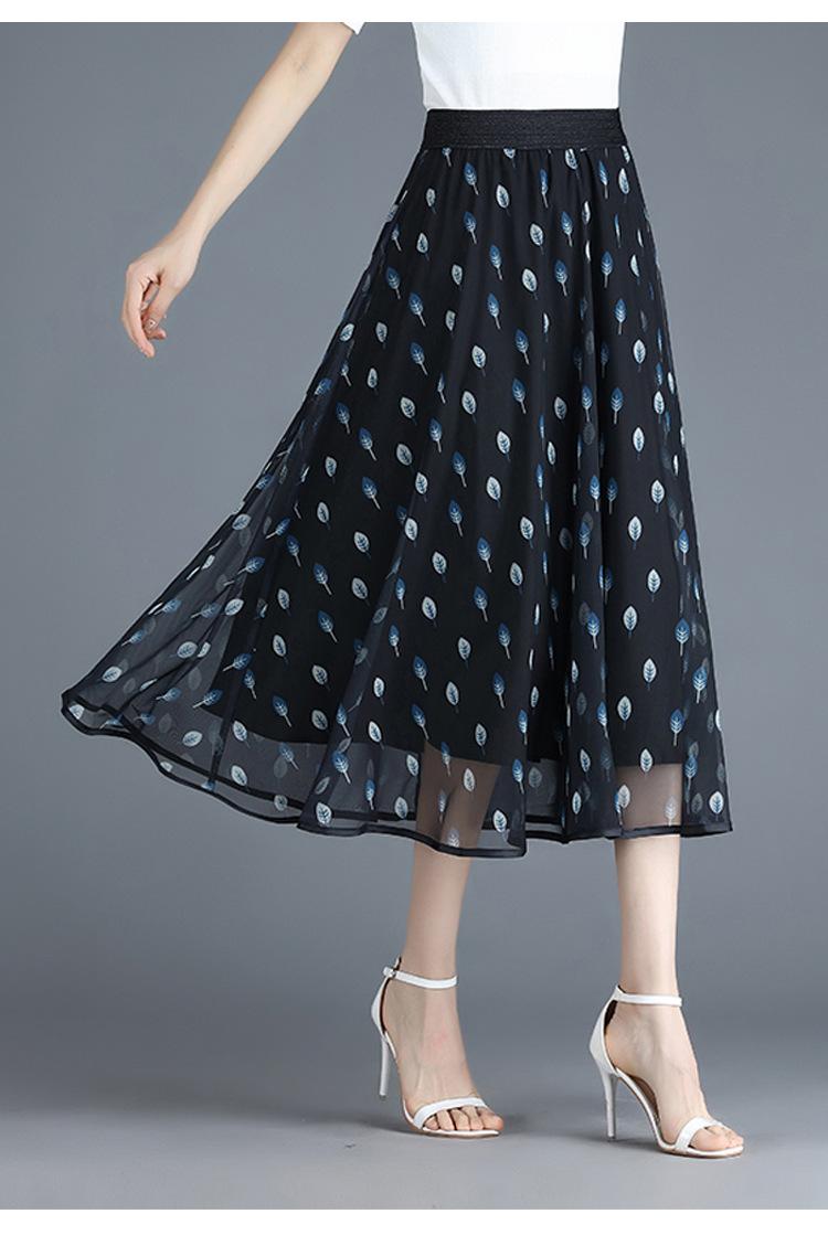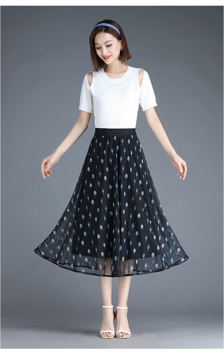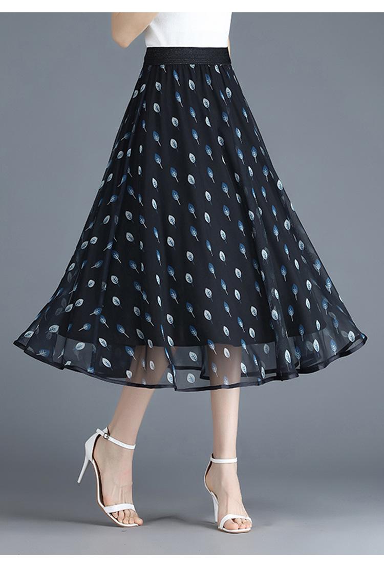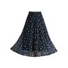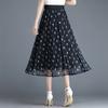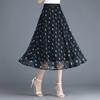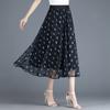 Falda de malla estampada en forma de A para mujer, verano 2023, nueva, elástica, de cintura alta, que cubre la cadera, adelgazante, falda larga plisada grande