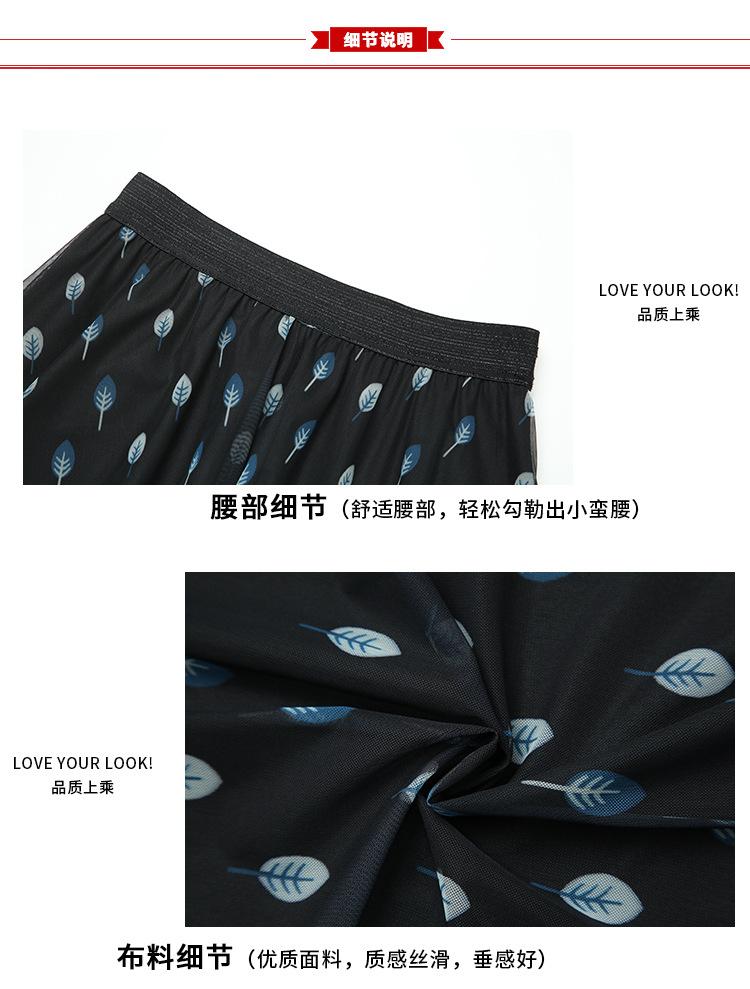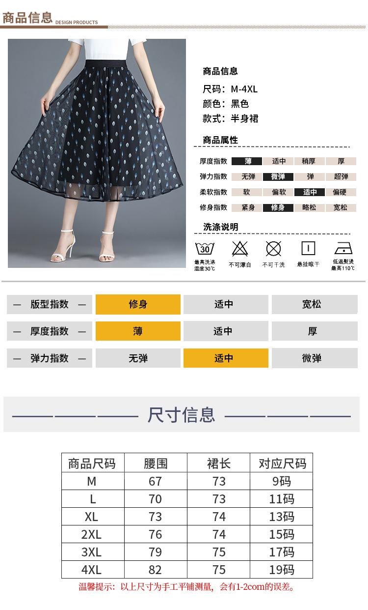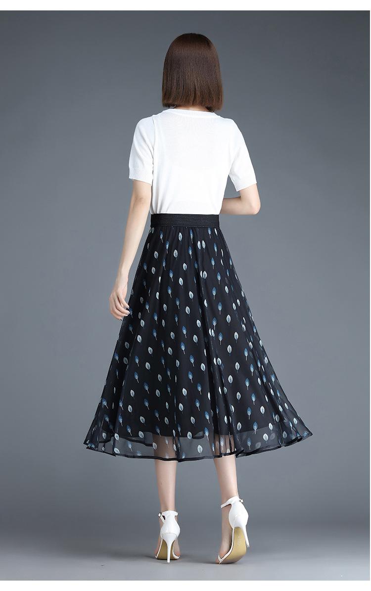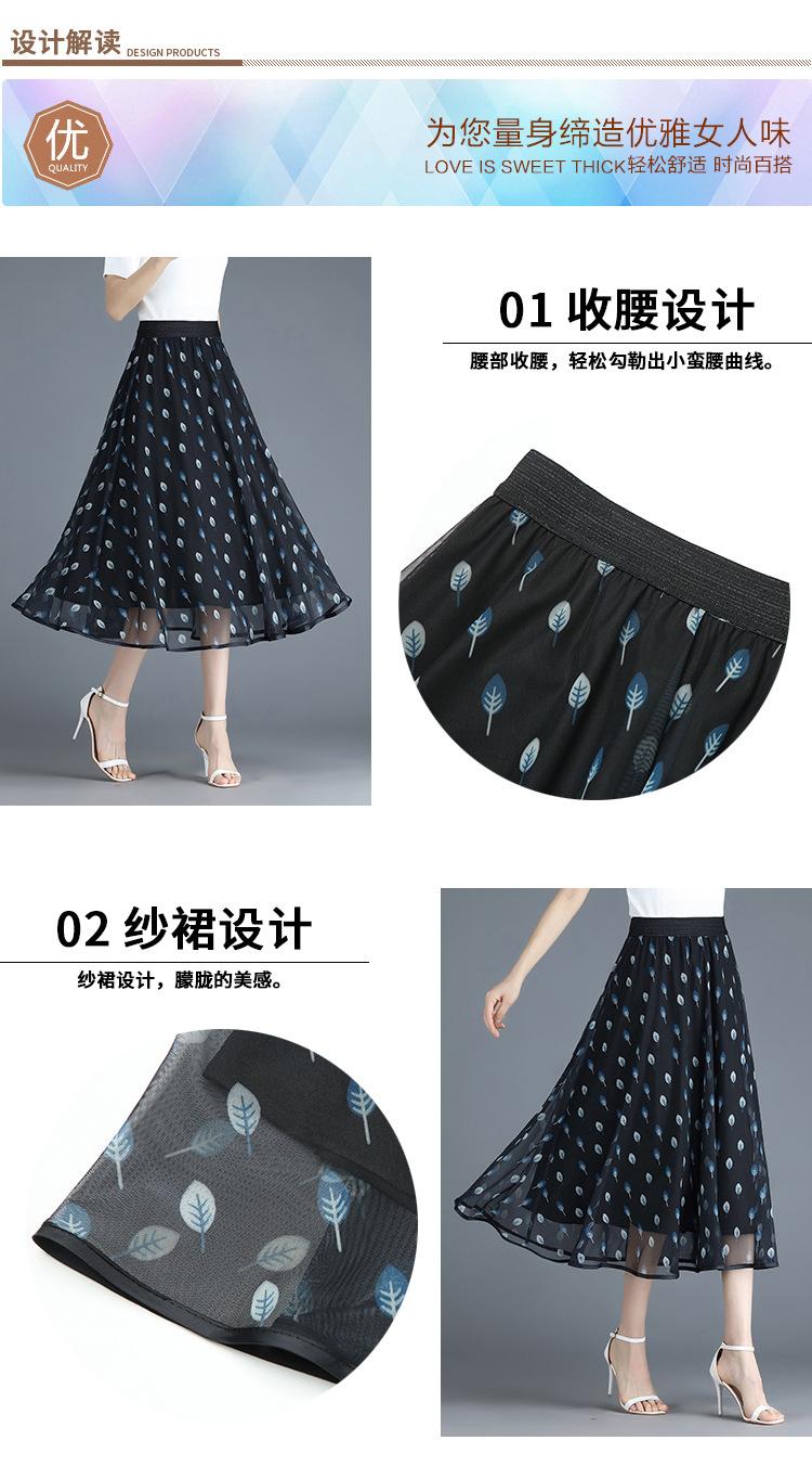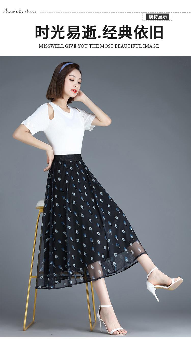 Falda de malla estampada en forma de A para mujer, verano 2023, nueva, elástica, de cintura alta, que cubre la cadera, adelgazante, falda larga plisada grande