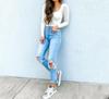 Pantalones vaqueros de comercio exterior de AliExpress para otoño/invierno 2022, nuevos, de cintura alta, elásticos, ajustados y acampanados, para mujer, estilo europeo y americano.