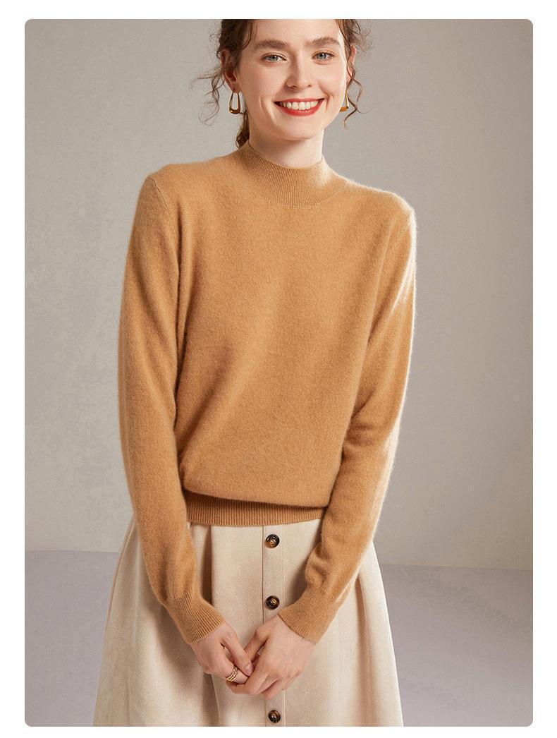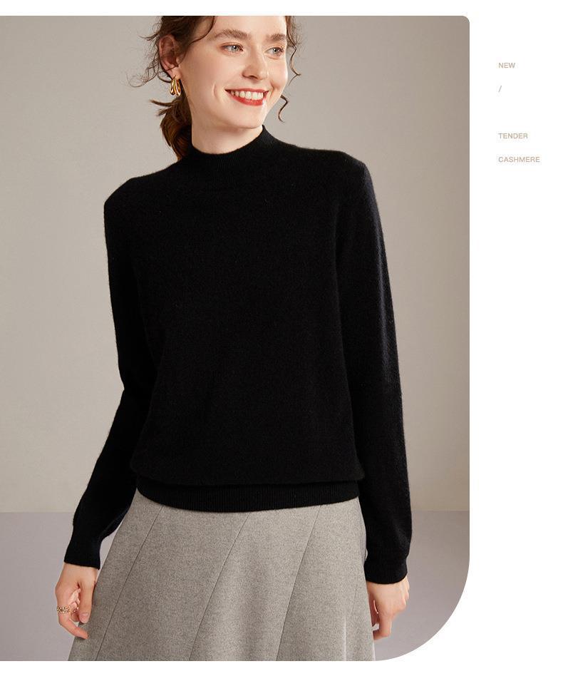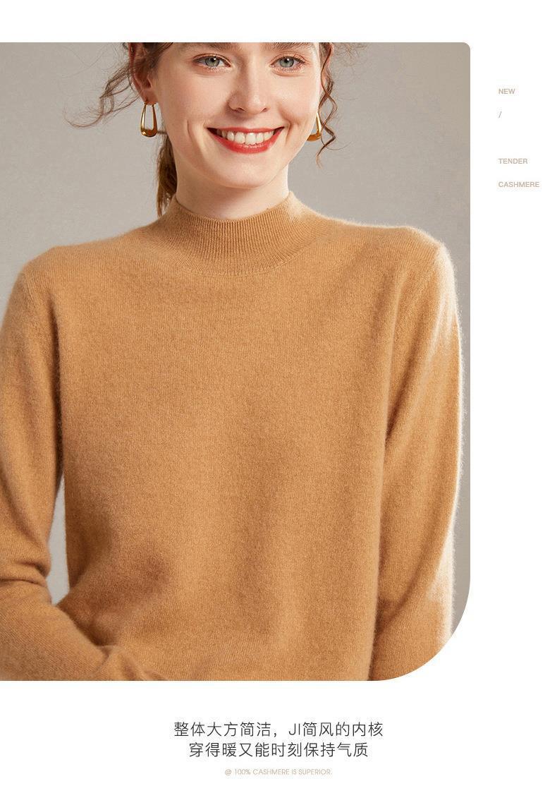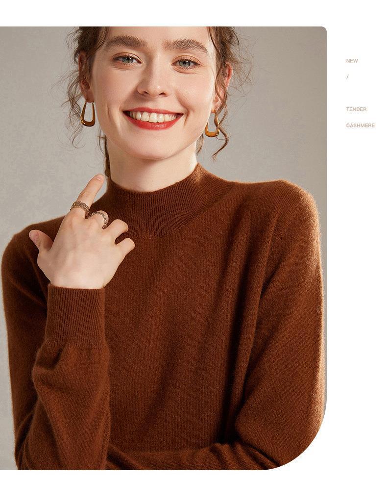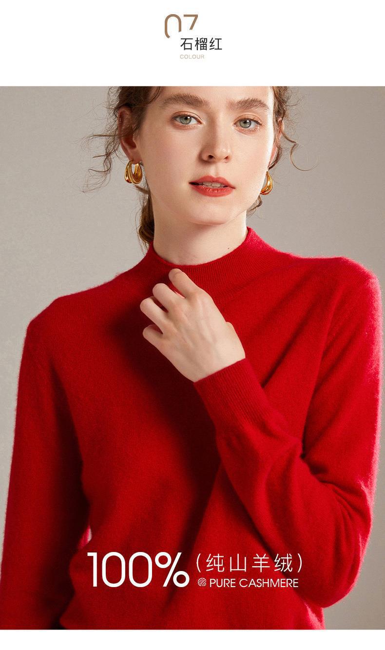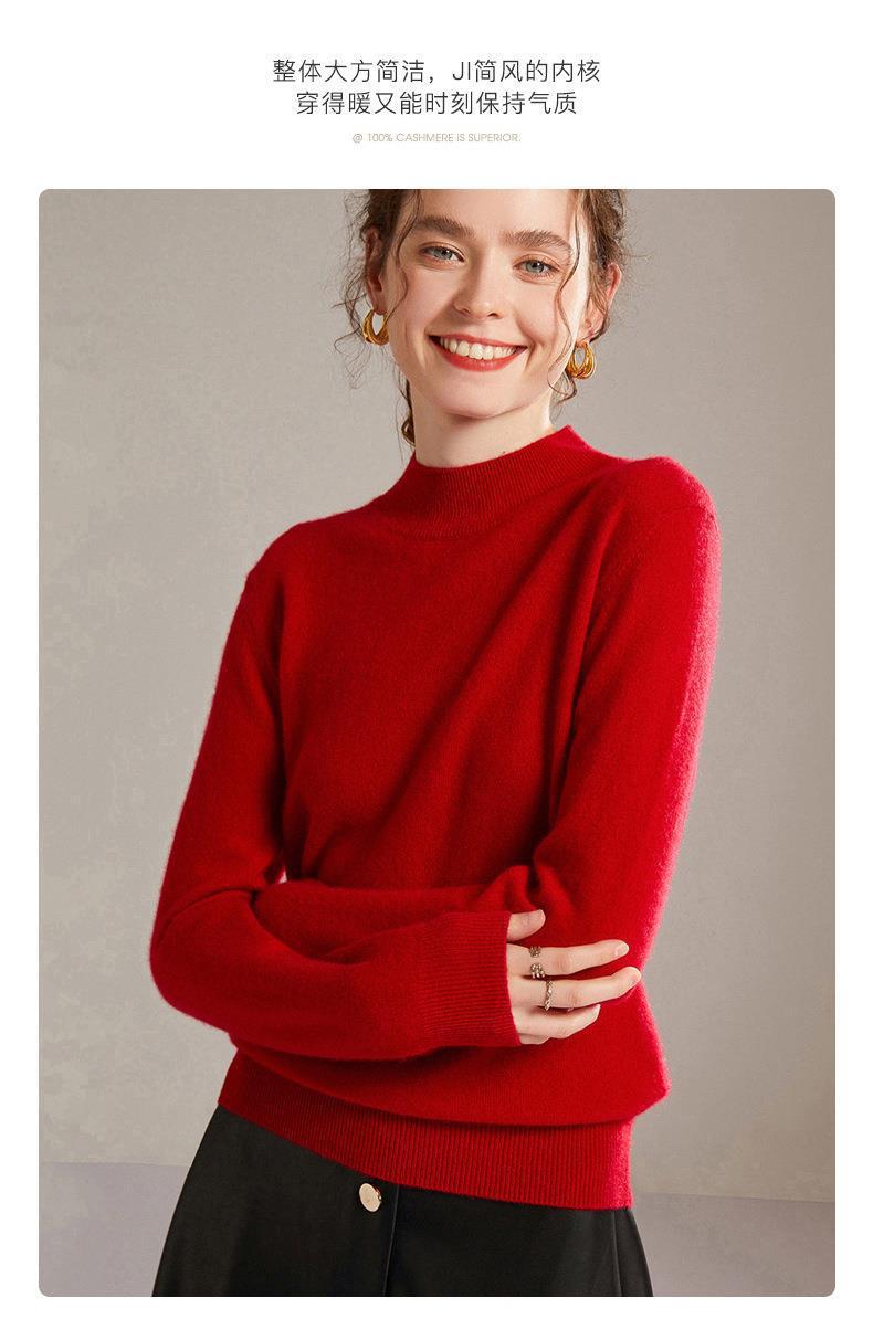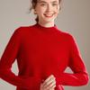Suéter rojo de cuello medio de cachemira para mujer, suéter de otoño e invierno, jersey corto holgado, camisa de punto