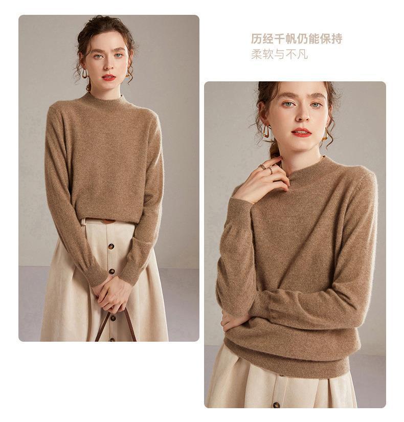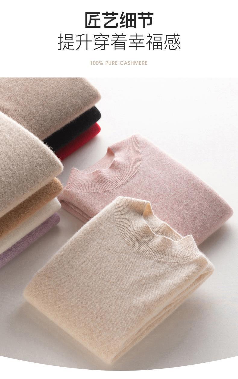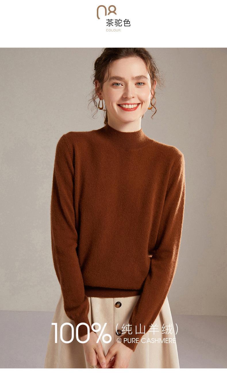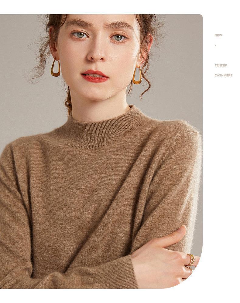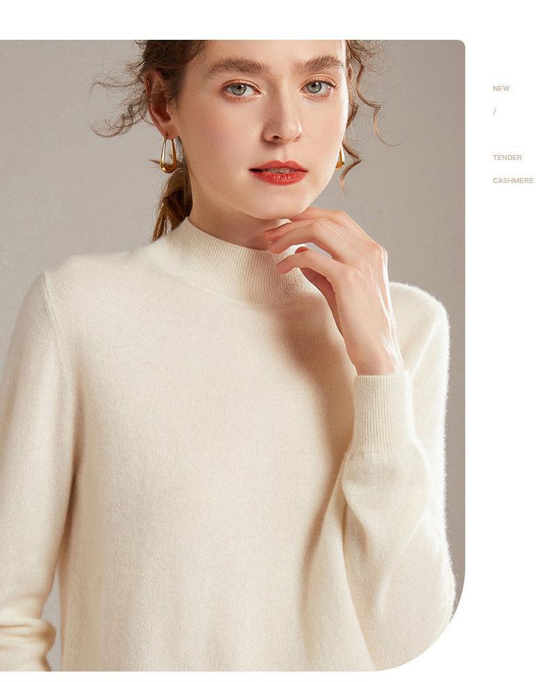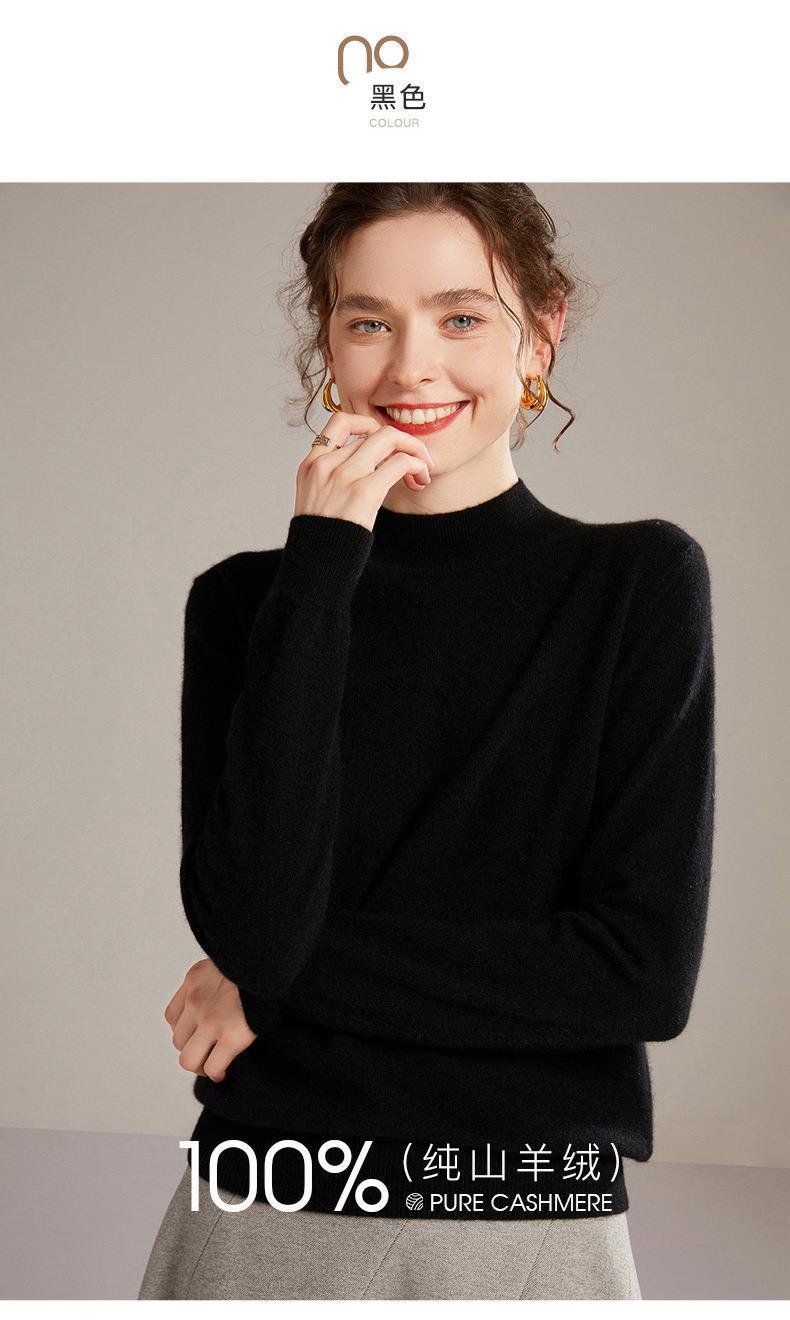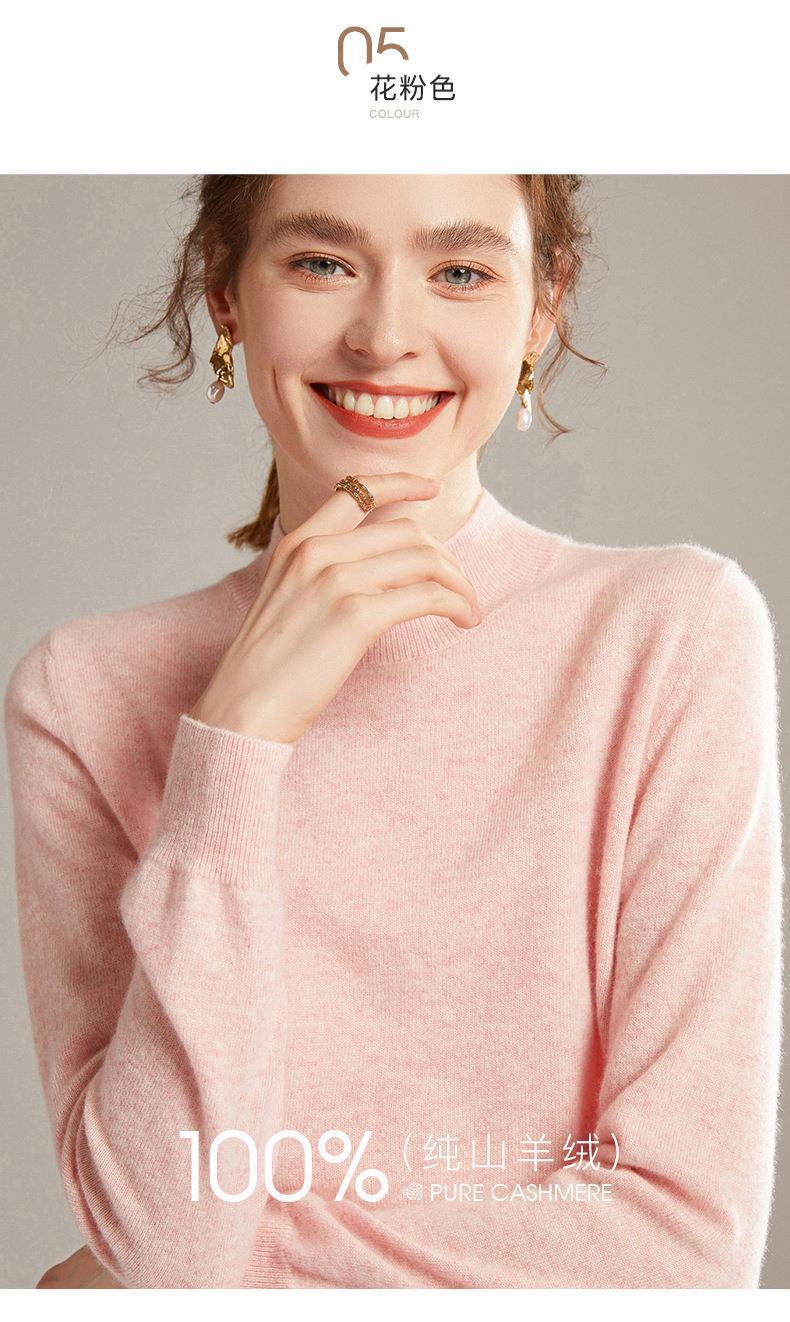 Suéter rojo de cuello medio de cachemira para mujer, suéter de otoño e invierno, jersey corto holgado, camisa de punto