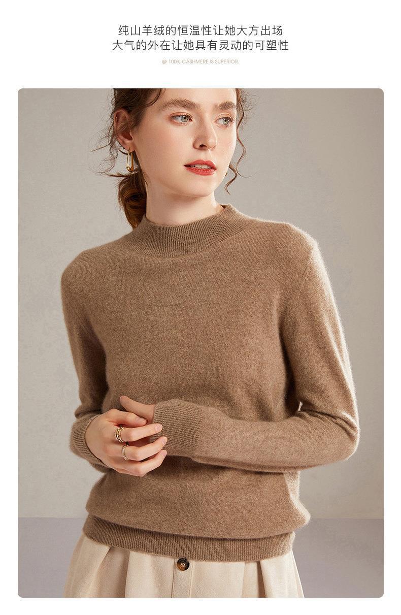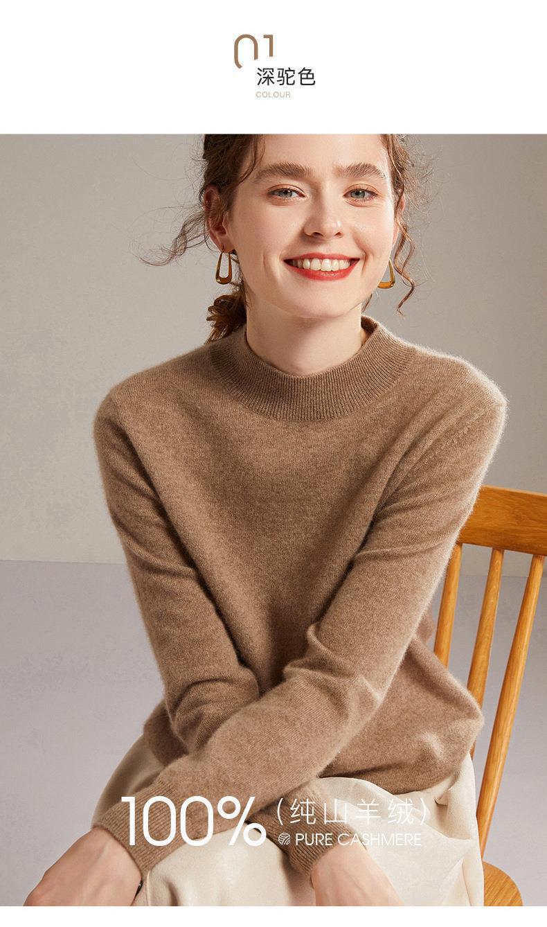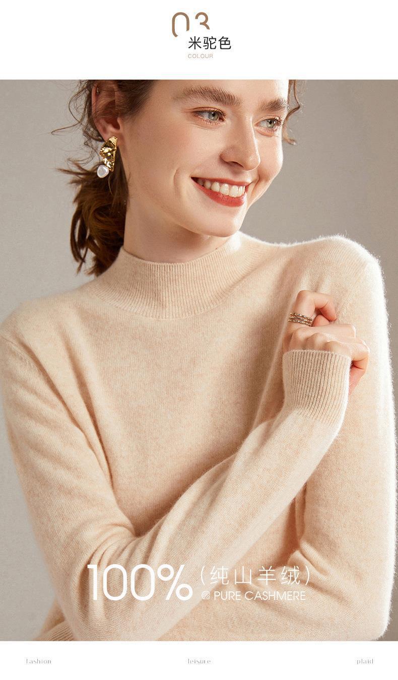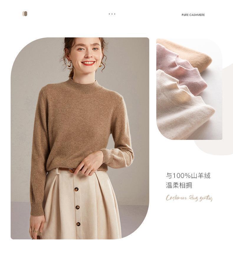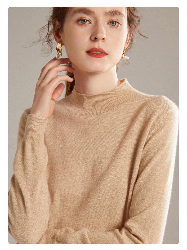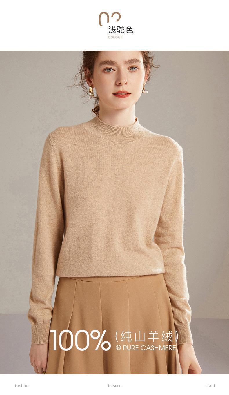 Suéter rojo de cuello medio de cachemira para mujer, suéter de otoño e invierno, jersey corto holgado, camisa de punto