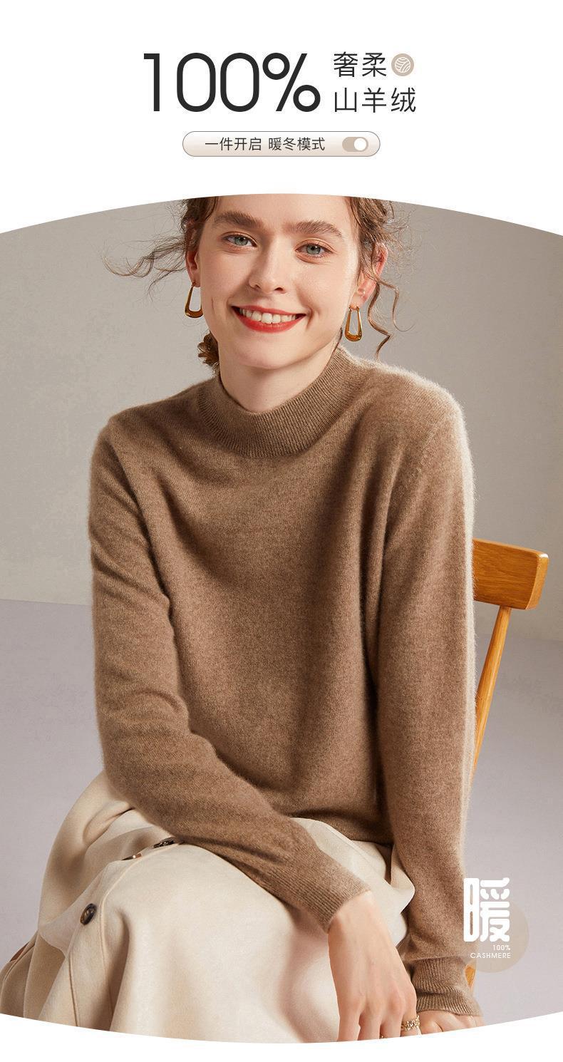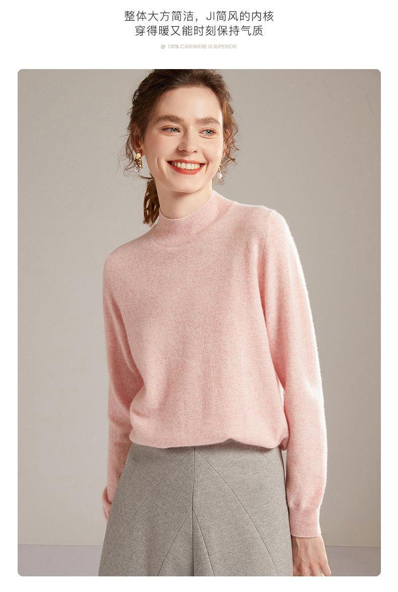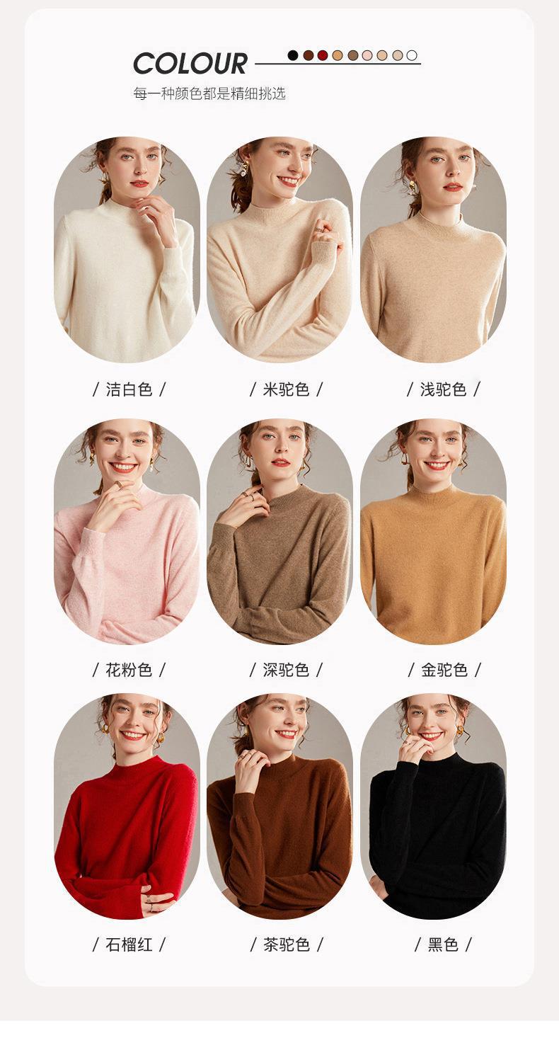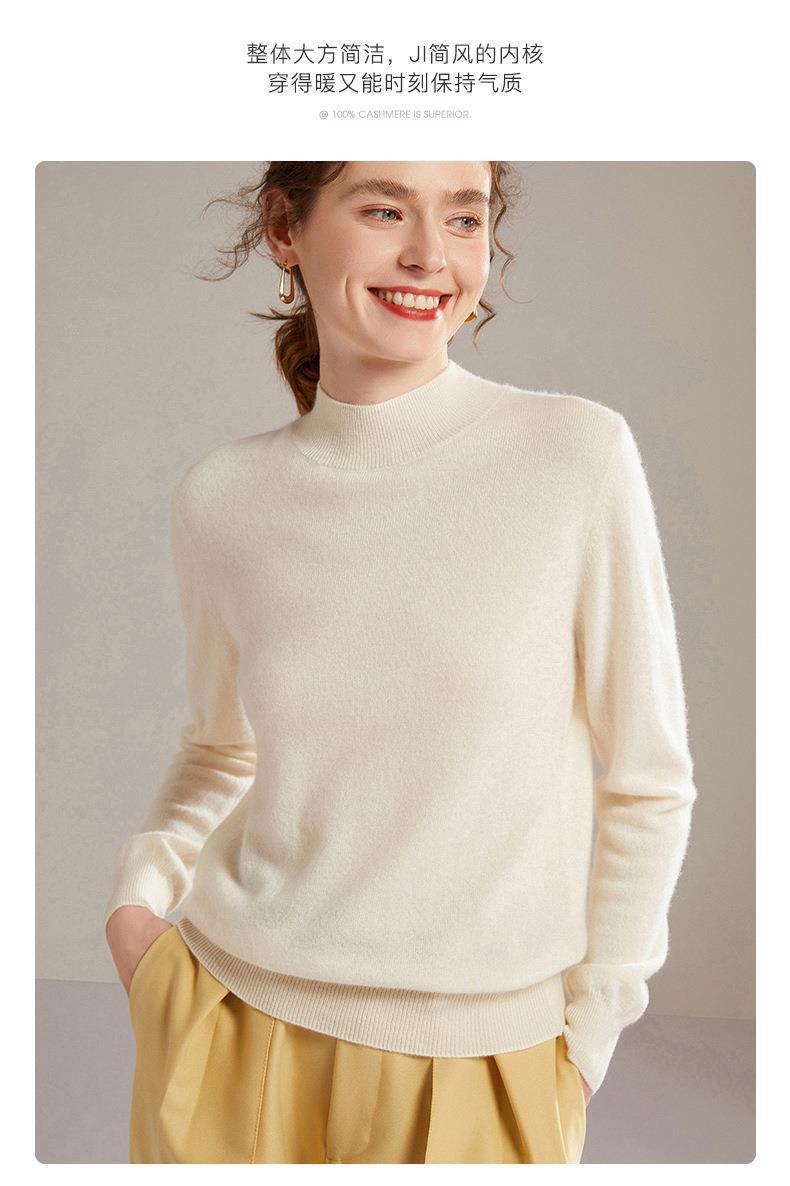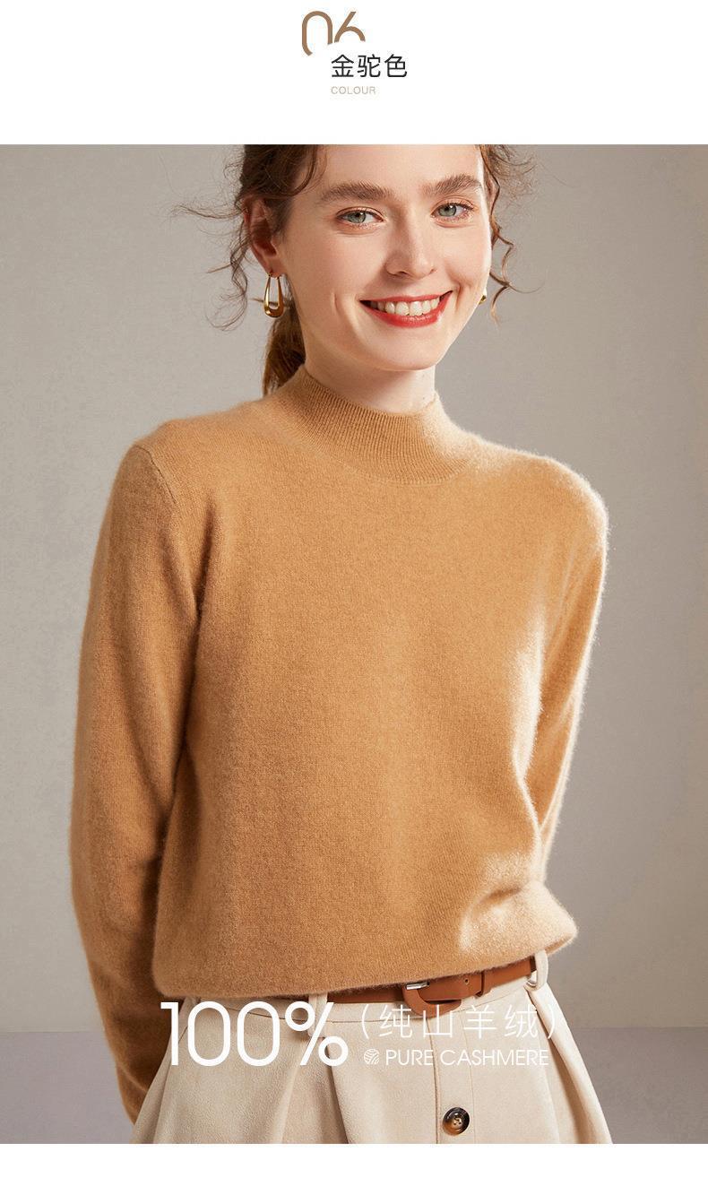 Suéter rojo de cuello medio de cachemira para mujer, suéter de otoño e invierno, jersey corto holgado, camisa de punto