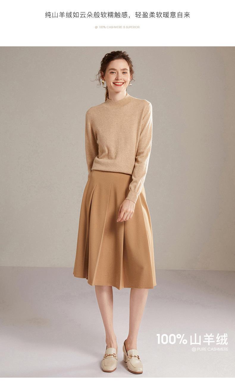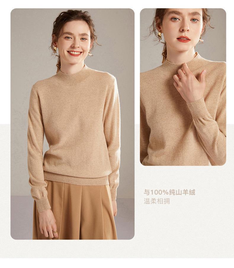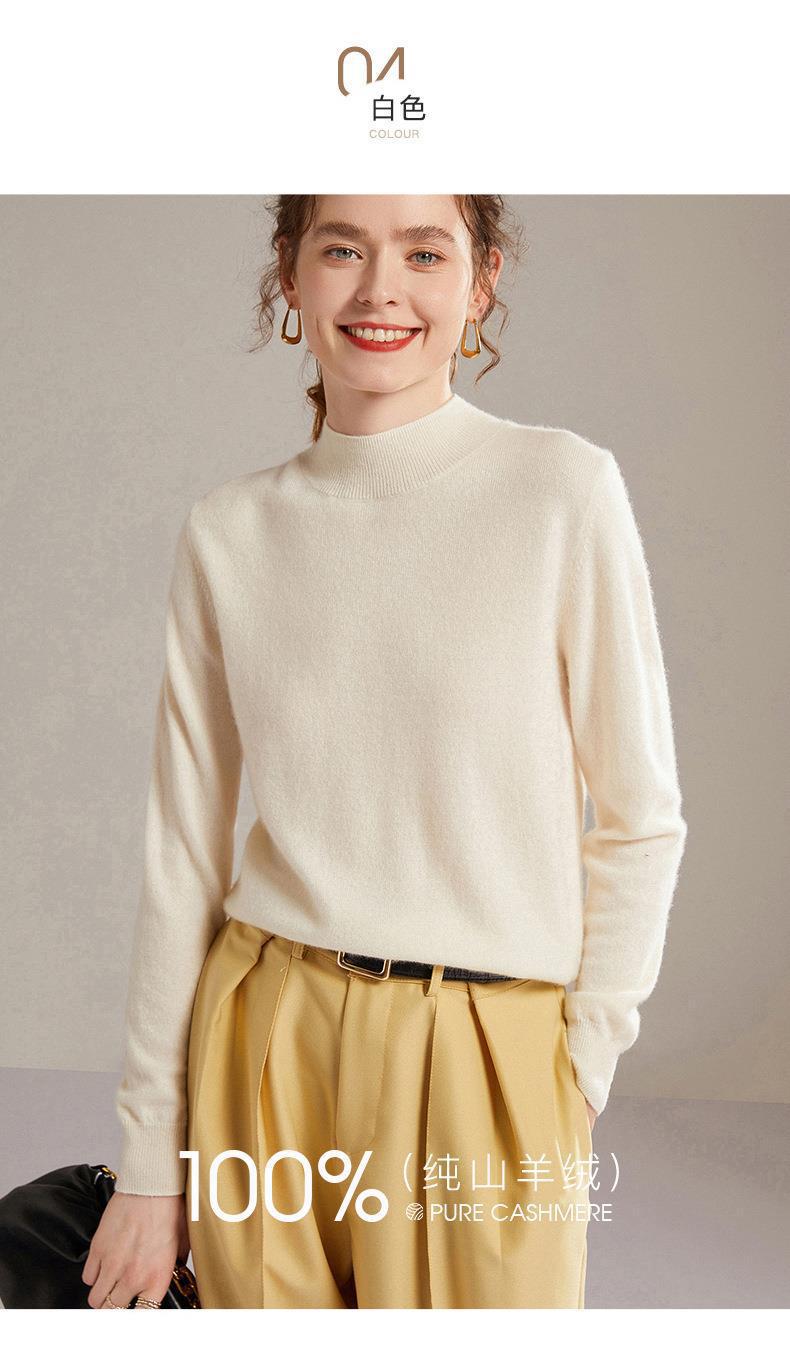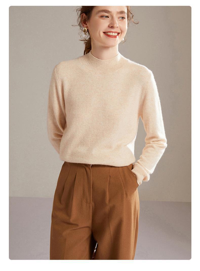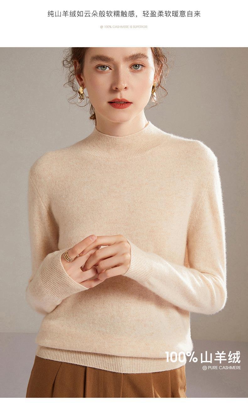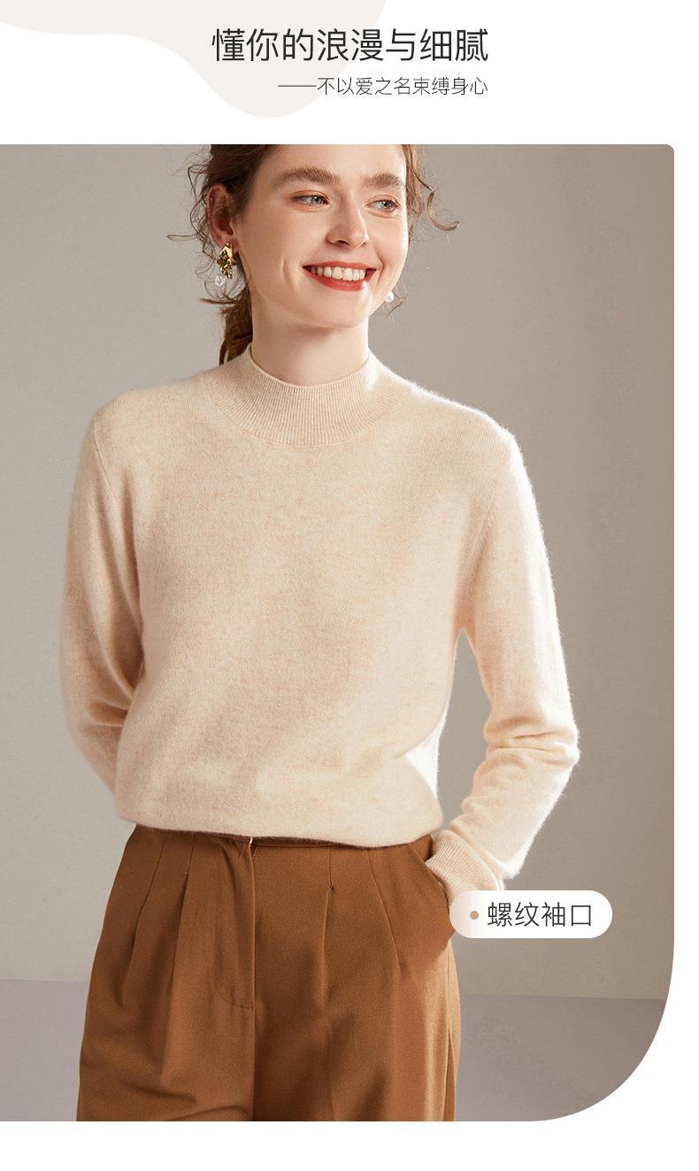 Suéter rojo de cuello medio de cachemira para mujer, suéter de otoño e invierno, jersey corto holgado, camisa de punto