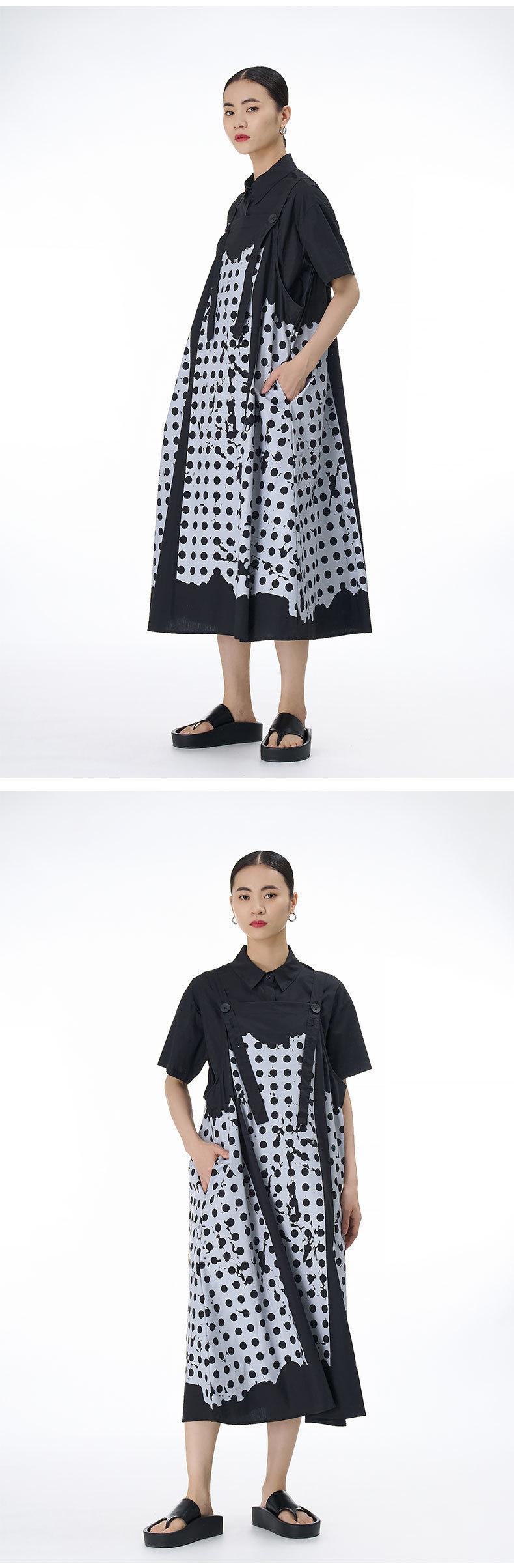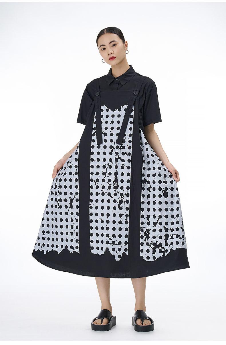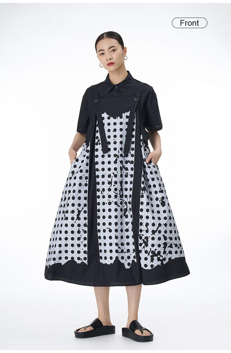 Vestido elegante de lunares de onda japonesa y coreana 2025 Verano Nuevo talla grande para mujer Vestido holgado adelgazante moderno 68106