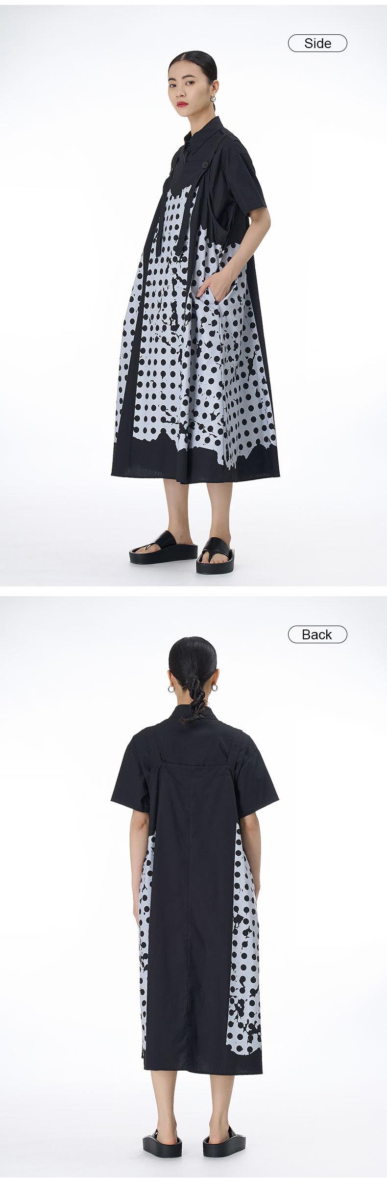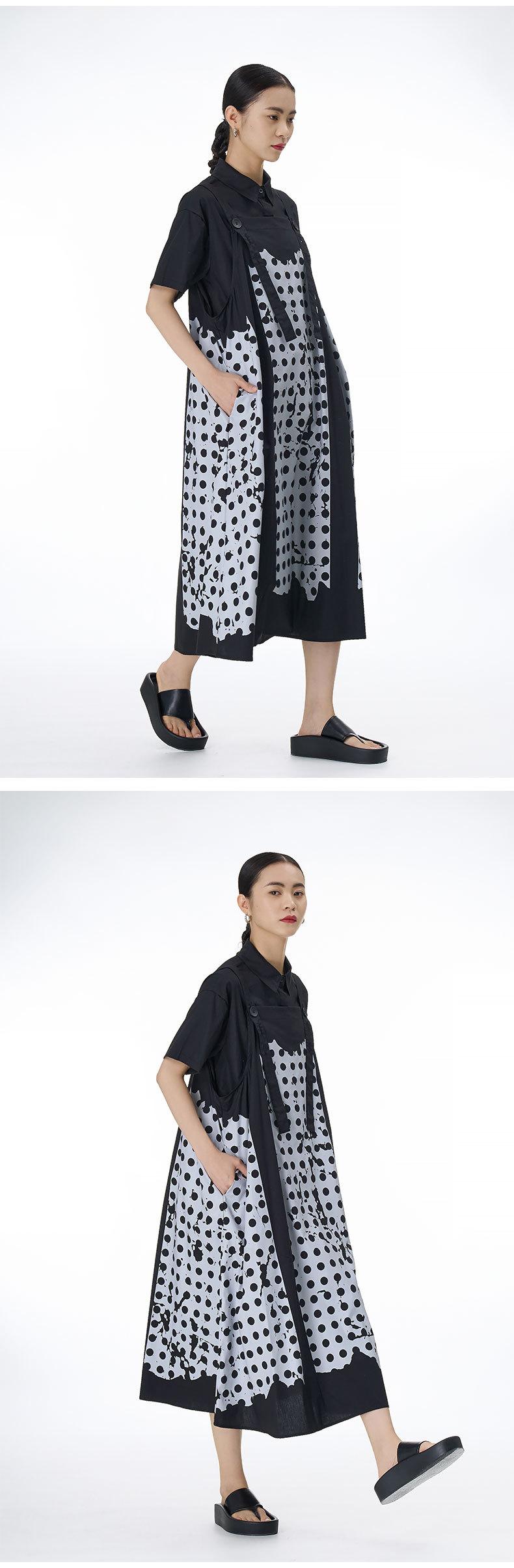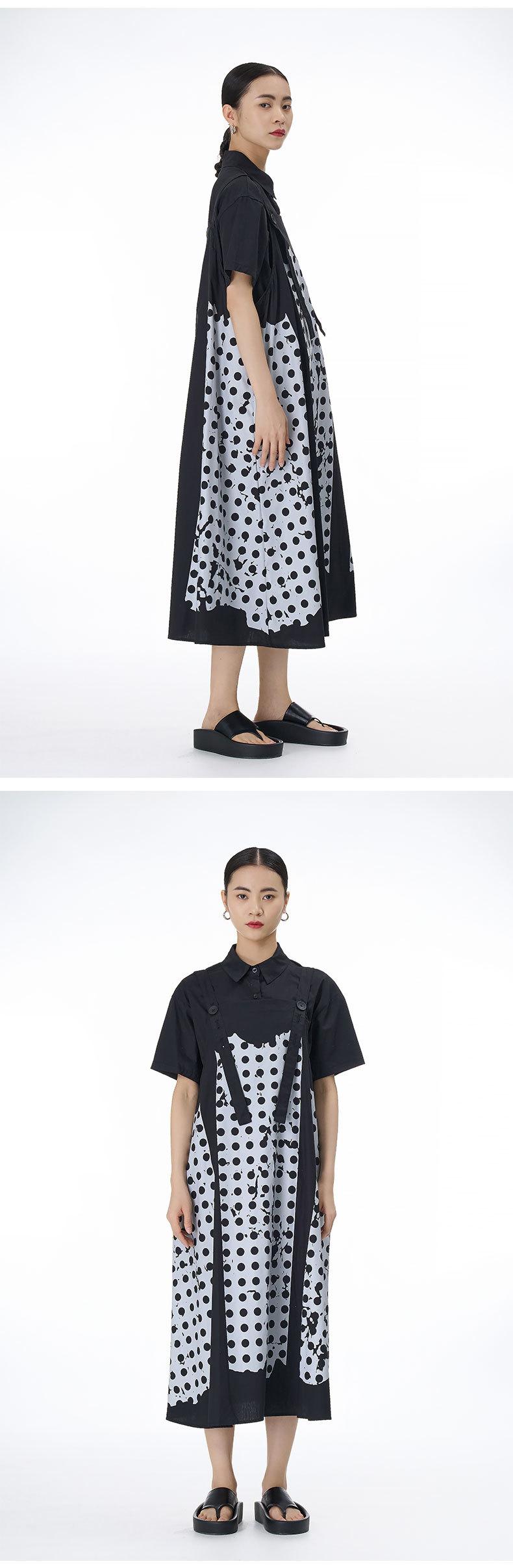 Vestido elegante de lunares de onda japonesa y coreana 2025 Verano Nuevo talla grande para mujer Vestido holgado adelgazante moderno 68106