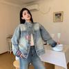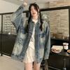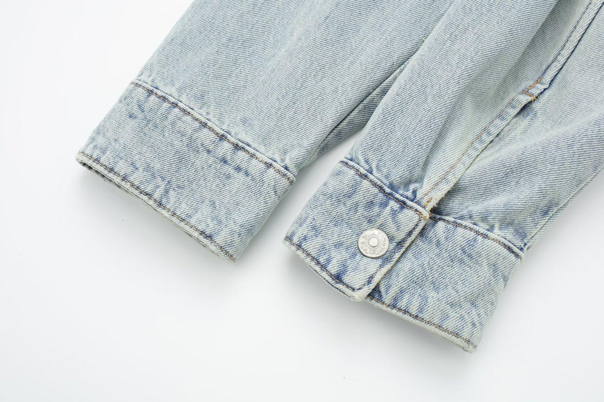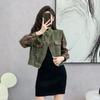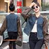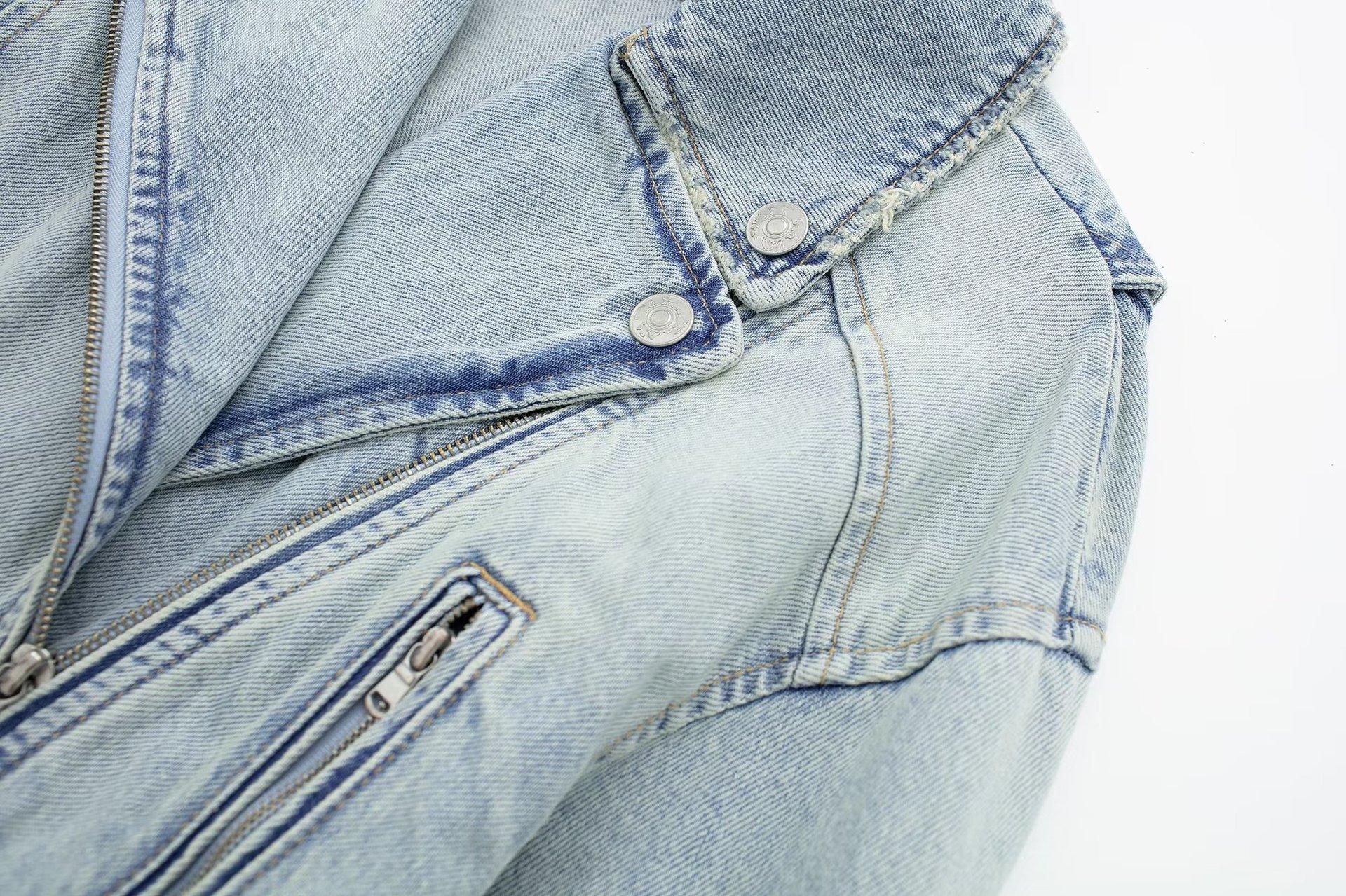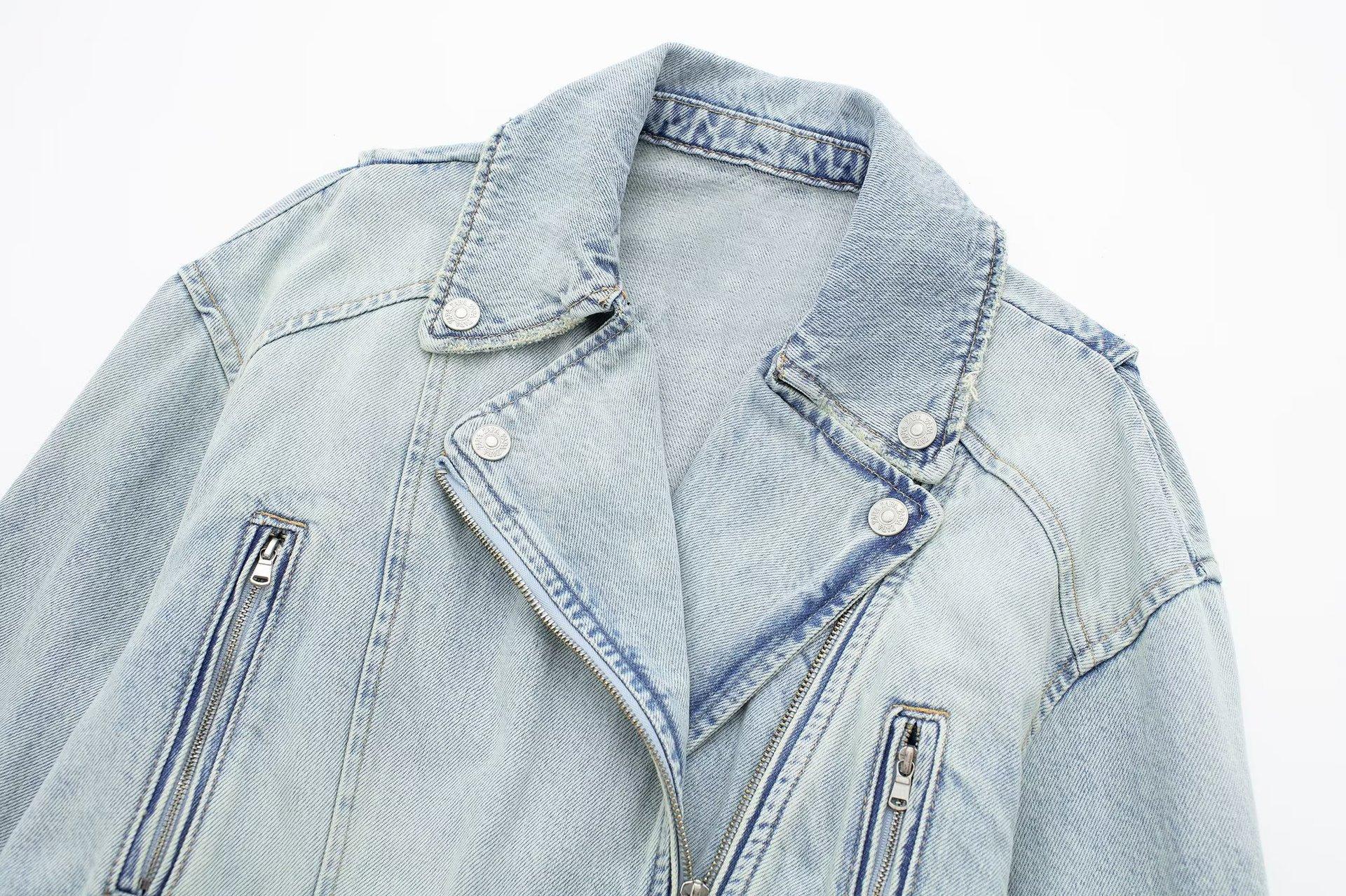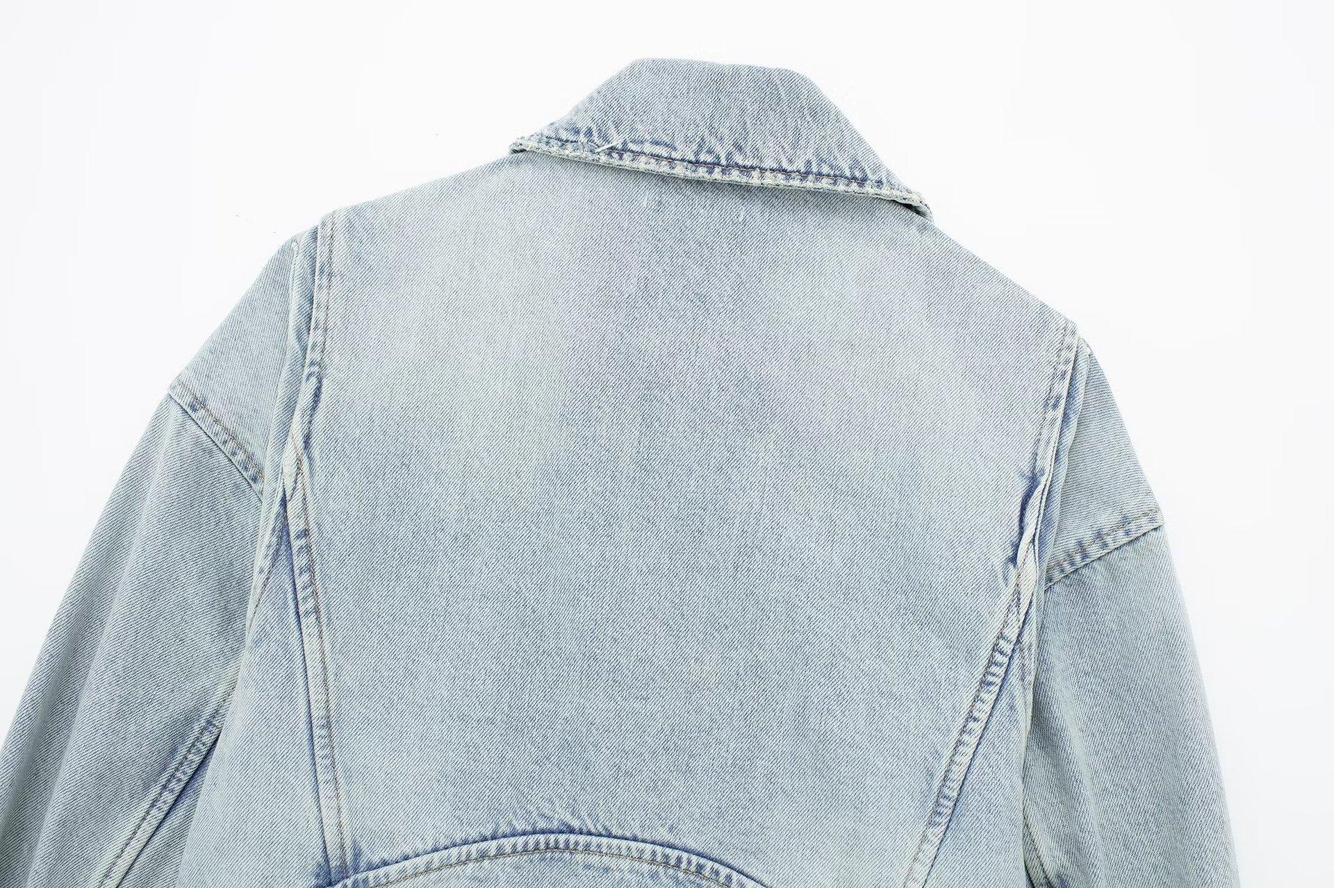 Otoño 2023 Nueva Chaqueta Corta de Mezclilla Estilo Herramientas de Motocicleta para Mujer Estilo Europeo y Americano Picante Solapas Manga Larga Chaqueta con Cinturón