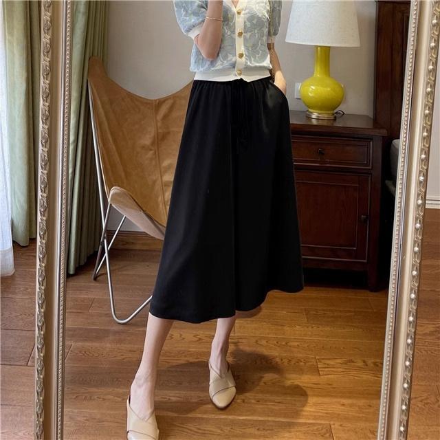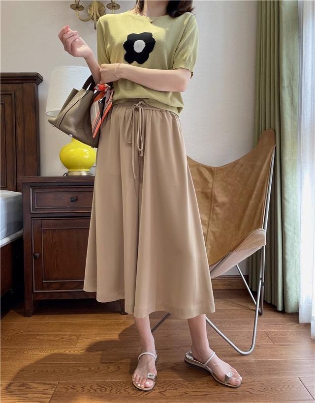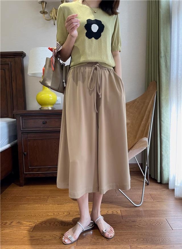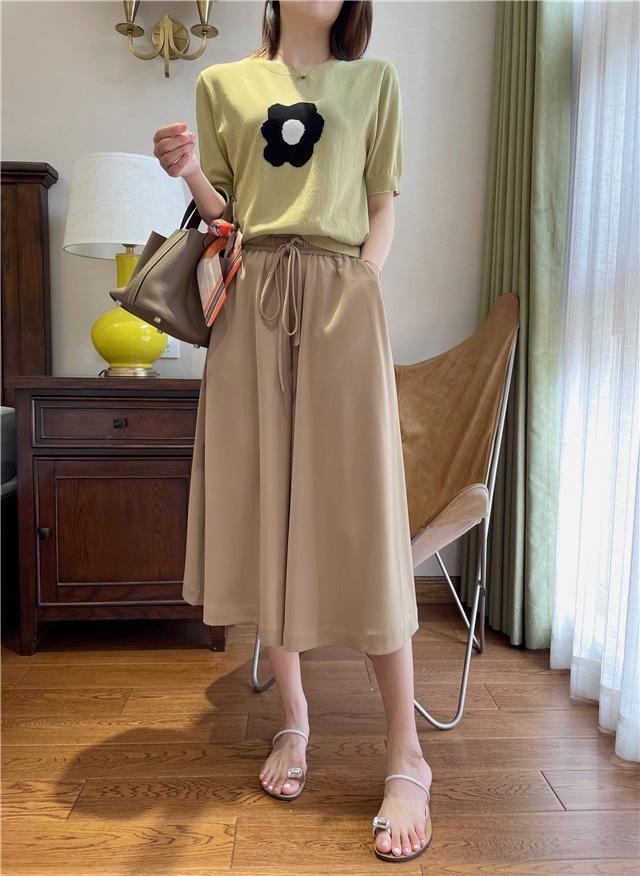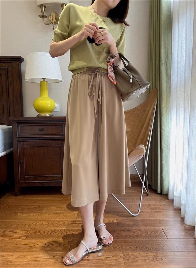 Pantalones anchos de seda de hielo para mujer, verano 2023, cintura alta, adelgazantes, corte en forma de pera, holgados, con cordón ajustable.
