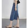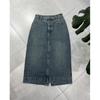 Falda de mezclilla azul retro con abertura trasera estilo fila TR