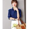 Camiseta de verano 2023 de punto LED de manga corta para mujer, estilo occidental, con solapa, holgada, adelgazante, de seda helada, camisa pequeña
