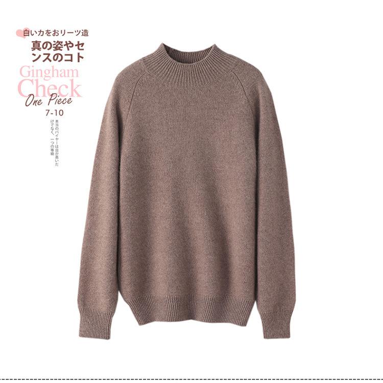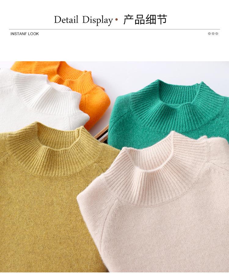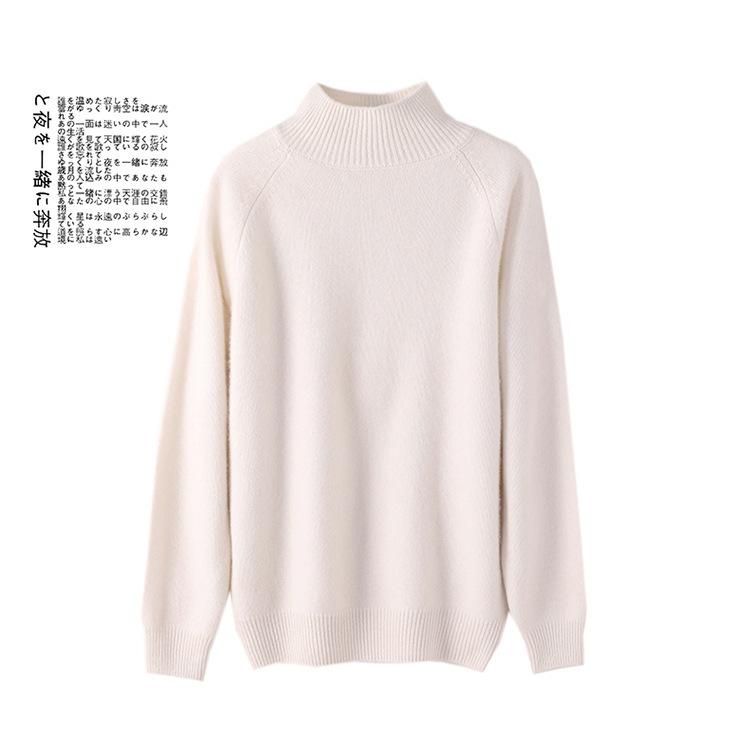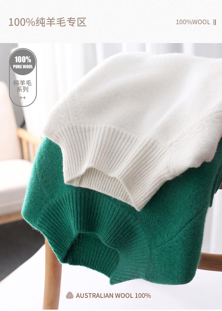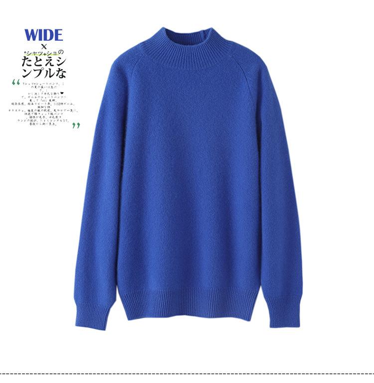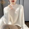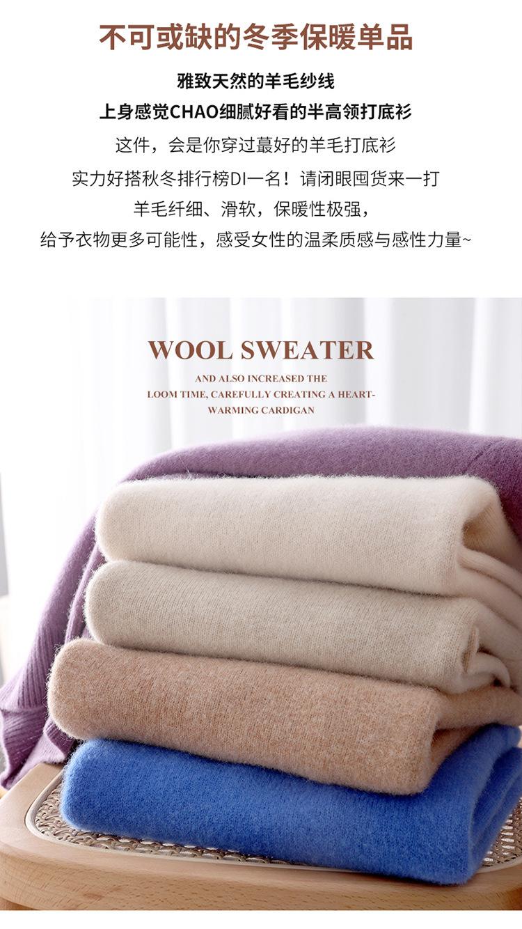 Suéter de lana para mujer engrosado 100% lana pura camisa base suéter holgado de cuello alto medio de color sólido