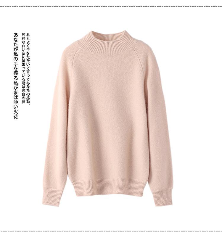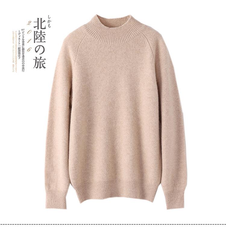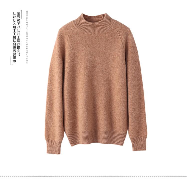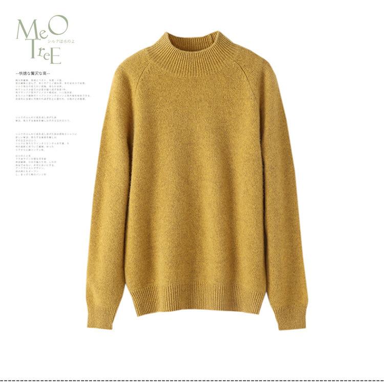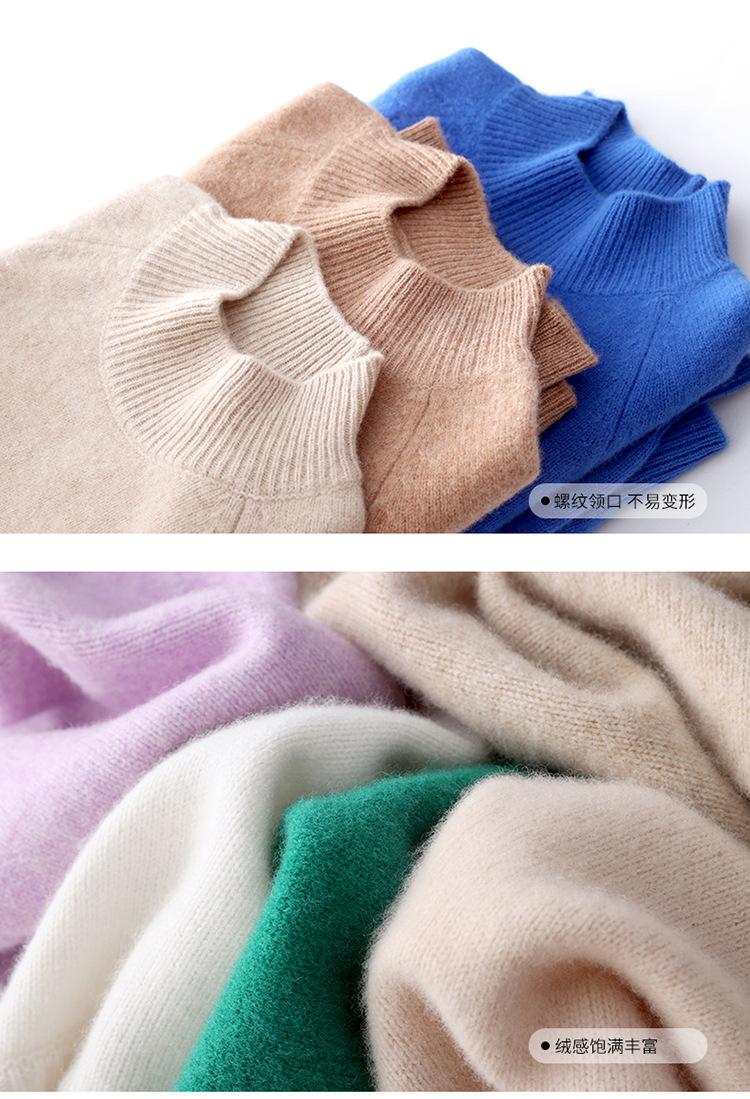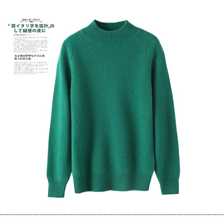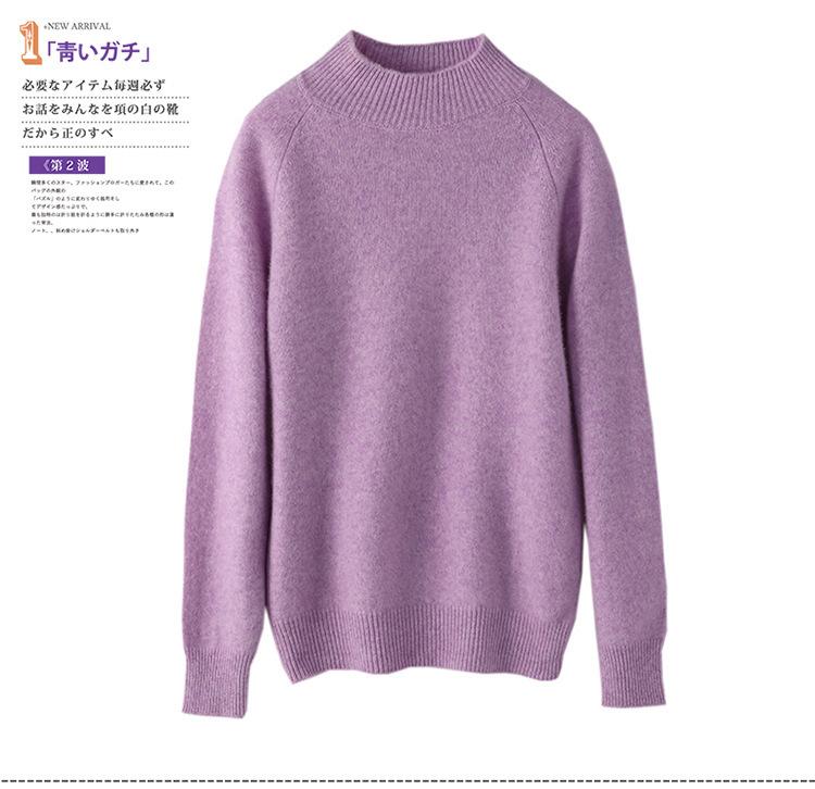 Suéter de lana para mujer engrosado 100% lana pura camisa base suéter holgado de cuello alto medio de color sólido