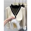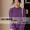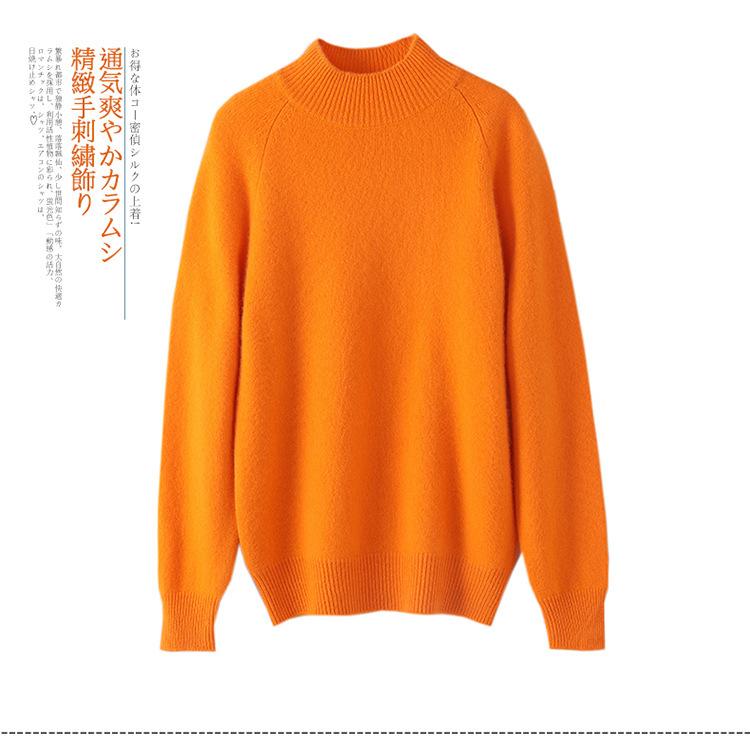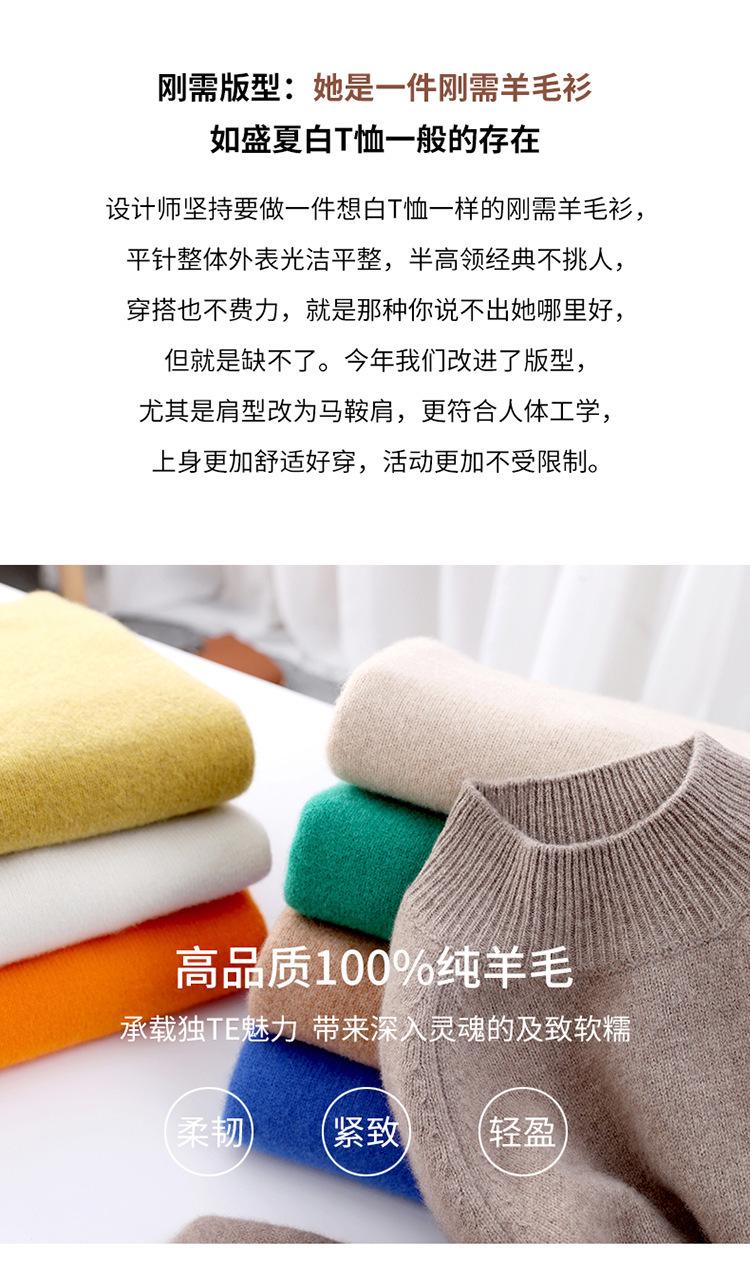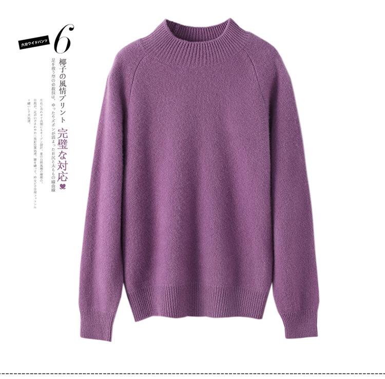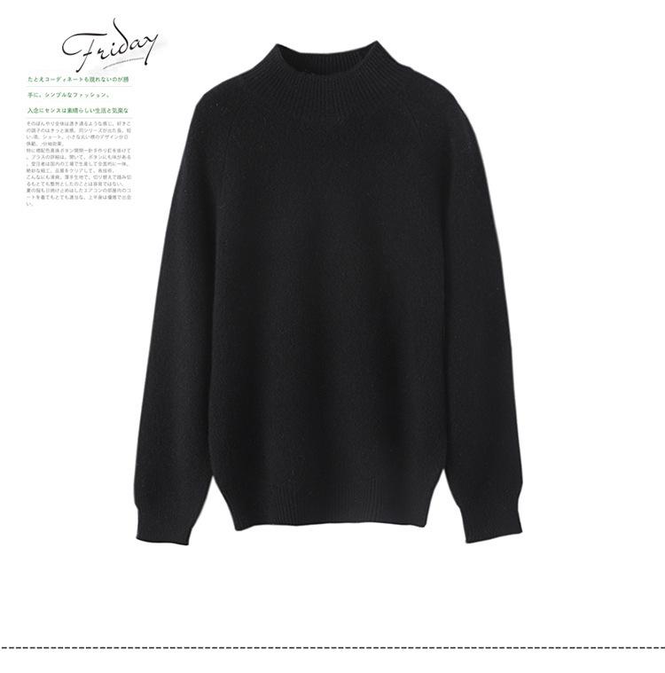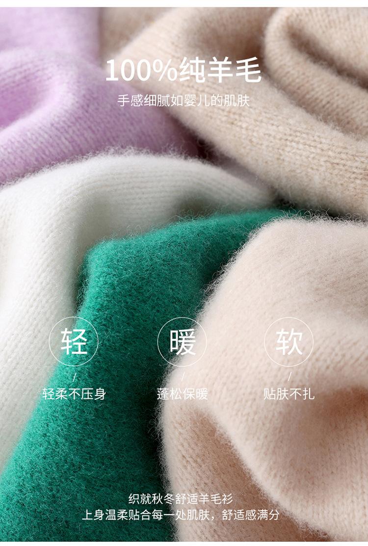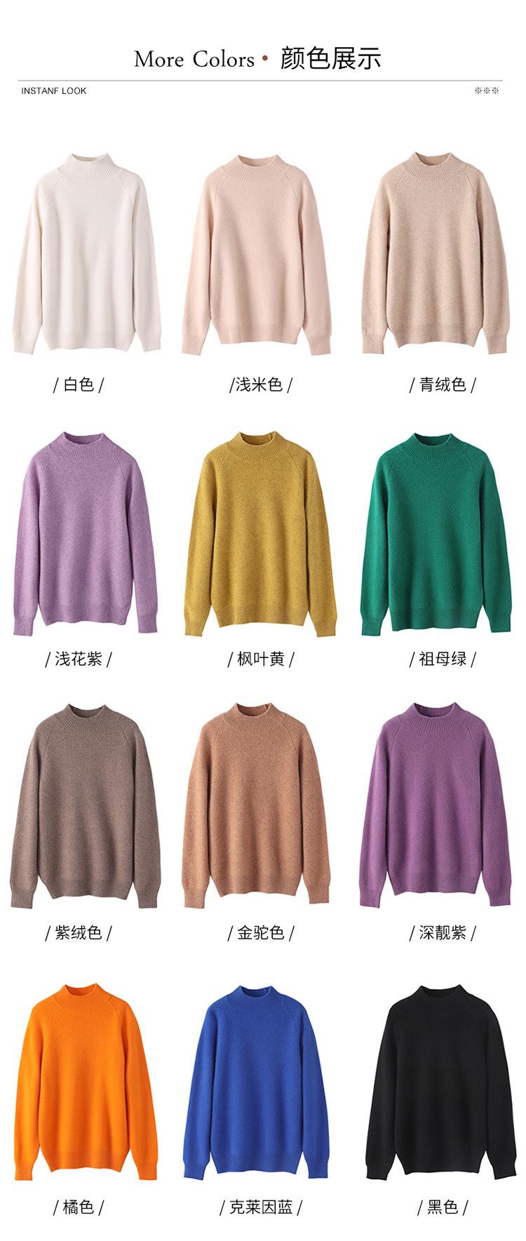 Suéter de lana para mujer engrosado 100% lana pura camisa base suéter holgado de cuello alto medio de color sólido