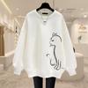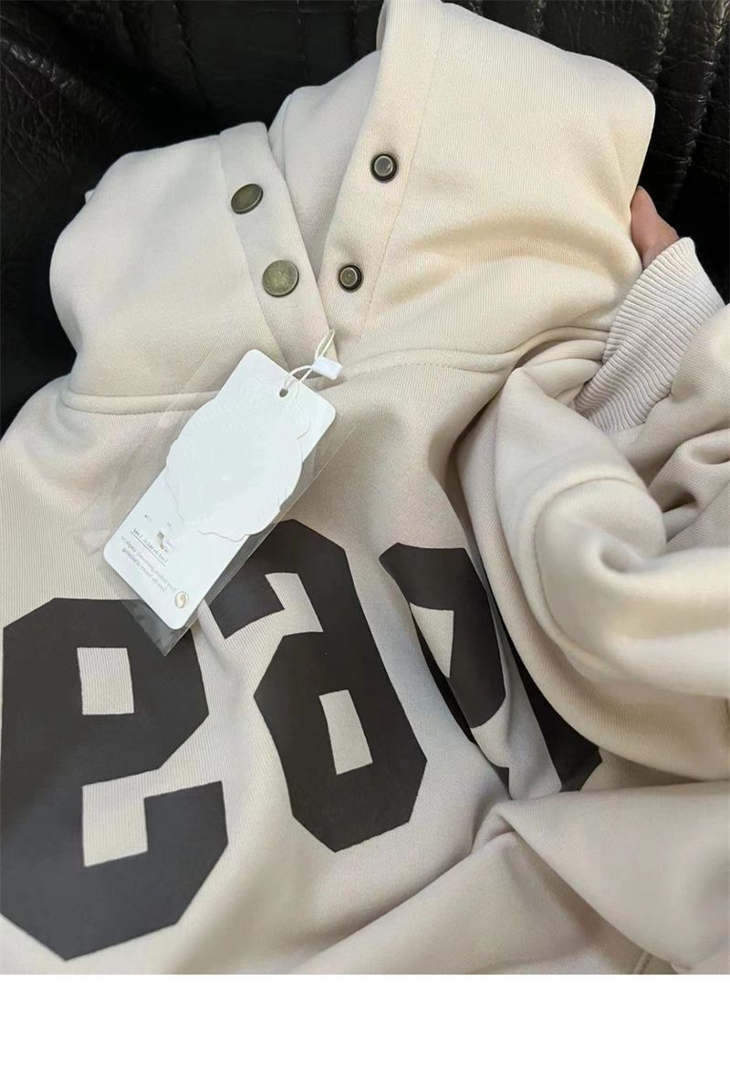 Sudadera con capucha y estampado digital grueso con forro polar de High Street de estilo europeo y americano para mujer, abrigo holgado de estilo perezoso para otoño e invierno, a la moda para parejas