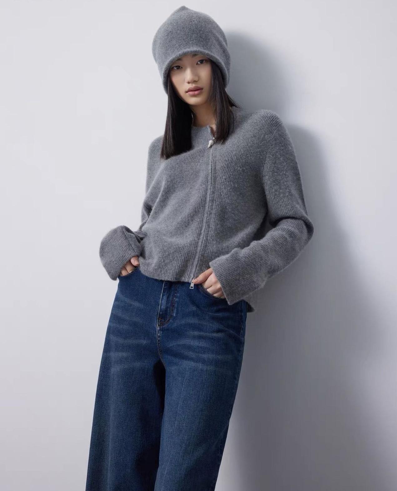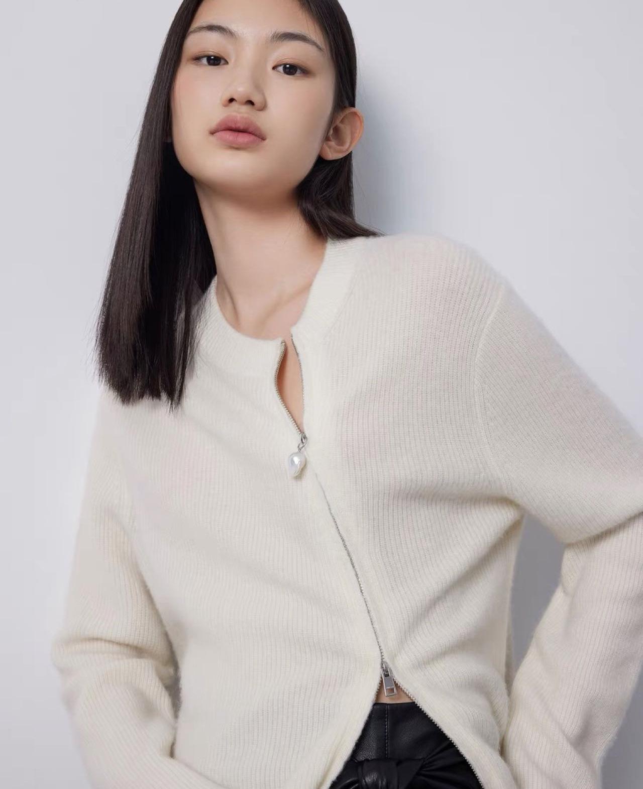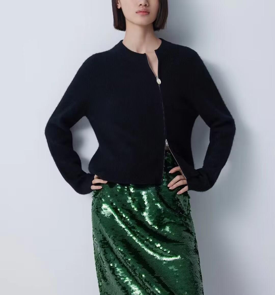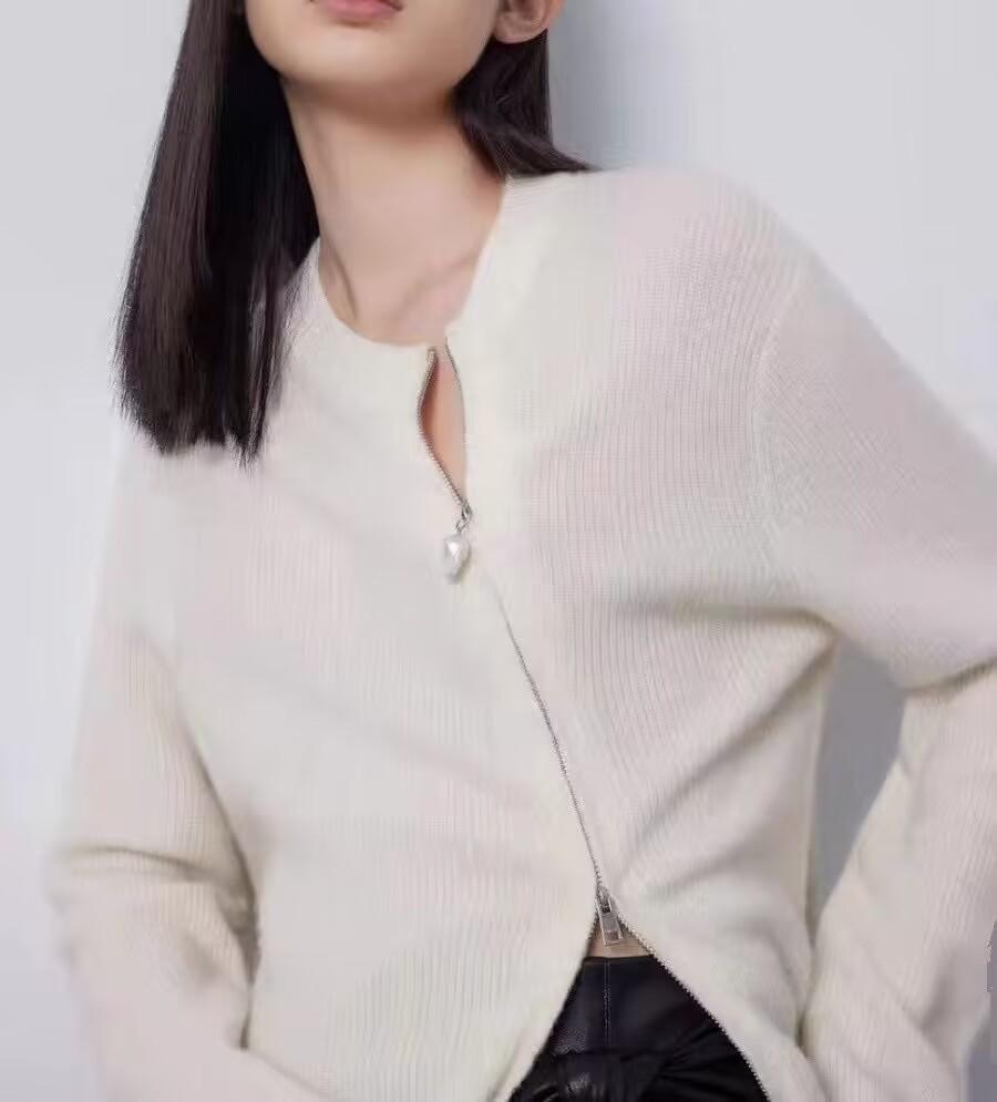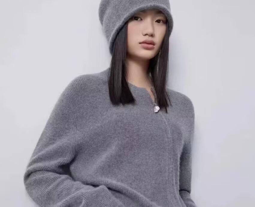 2025 Estilo Coreano Otoño e Invierno Nuevo Tejido de Lana Cárdigan de Terciopelo para Mujer Cuello Redondo Abrigo Tejido Versátil Holgado con Doble Cremallera