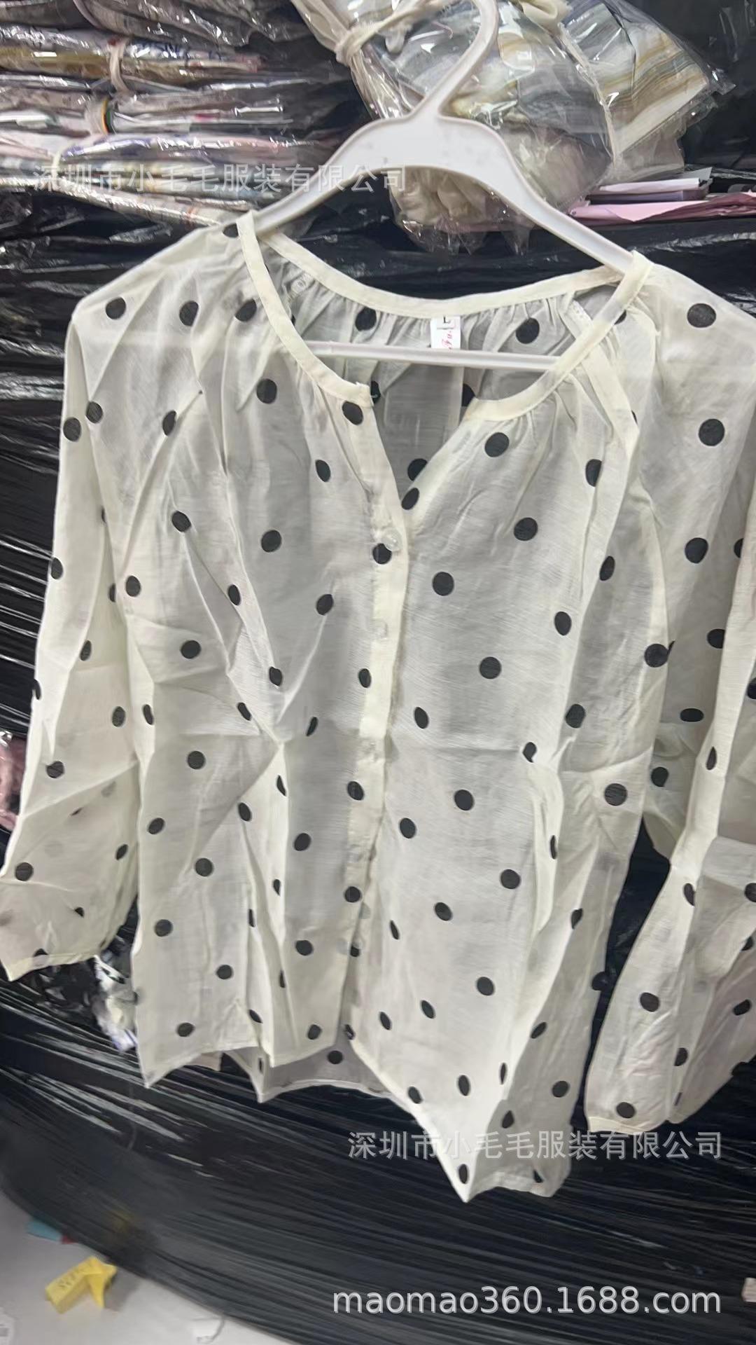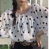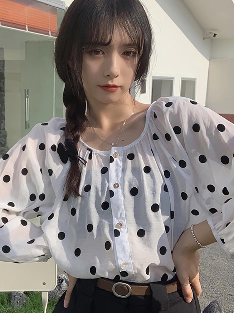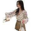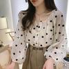 Camisa de manga larga con lunares finos y perspectiva retro francesa para mujer, elegante diseño de estilo coreano de verano con cuello en V