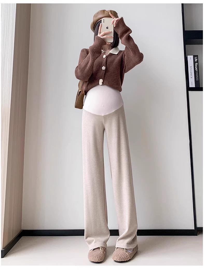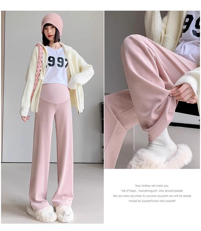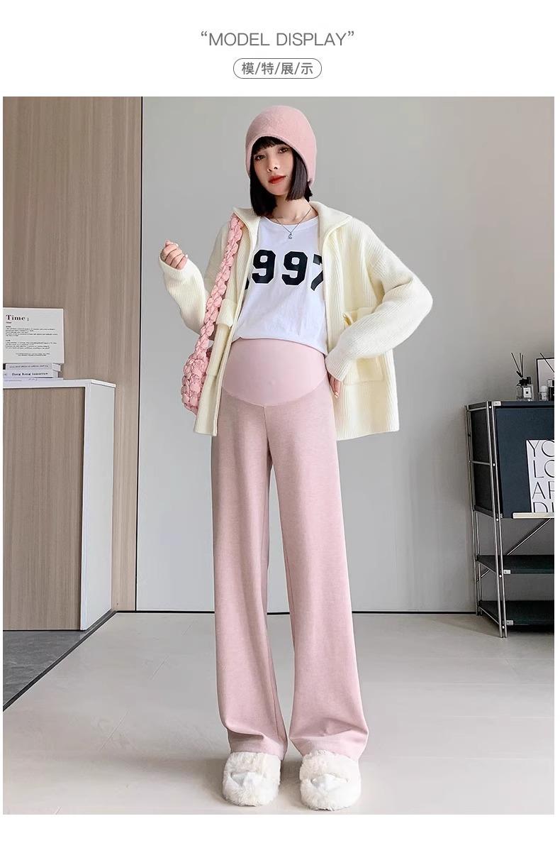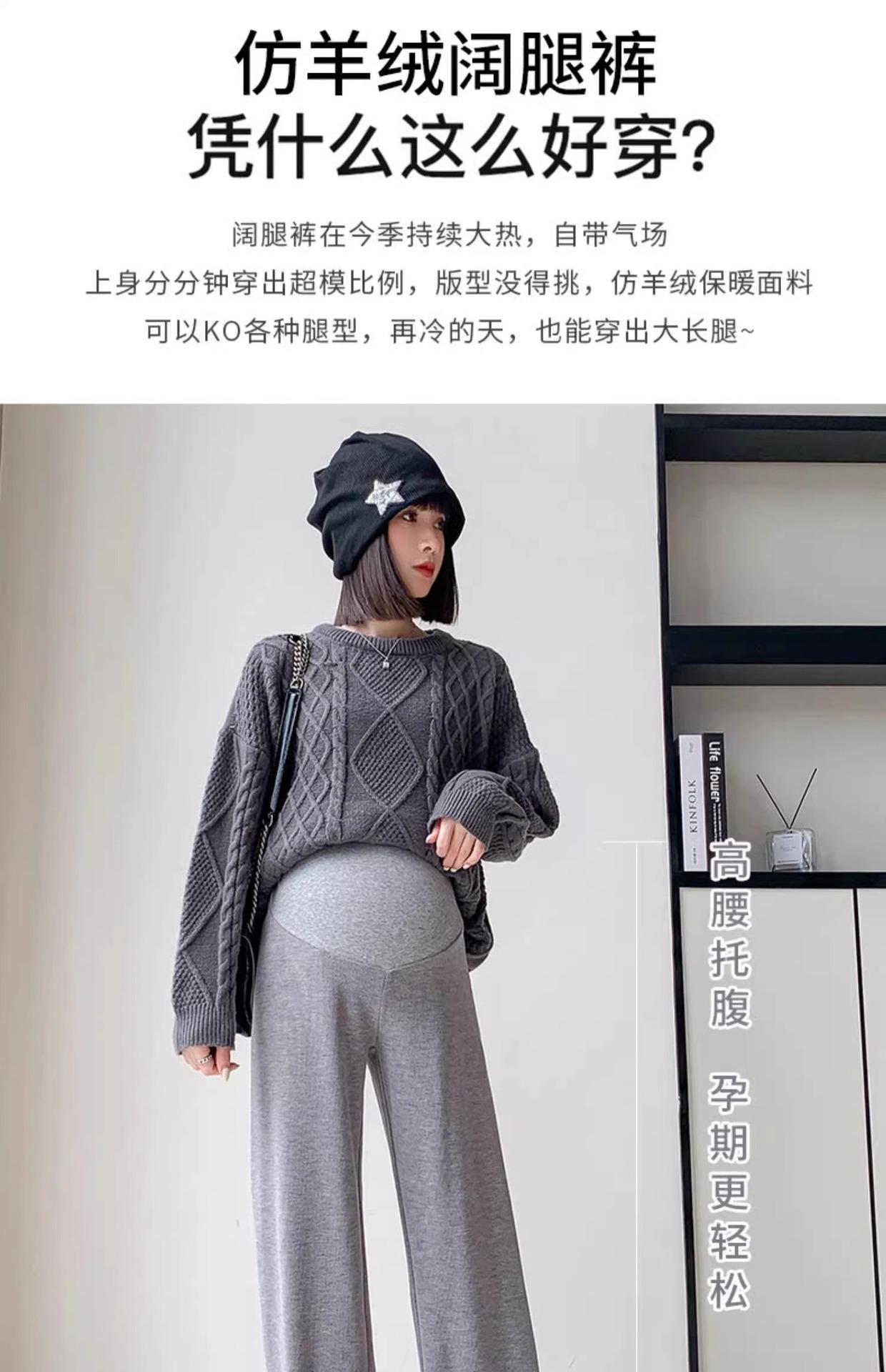 Pantalones de mujer embarazada primavera y otoño ropa exterior pantalones de pierna ancha pantalones casuales holgados otoño e invierno forrados de vellón tipo cachemira talla grande soporte abdominal ajustable