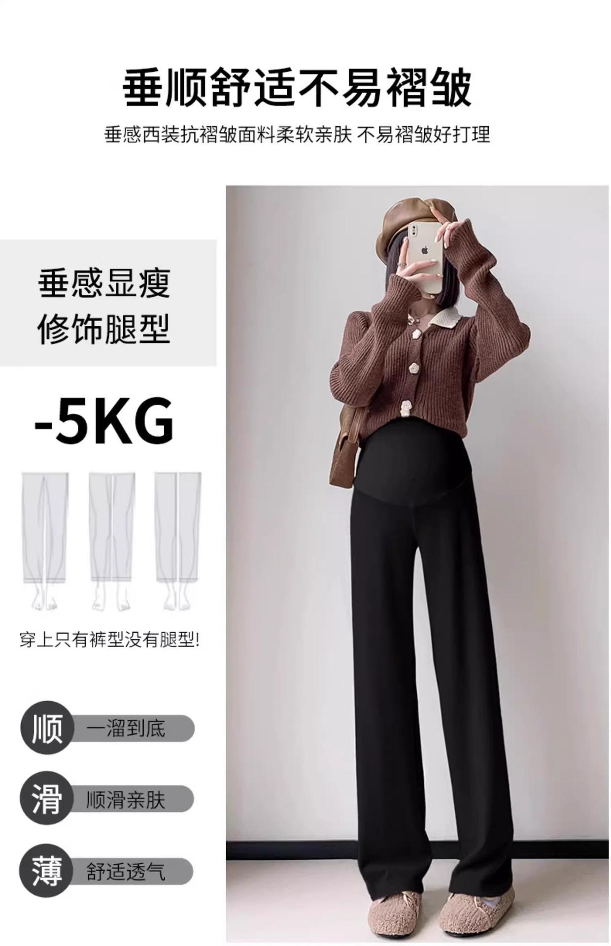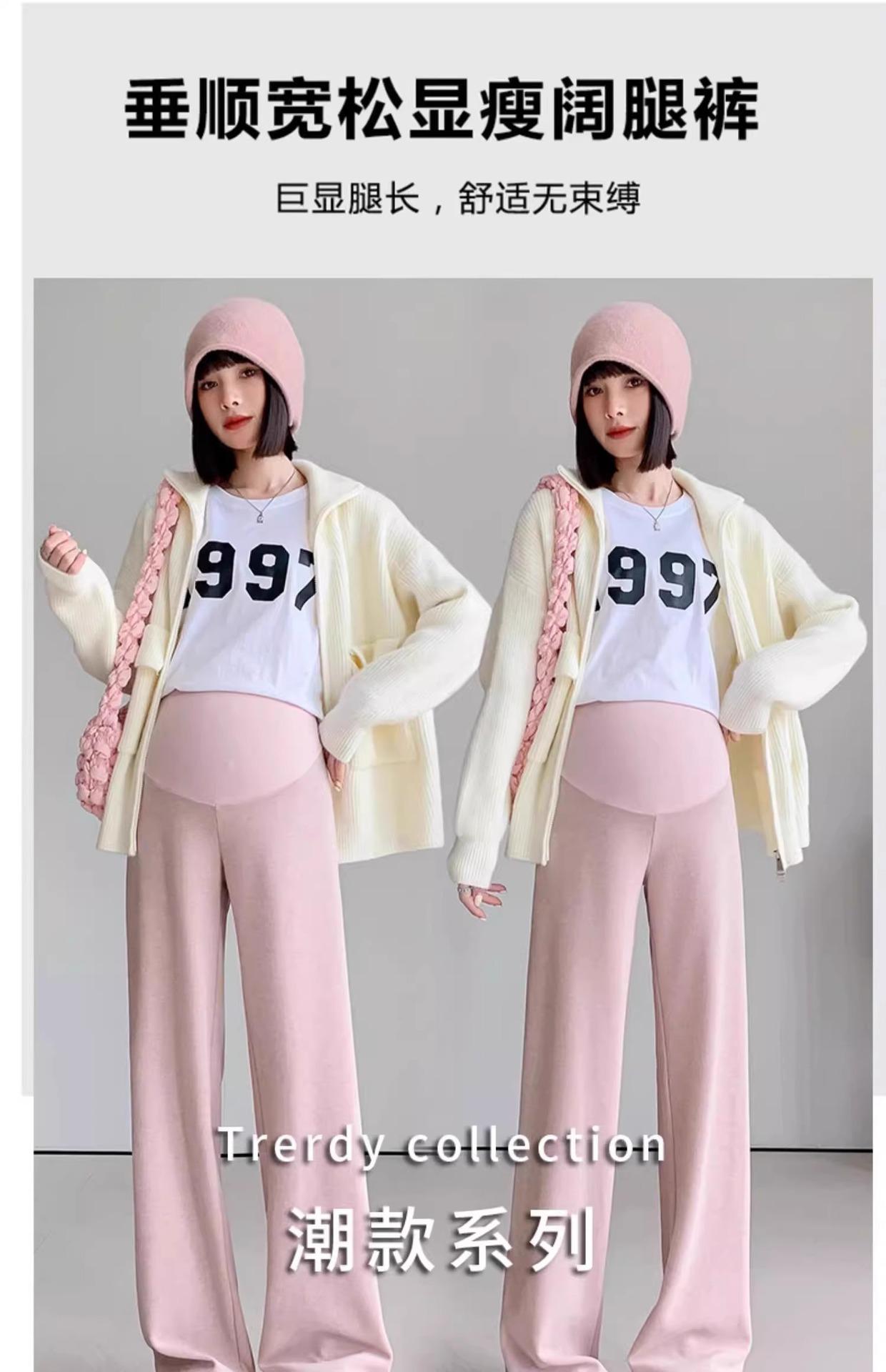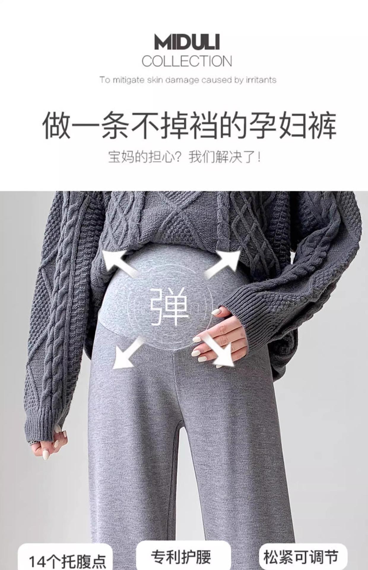 Pantalones de mujer embarazada primavera y otoño ropa exterior pantalones de pierna ancha pantalones casuales holgados otoño e invierno forrados de vellón tipo cachemira talla grande soporte abdominal ajustable