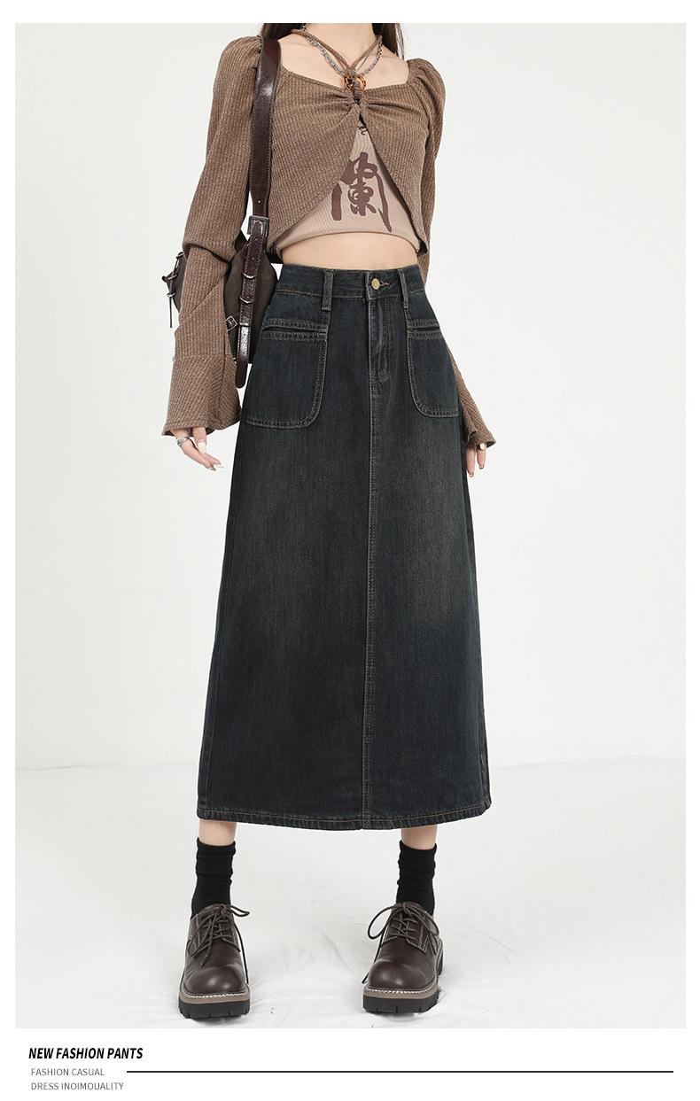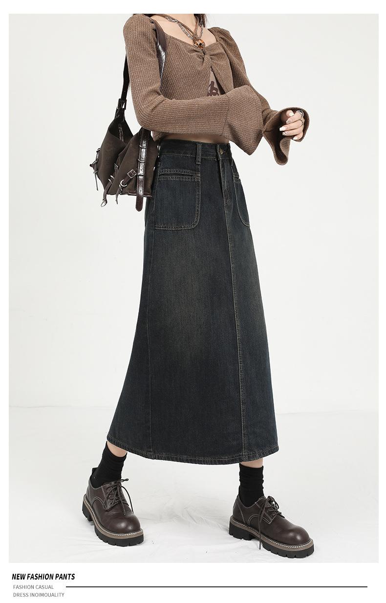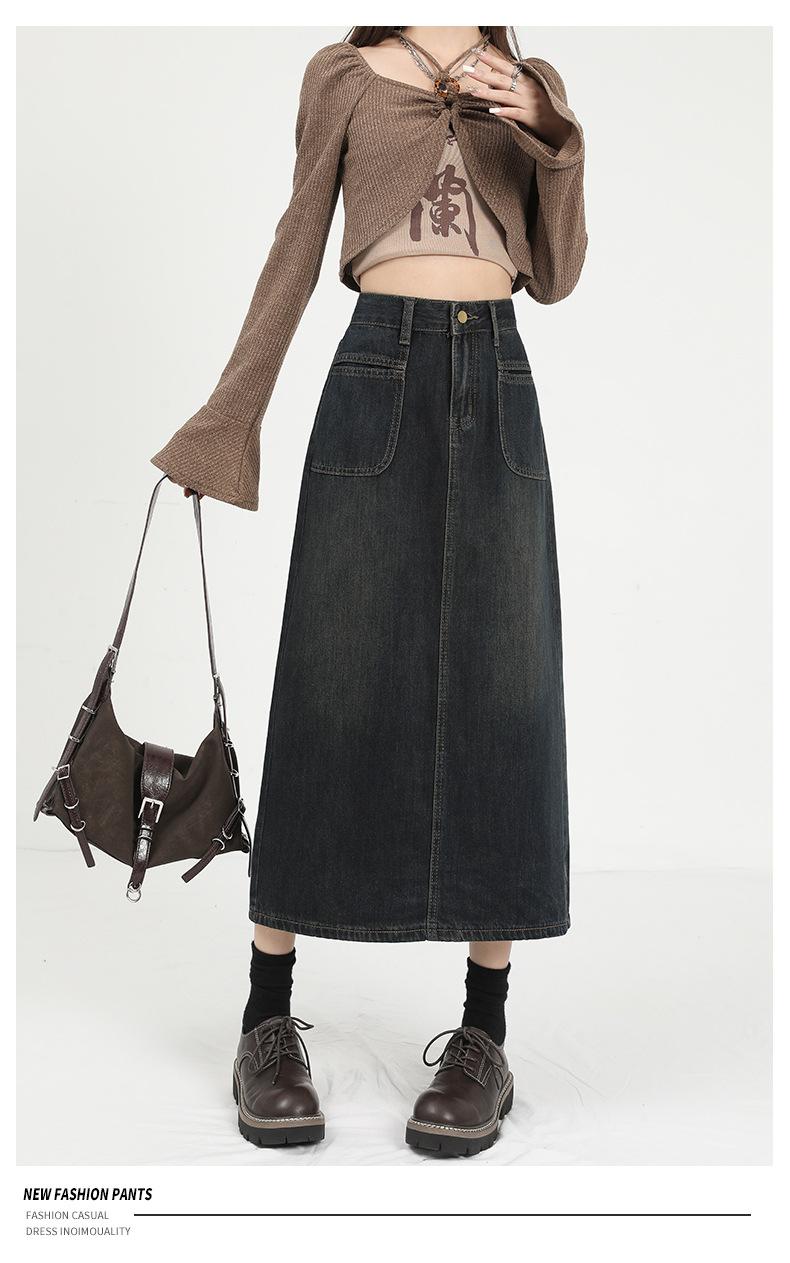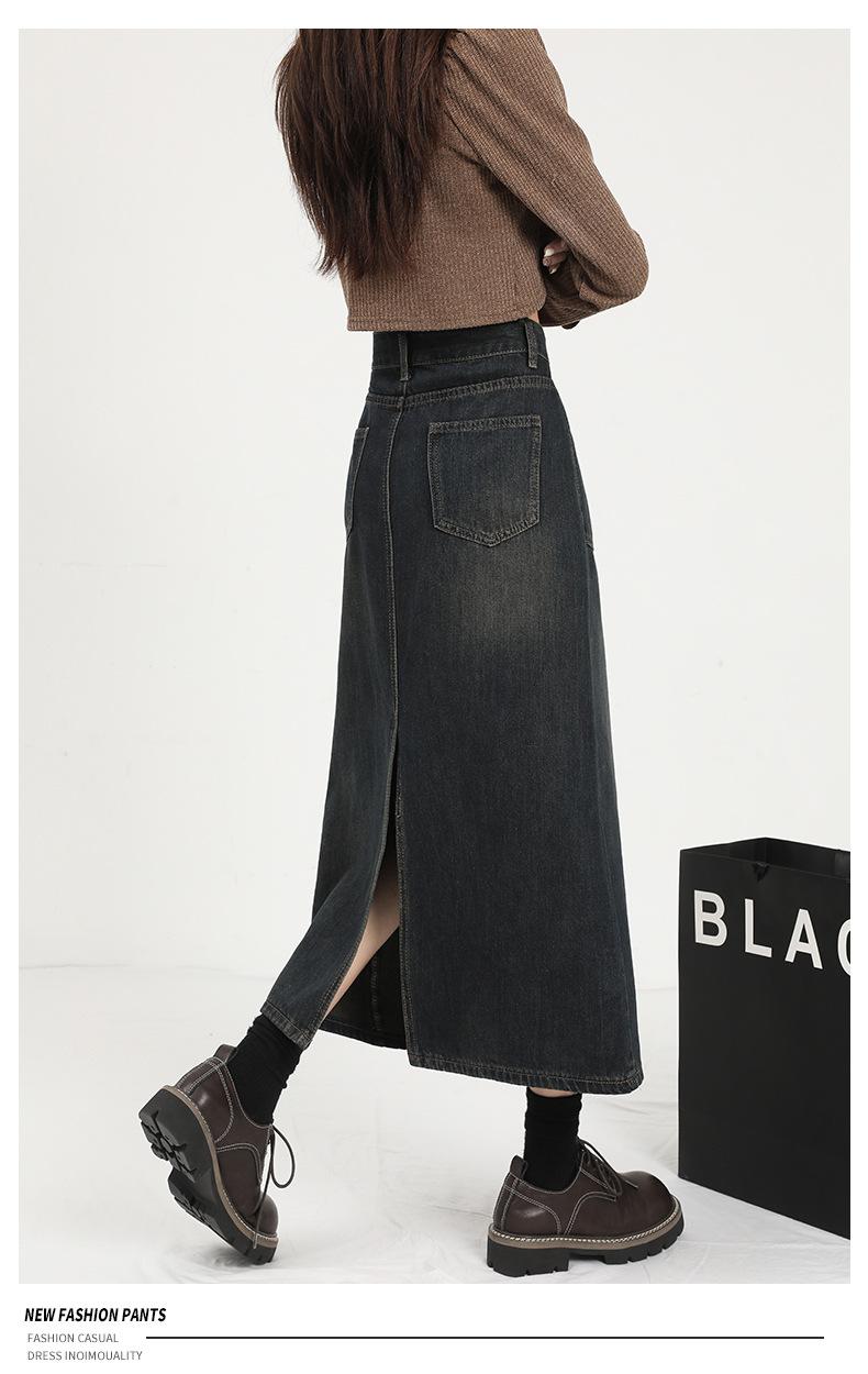 Falda vaquera de cintura alta con abertura para mujer, falda ajustada de corte A, falda retro de longitud media, primavera 2025