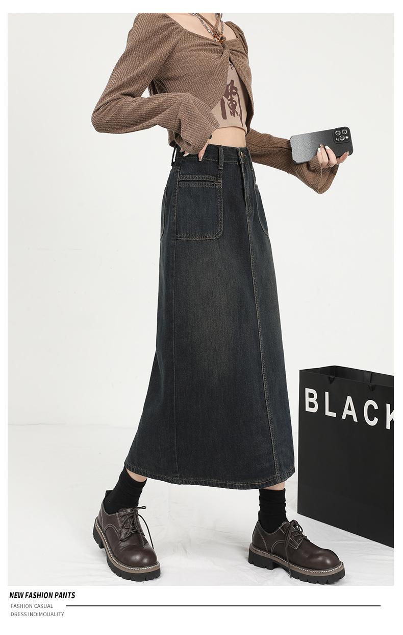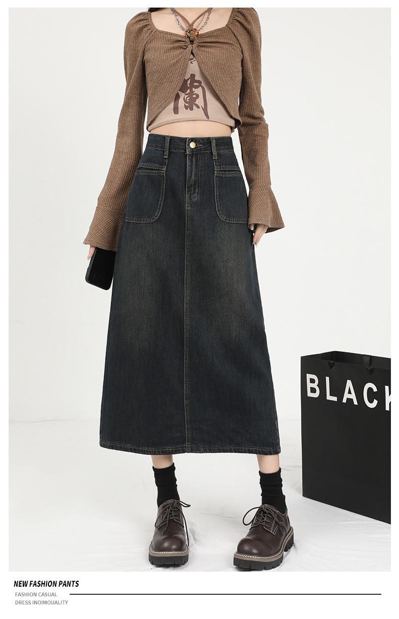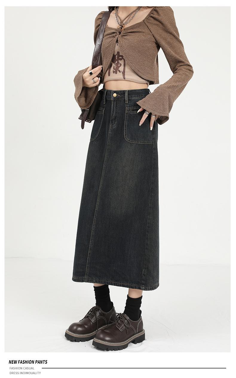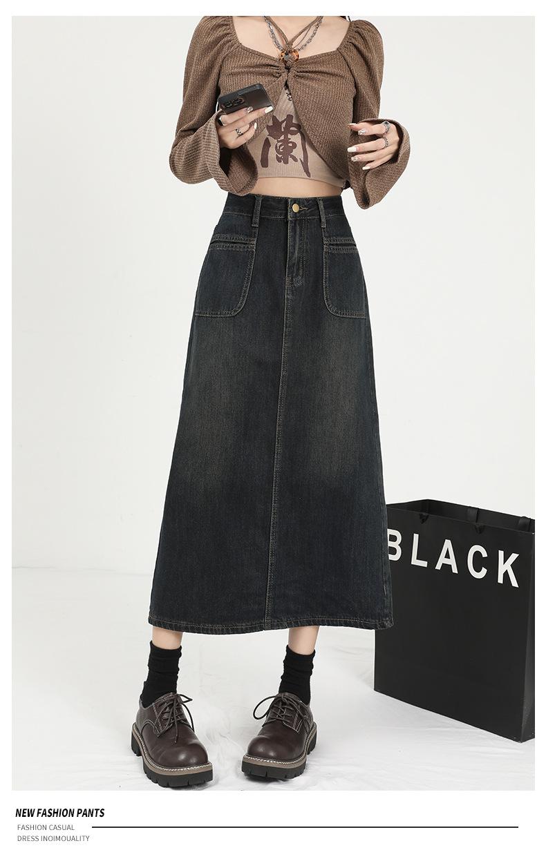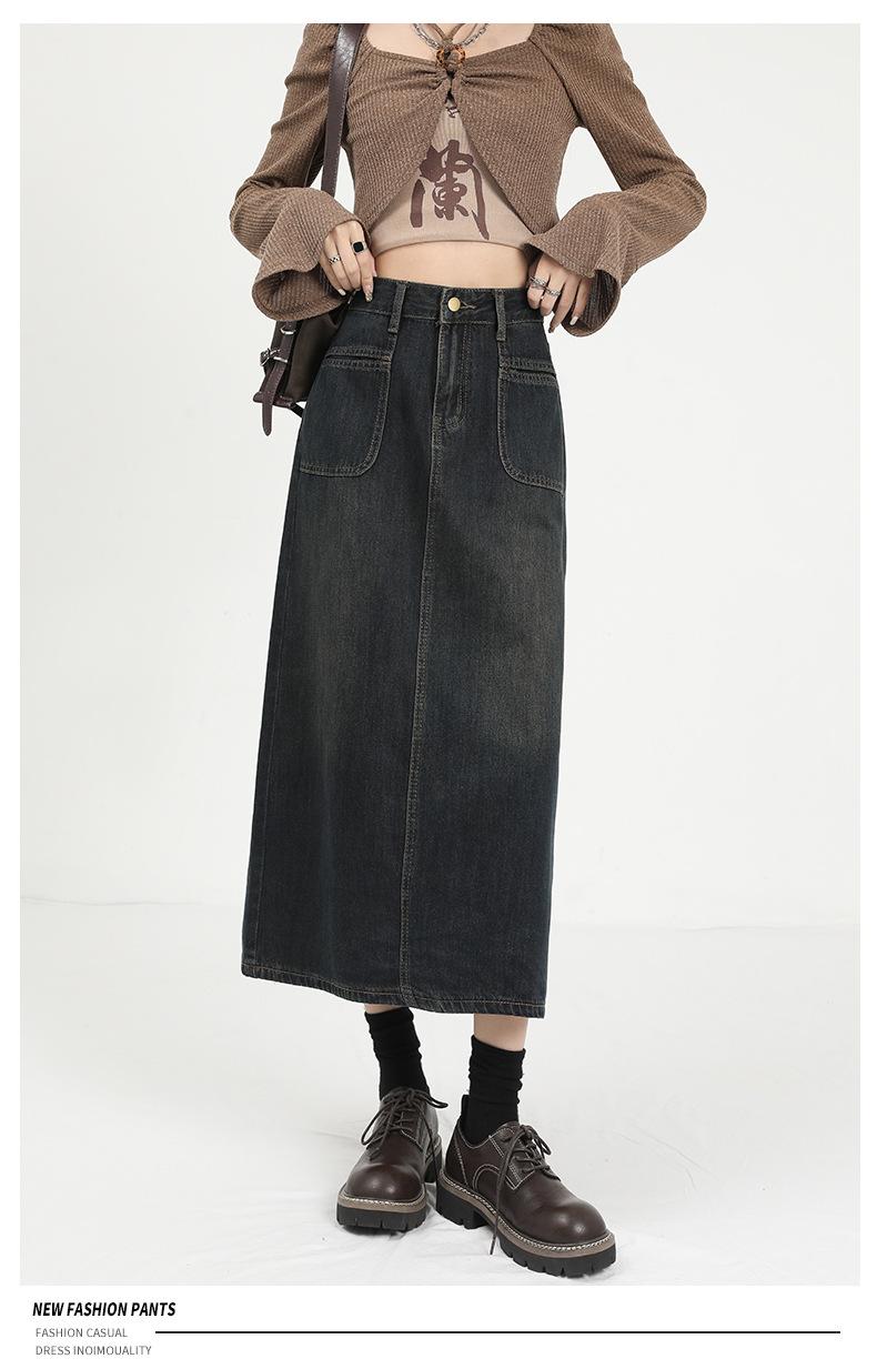Falda vaquera de cintura alta con abertura para mujer, falda ajustada de corte A, falda retro de longitud media, primavera 2025
