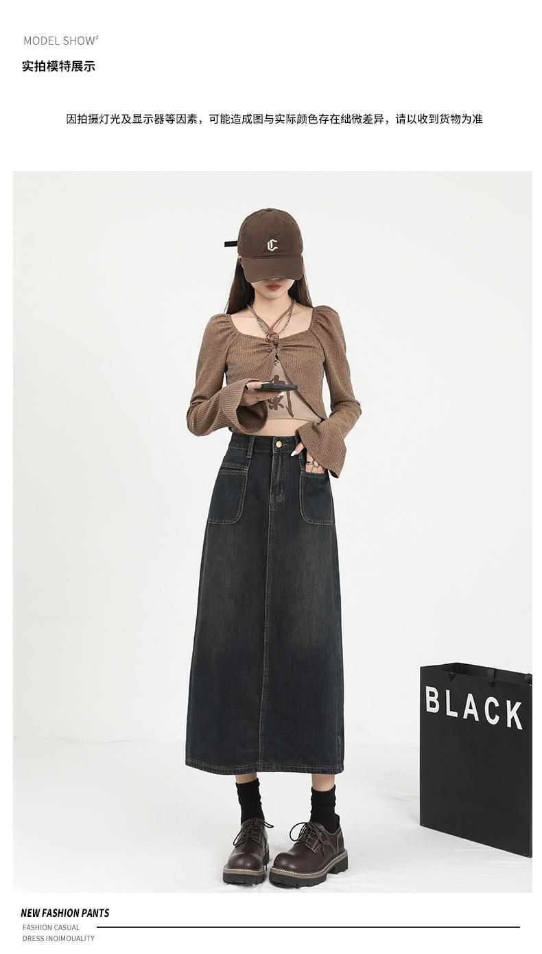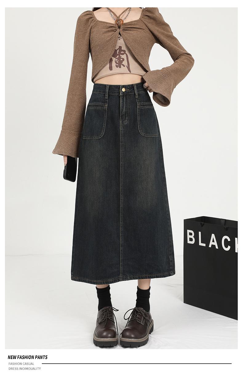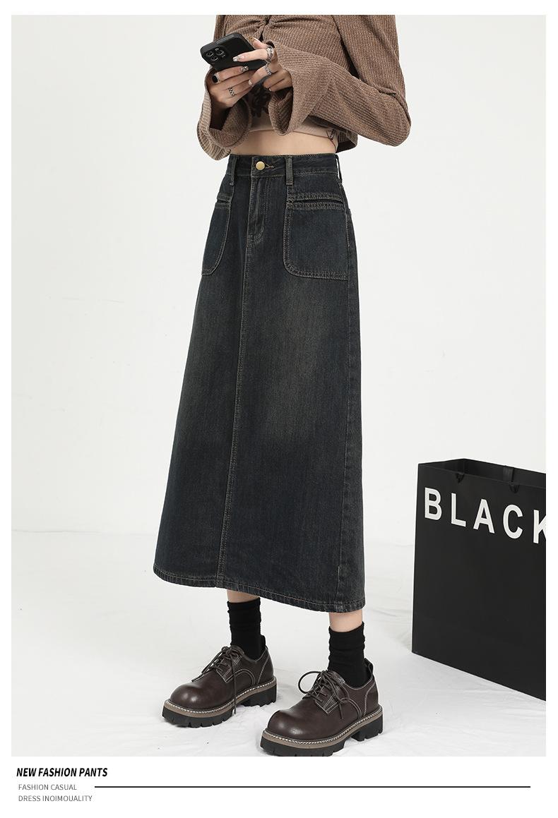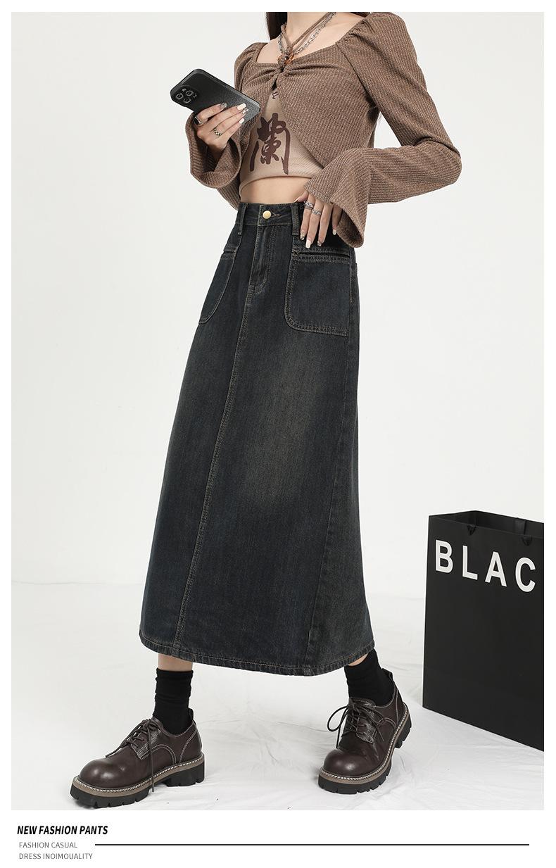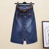 Falda vaquera de cintura alta con abertura para mujer, falda ajustada de corte A, falda retro de longitud media, primavera 2025