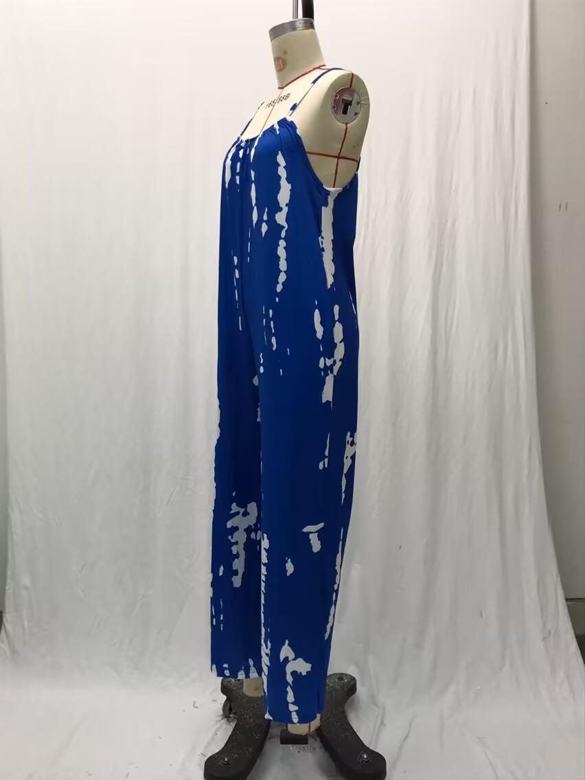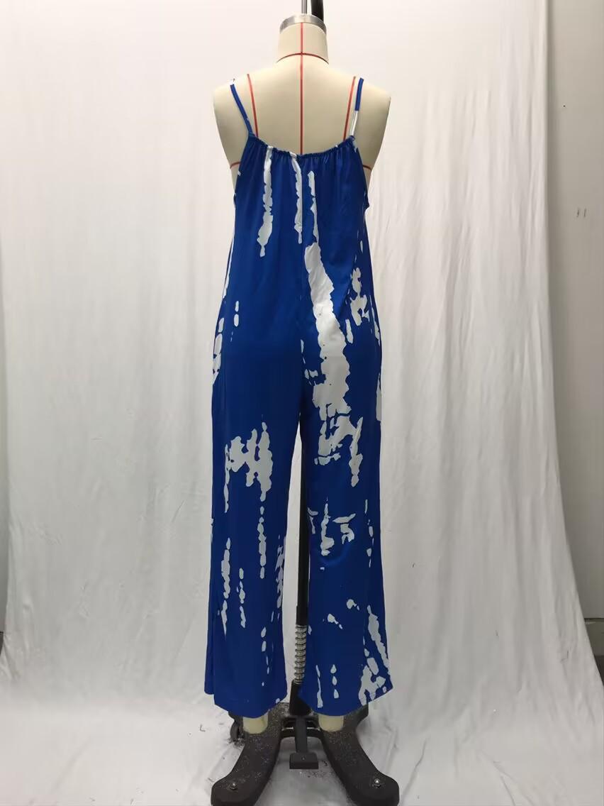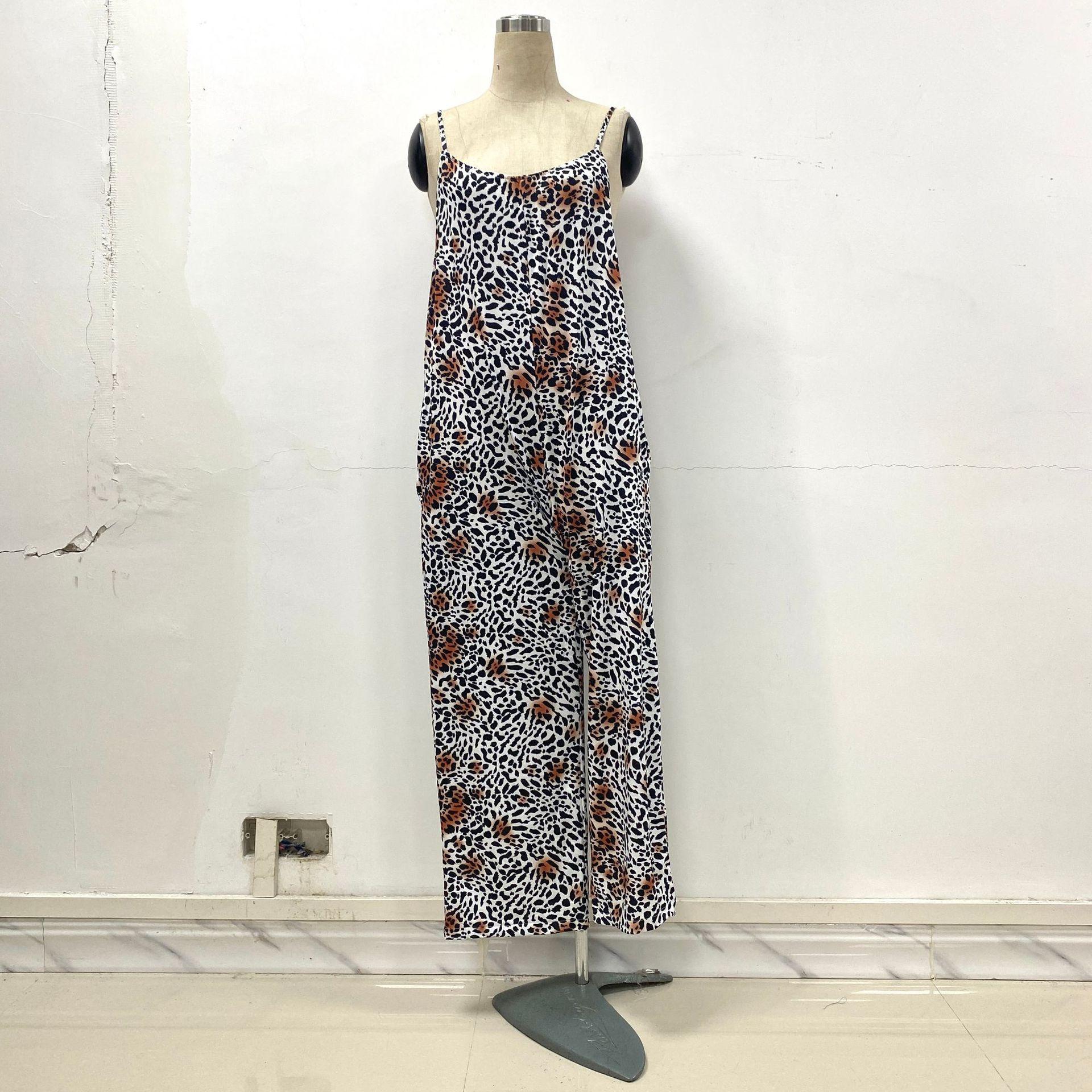 2025 Nuevo Verano Transfronterizo Amazon Ropa Europea y Americana Mono Tirantes Sexy Pierna Ancha Casual Pantalones Estampados
