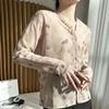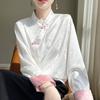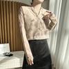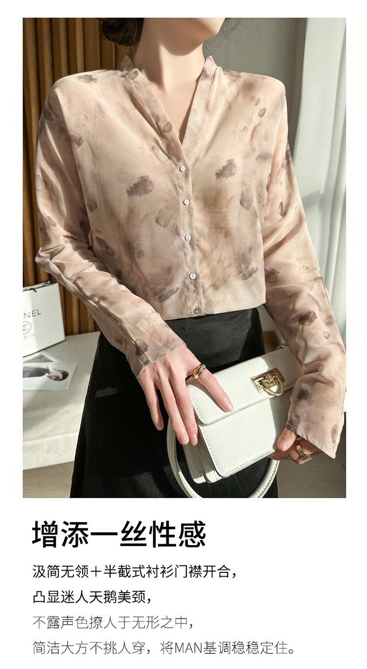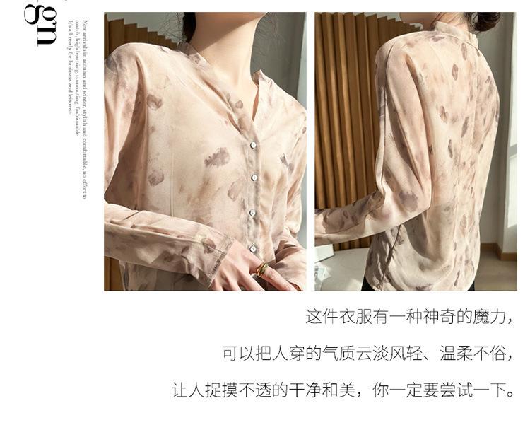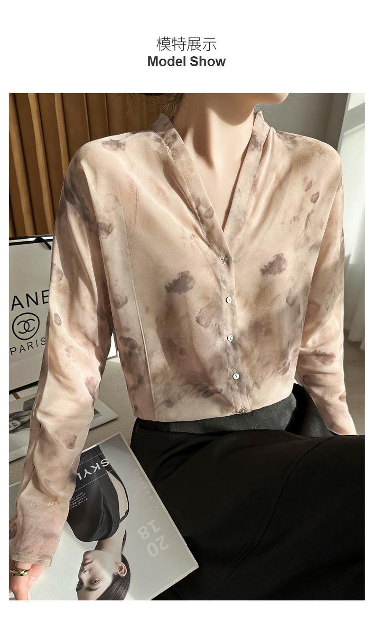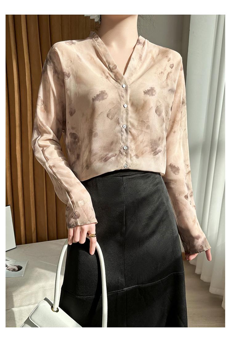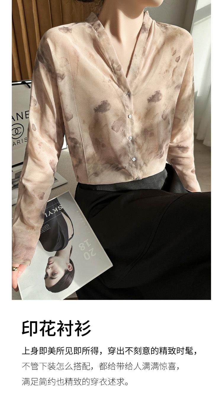 Camisa de satén para mujer, cárdigan con cuello en V, novedad de verano 23, blusa holgada adelgazante con estampado, camisa de manga larga estilo occidental
