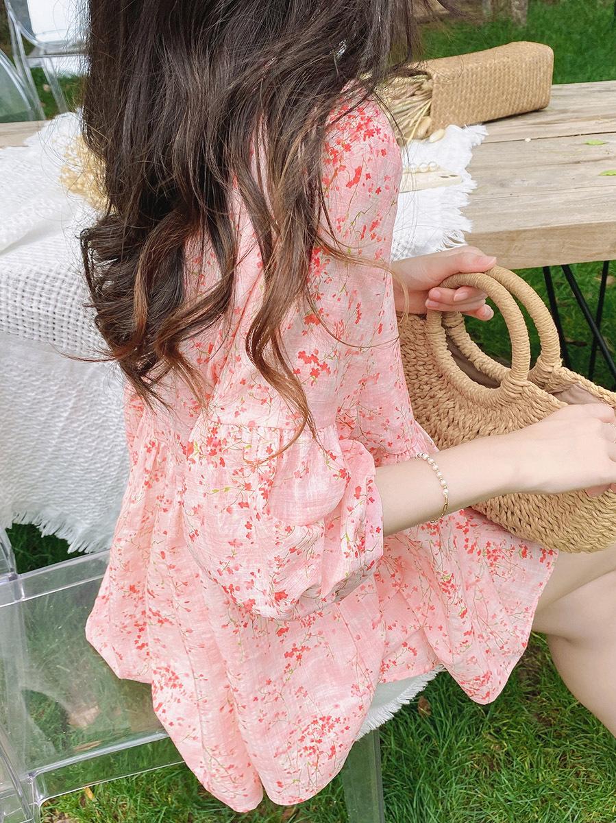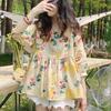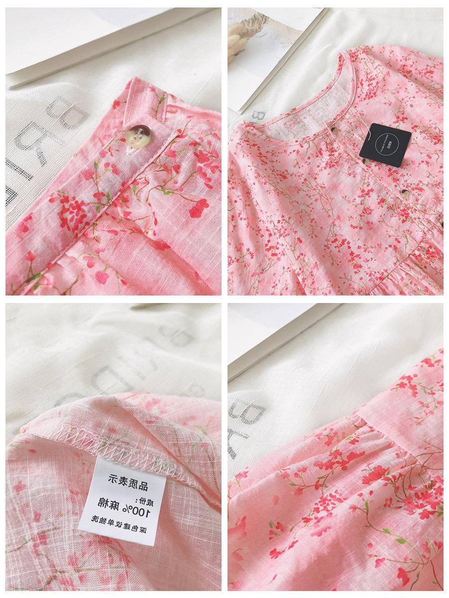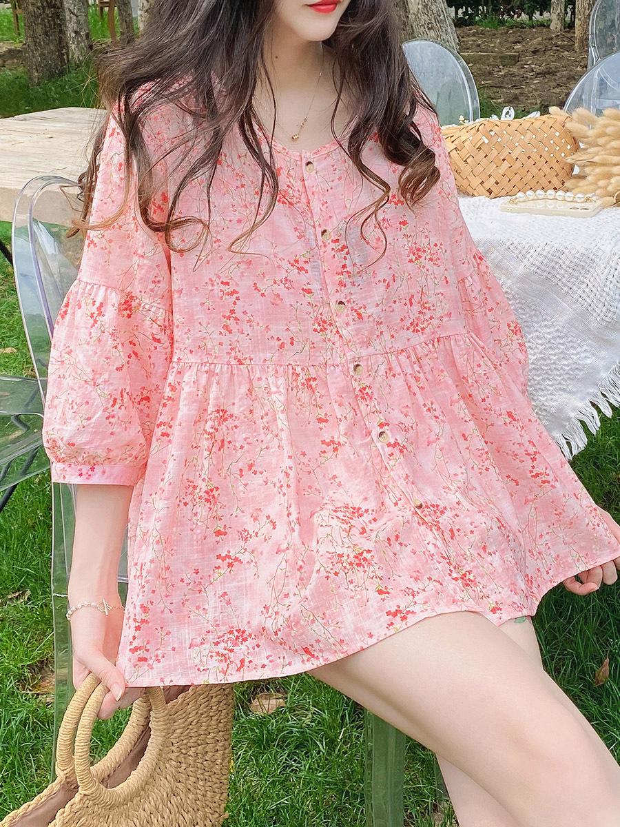 Nueva camisa de lino y algodón con cuello redondo, holgada, estilo coreano, con estampado de hadas y flores, estilo muñeca