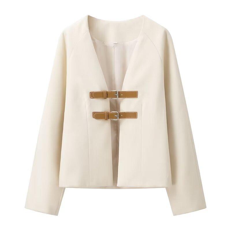 Chaqueta de manga larga suave con cinturón y cuello en V para mujer, estilo europeo y americano, de primavera, nueva