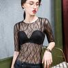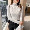 Camisa de encaje de manga larga para mujer, cuello alto, base interior, primavera y verano 2023