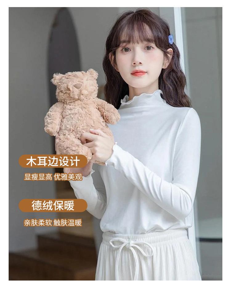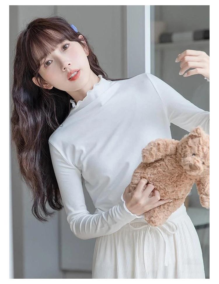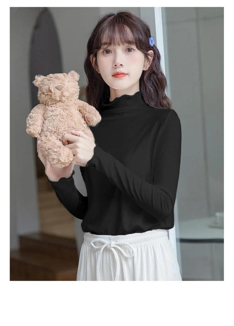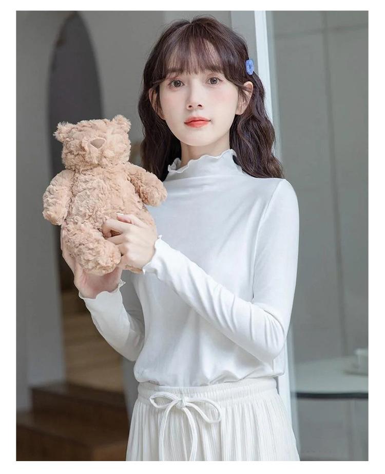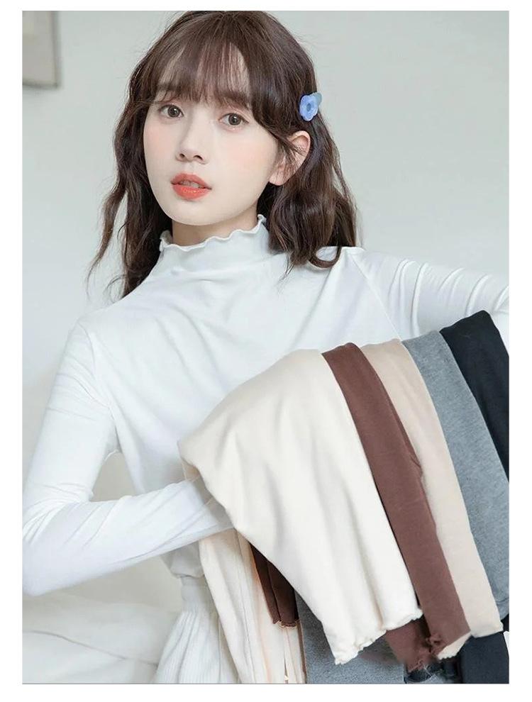 Camisa blanca de fondo para mujer 2024 nueva otoño e invierno de terciopelo cálido ajustado adelgazante medio cuello alto manga larga estilo coreano ropa interior