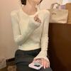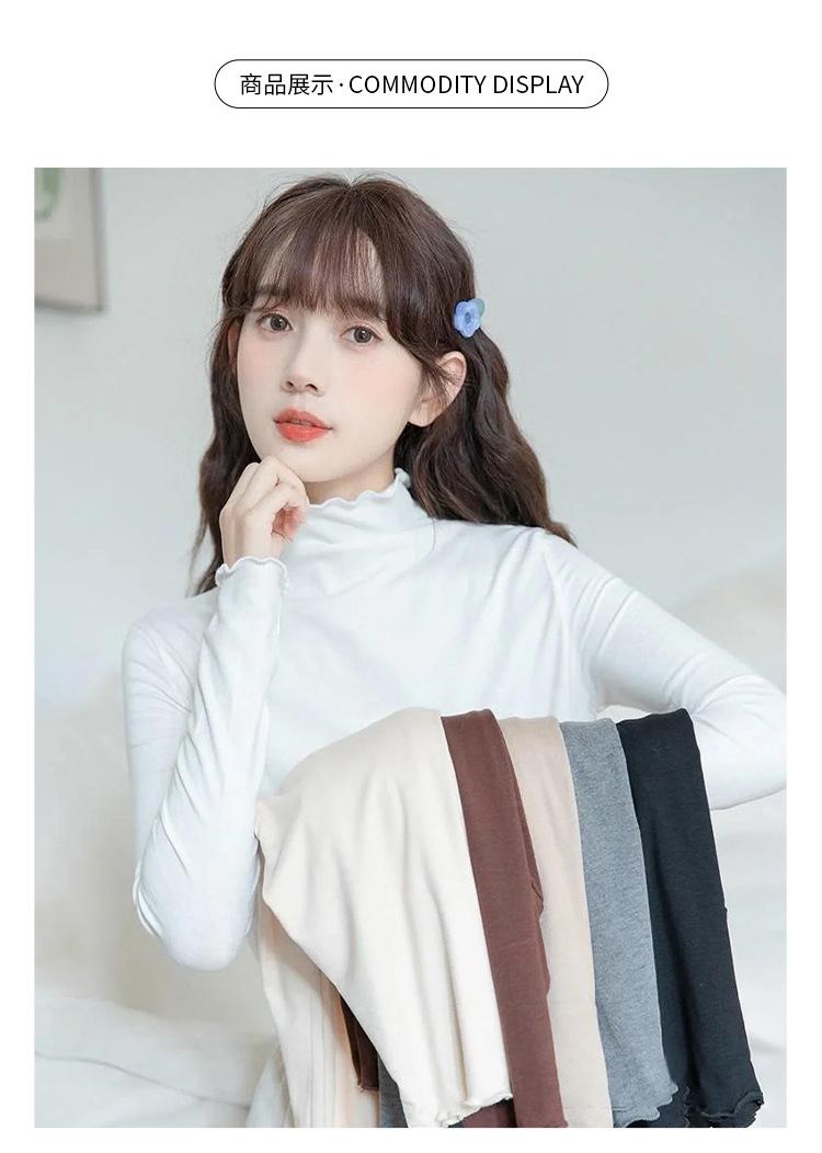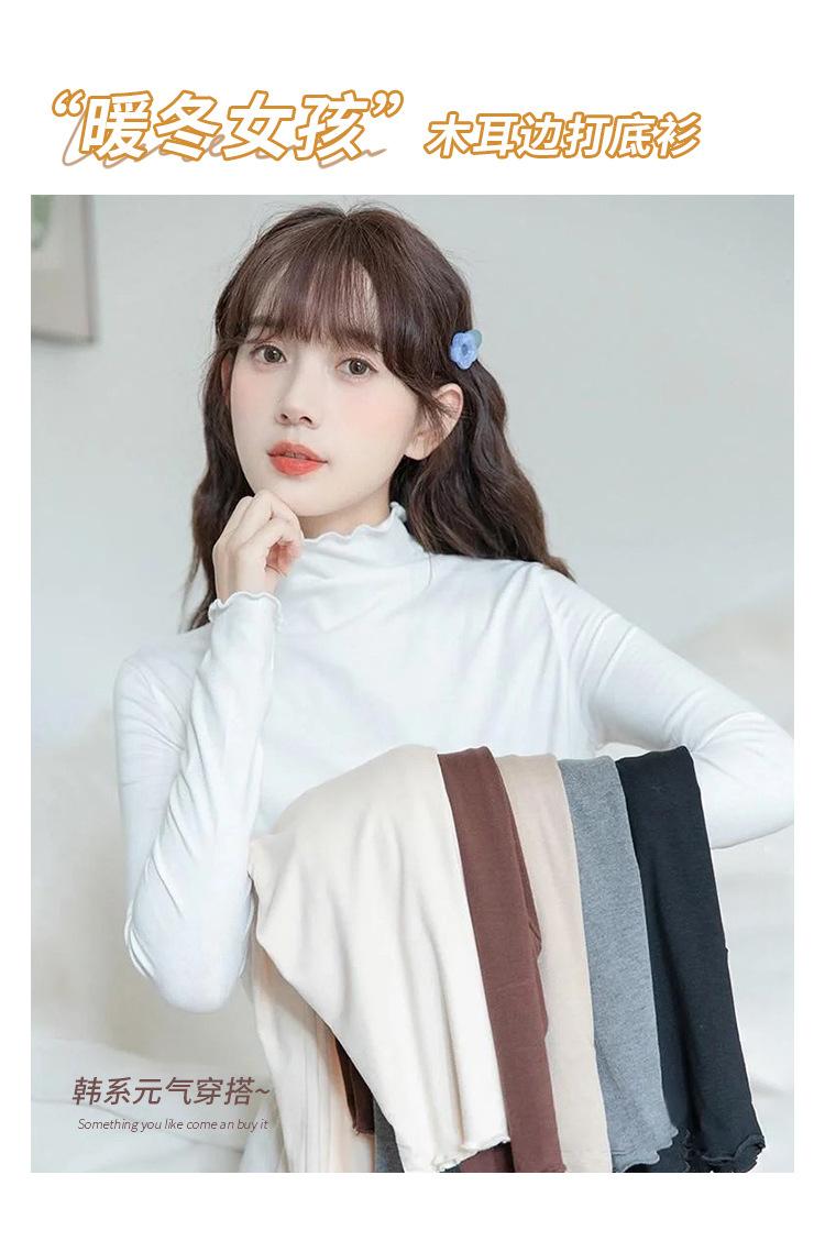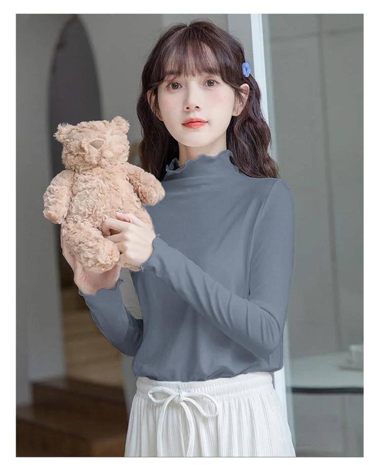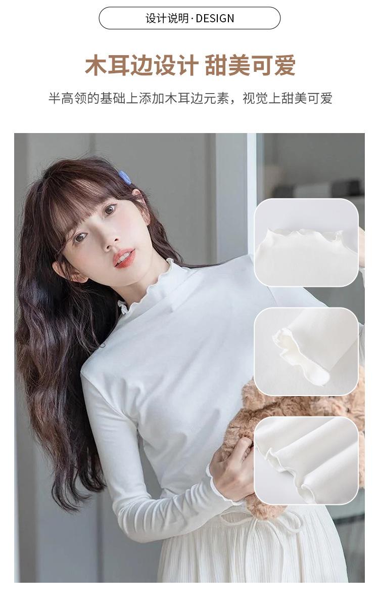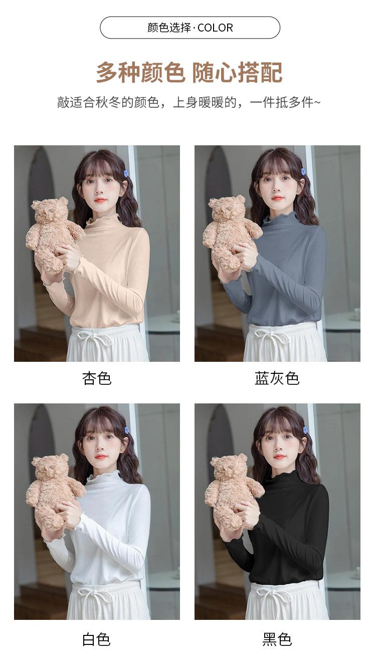 Camisa blanca de fondo para mujer 2024 nueva otoño e invierno de terciopelo cálido ajustado adelgazante medio cuello alto manga larga estilo coreano ropa interior