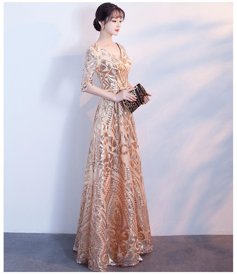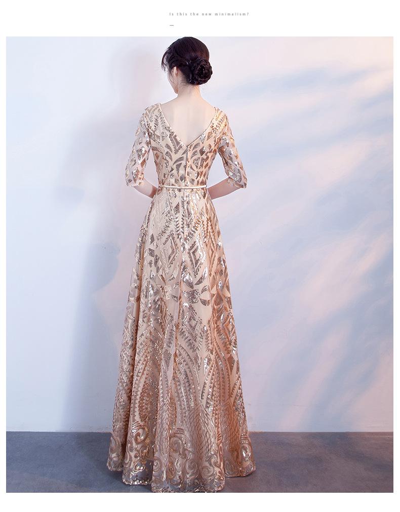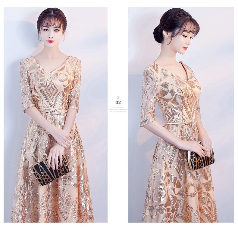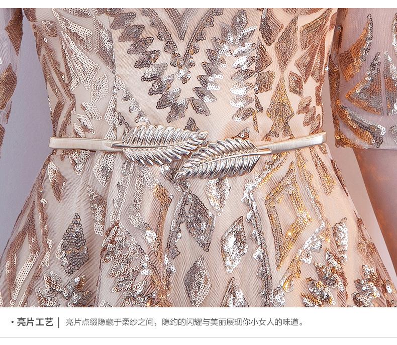 Vestido de Noche de Banquete 2025 Nueva Moda de Primavera Elegante Lentejuela Dorada Pasarela Anfitrión Vestido Ajustado para Mujeres
