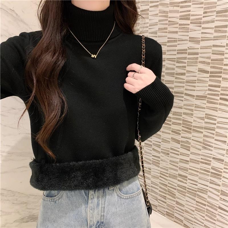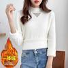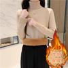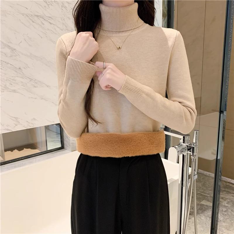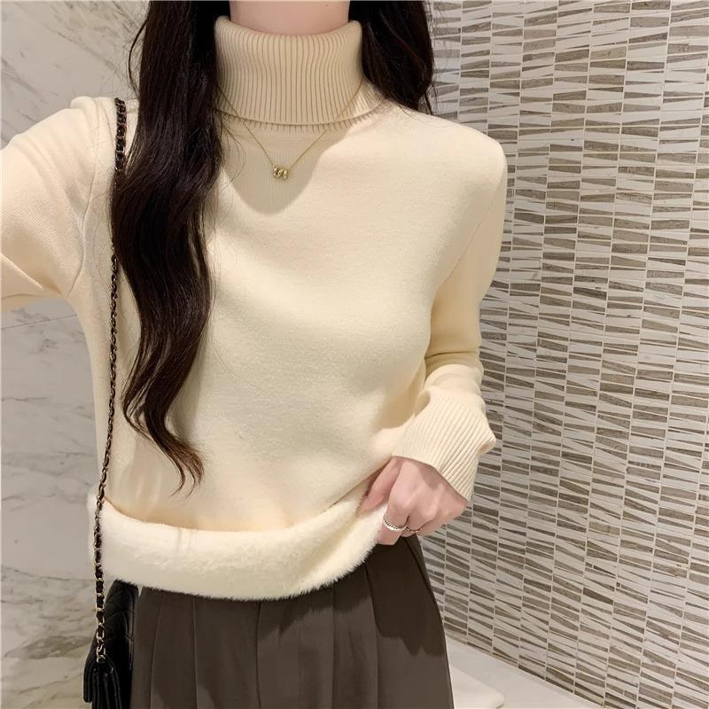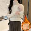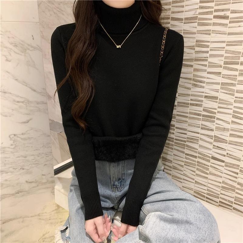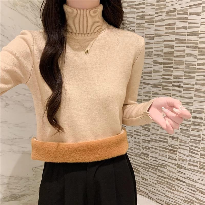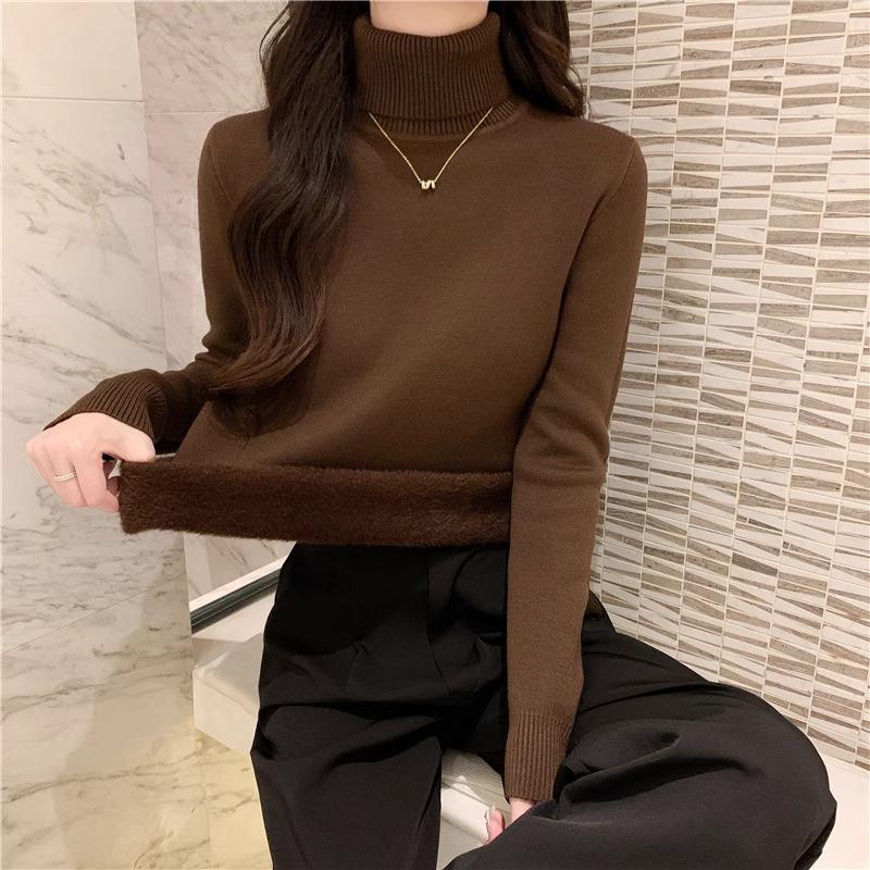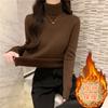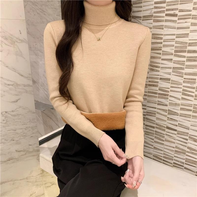 Estilo Otoño e Invierno Tejido de Punto de Fondo de Manga Larga de Fondo Alto con Cuello Alto y Cálido Forrado de Felpa y Grueso Tejido de Punto de Terciopelo de Una Pieza para Mujer