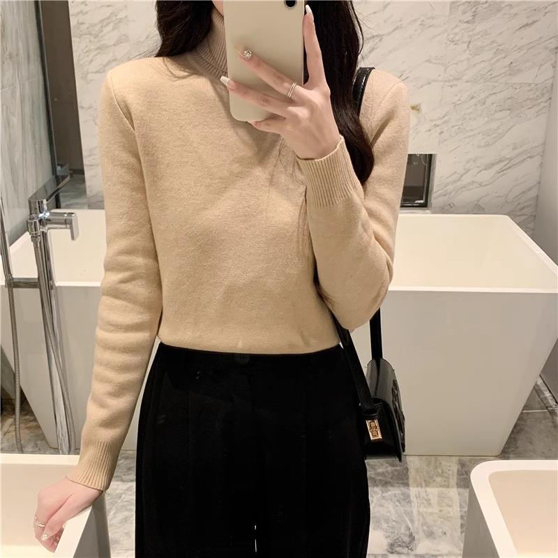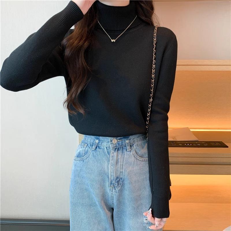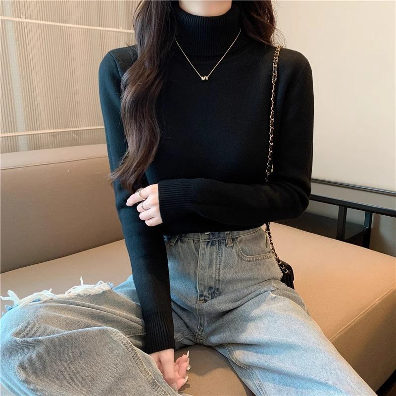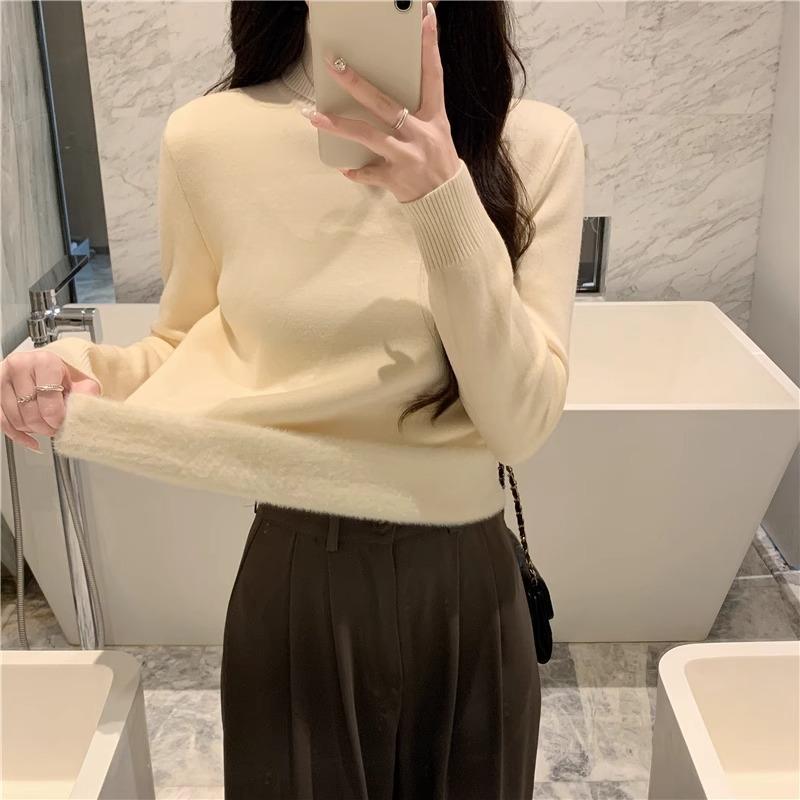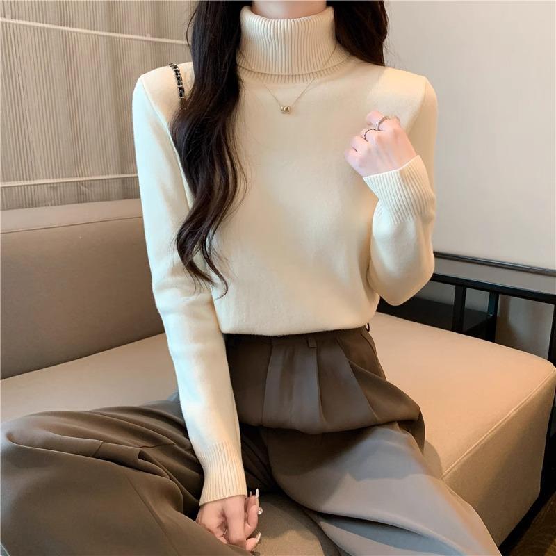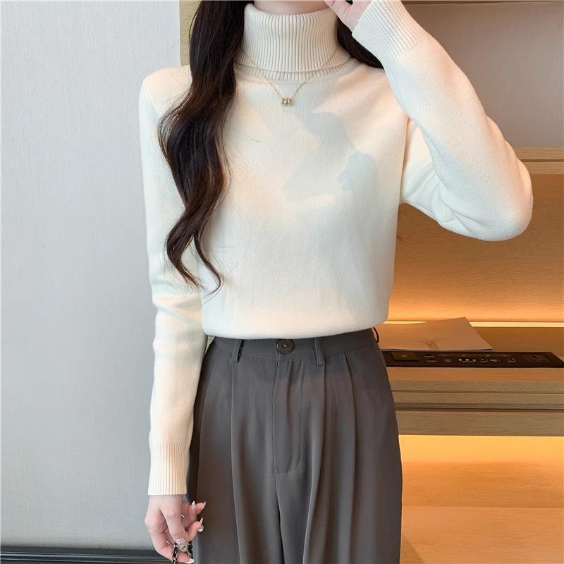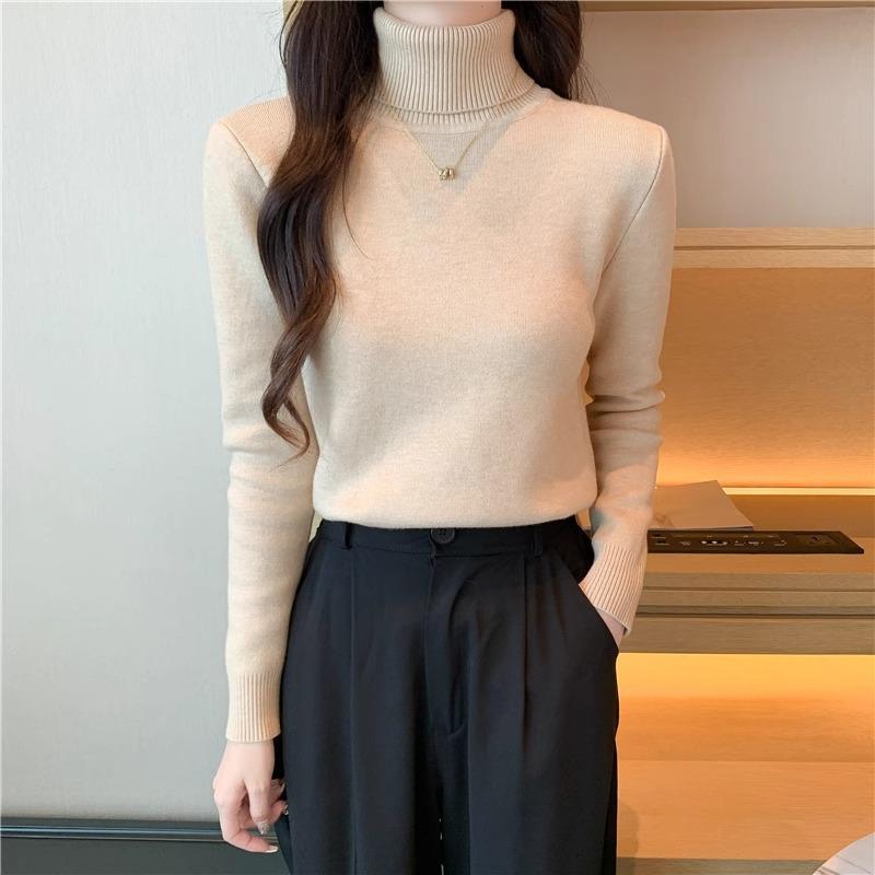 Estilo Otoño e Invierno Tejido de Punto de Fondo de Manga Larga de Fondo Alto con Cuello Alto y Cálido Forrado de Felpa y Grueso Tejido de Punto de Terciopelo de Una Pieza para Mujer