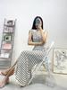 Ropa de Mujer Transfronteriza Otoño Nuevo Estilo Elegante Francés Bloque de Color Rayado Cuello en V Calado Sin Mangas Vestido Largo de Punto para Mujer