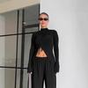 Blusa de manga larga con un solo hombro y estilo europeo y americano que deja al descubierto el vientre, chaleco pequeño simple y versátil, se puede usar en exteriores o interiores, un artículo popular entre los influyentes del comercio exterior, grandes cantidades en stock, ¡invitamos a nuevos y antiguos clientes a comprar muestras!