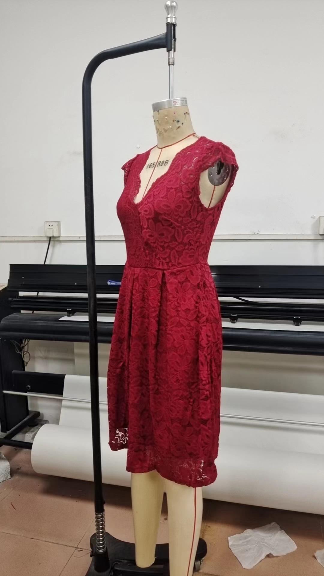 Hepburn viento primavera y verano nuevo comercio exterior transfronterizo europeo y americano para vestido elegante con cuello en V para mujer
