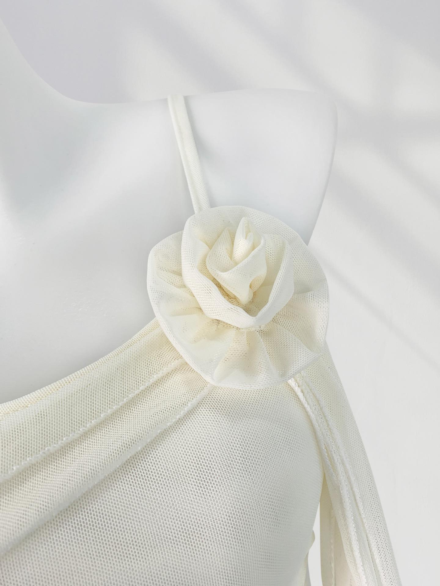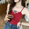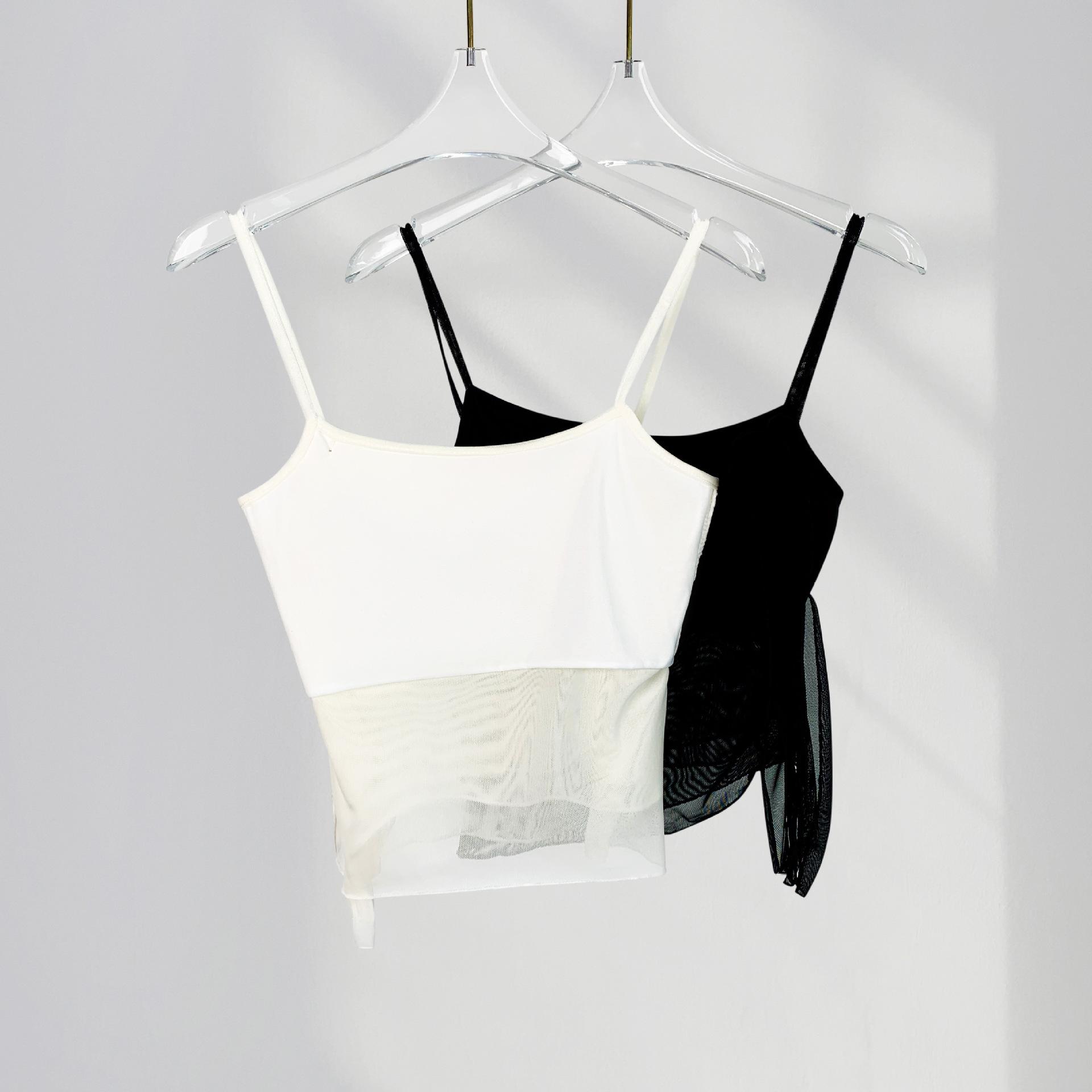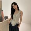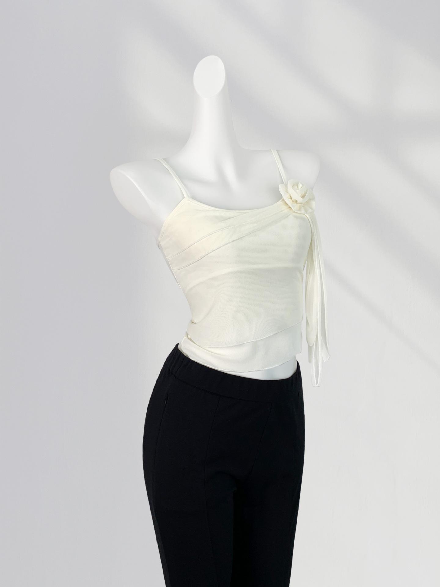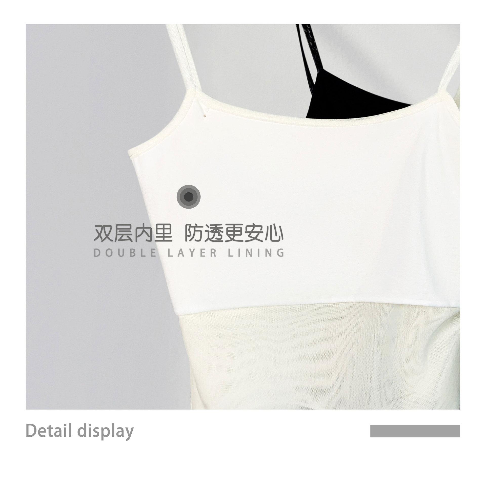 Verano ~ top de tirantes de malla doble con flor rosa dulce y picante estilo puro deseo para mujer chaleco de verano para exterior