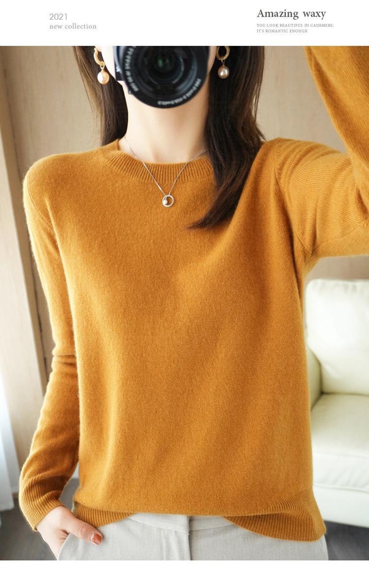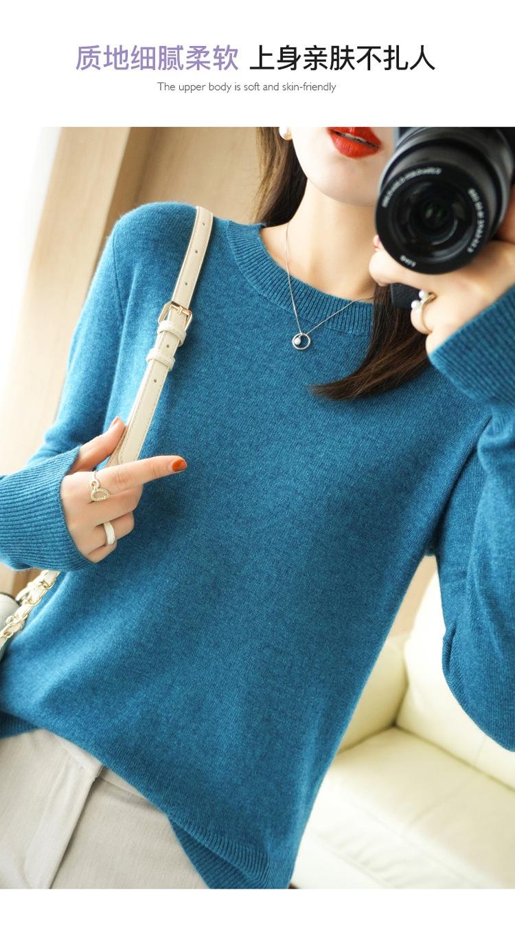 Otoño e Invierno nuevo suéter de cuello redondo versátil para mujer, suéter holgado de estilo coreano, camiseta interior de talla grande adelgazante