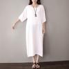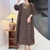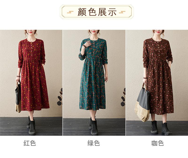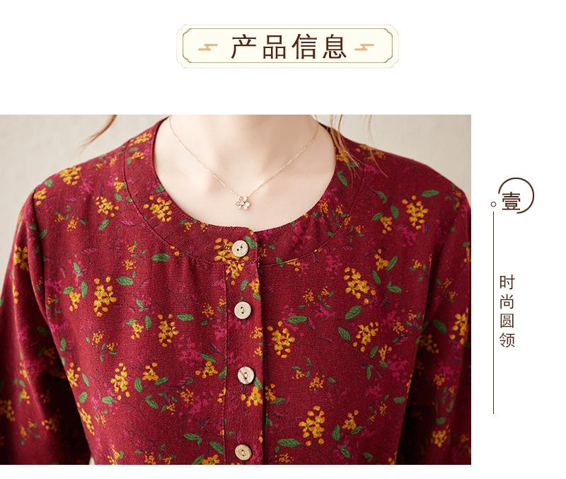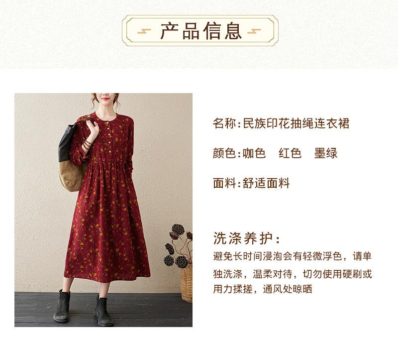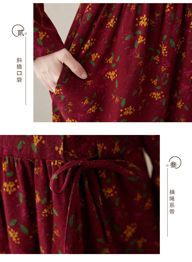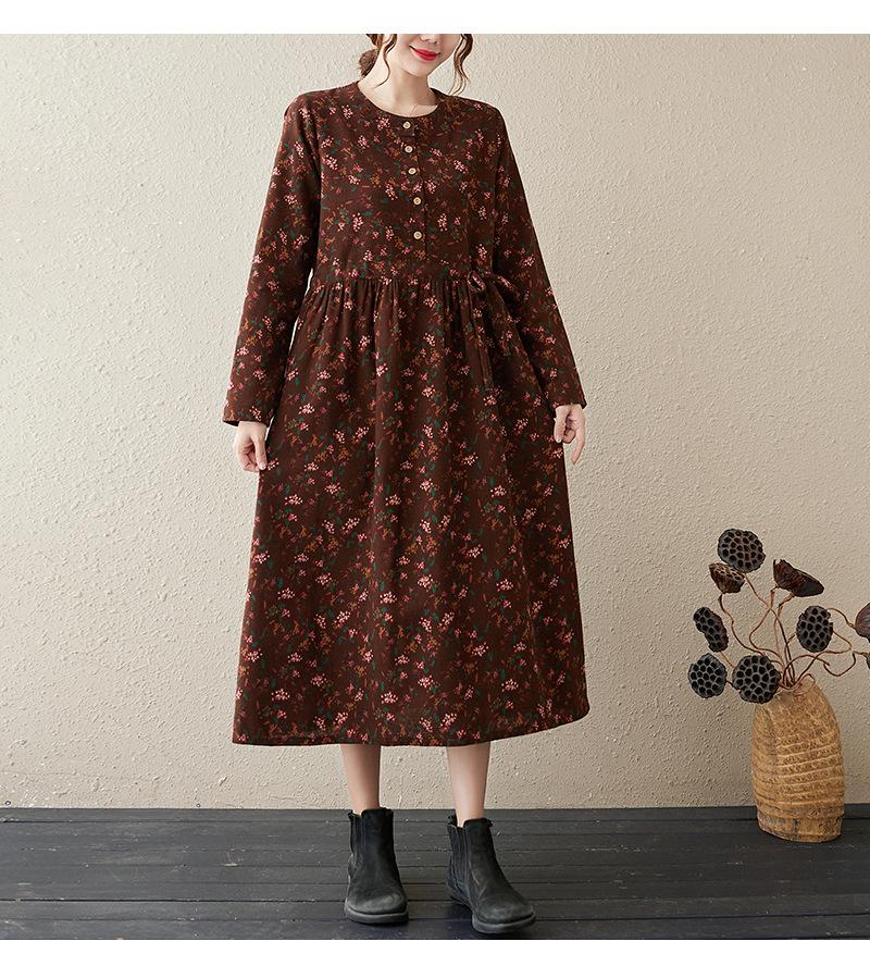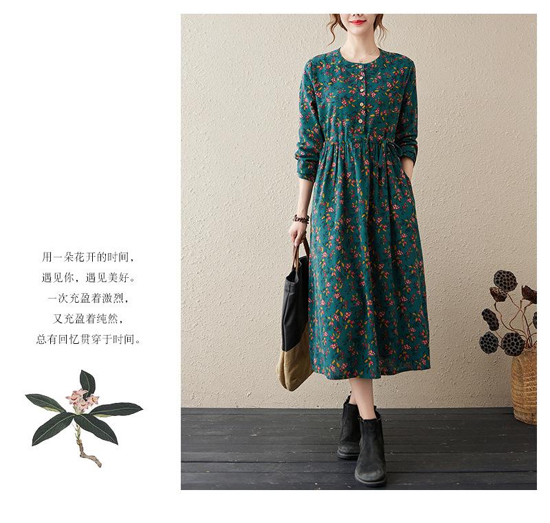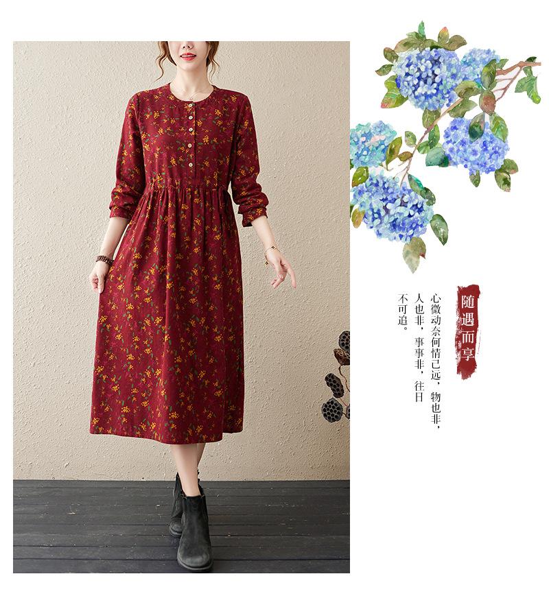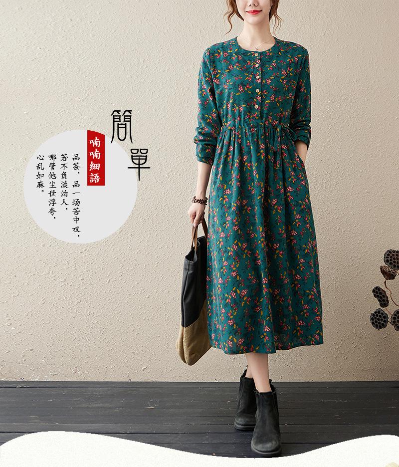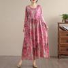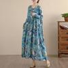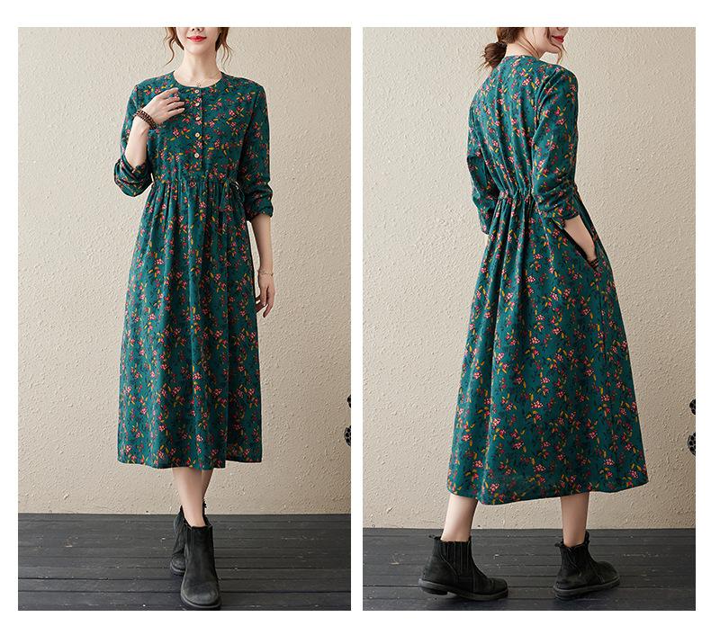 Vestido largo de lino y algodón con estampado floral retro artístico, de manga larga, ajustado, con cordones, holgado y adelgazante, para mujer