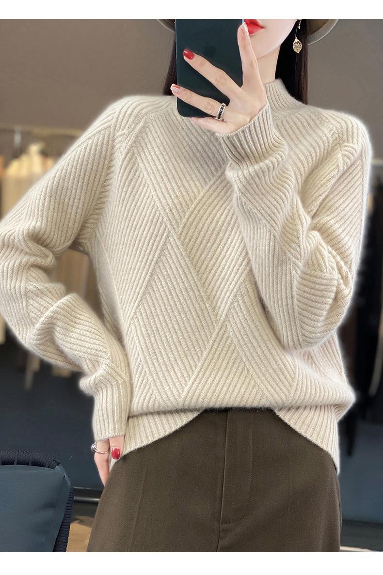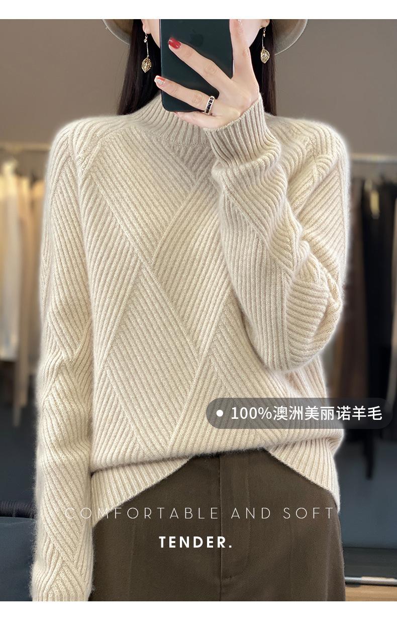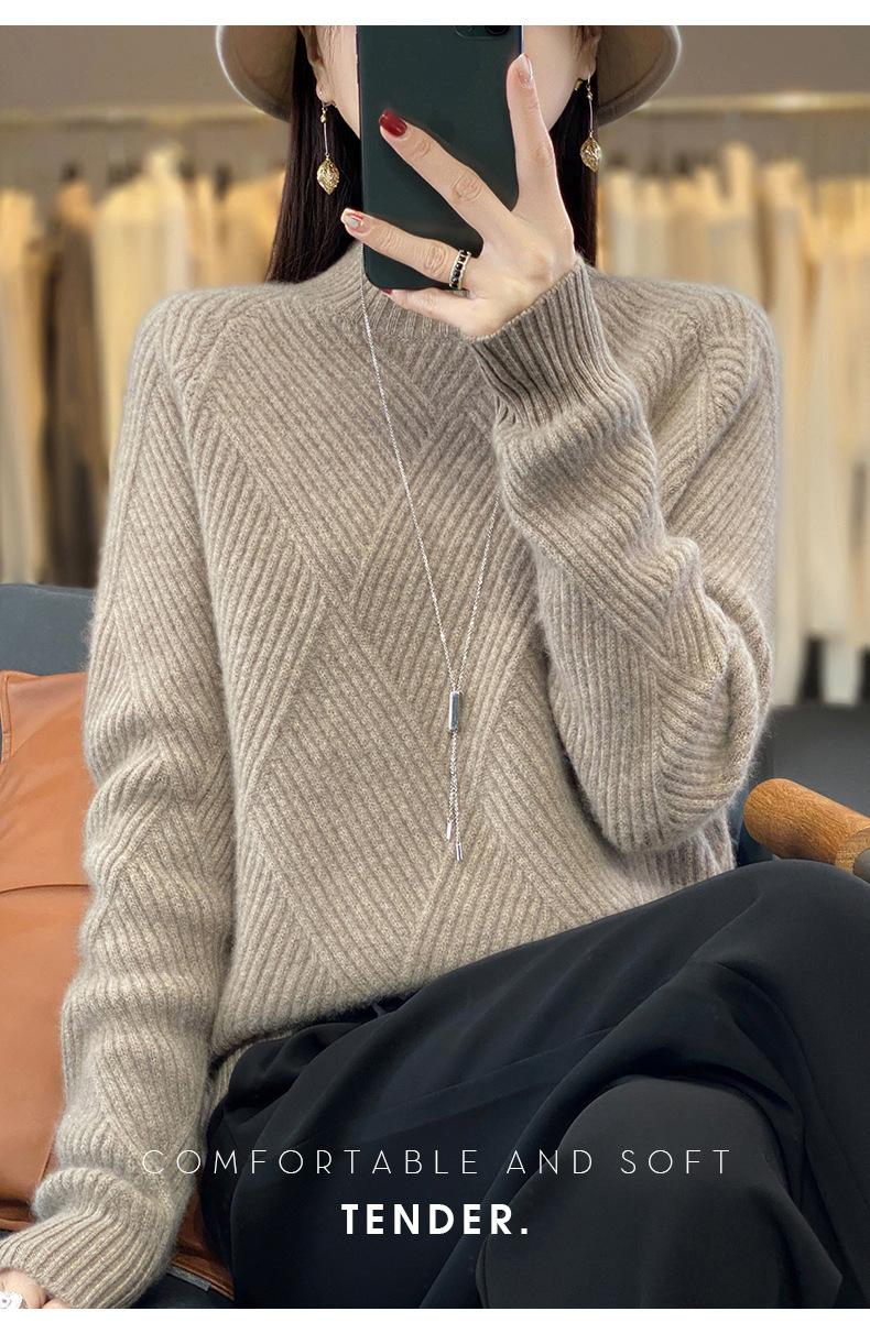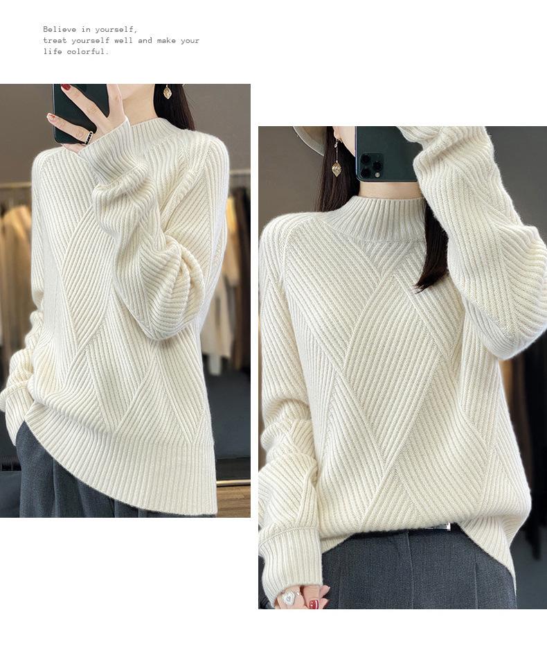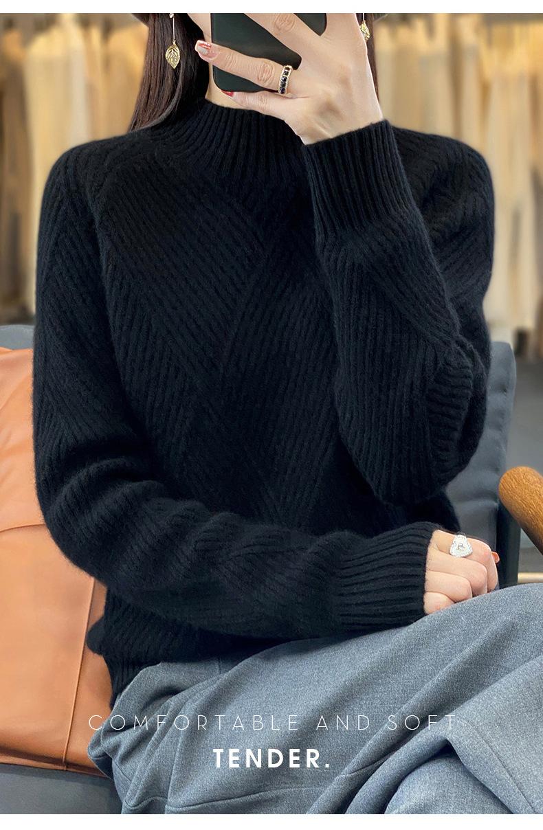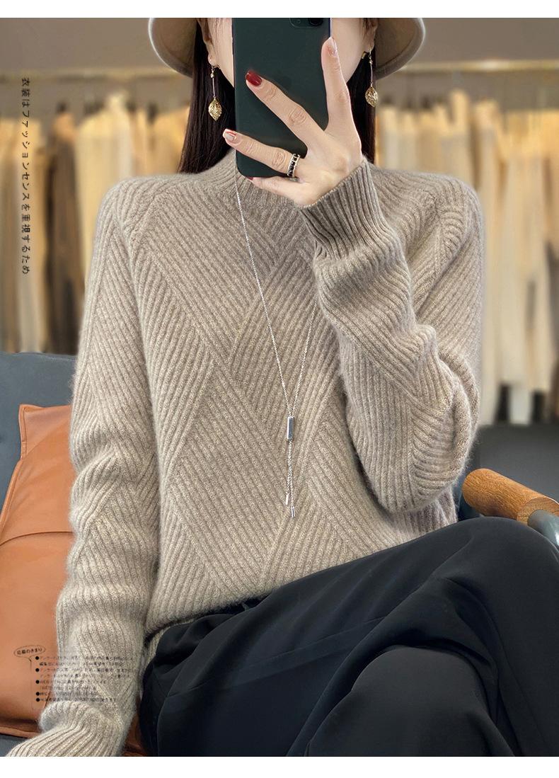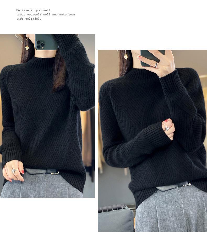 Tops de Otoño e Invierno, Suéteres de Lana, Suéteres de Cuello Alto Medio para Mujer, Camisas Base Holgadas de Estilo Coreano Elegantes, Tops Versátiles