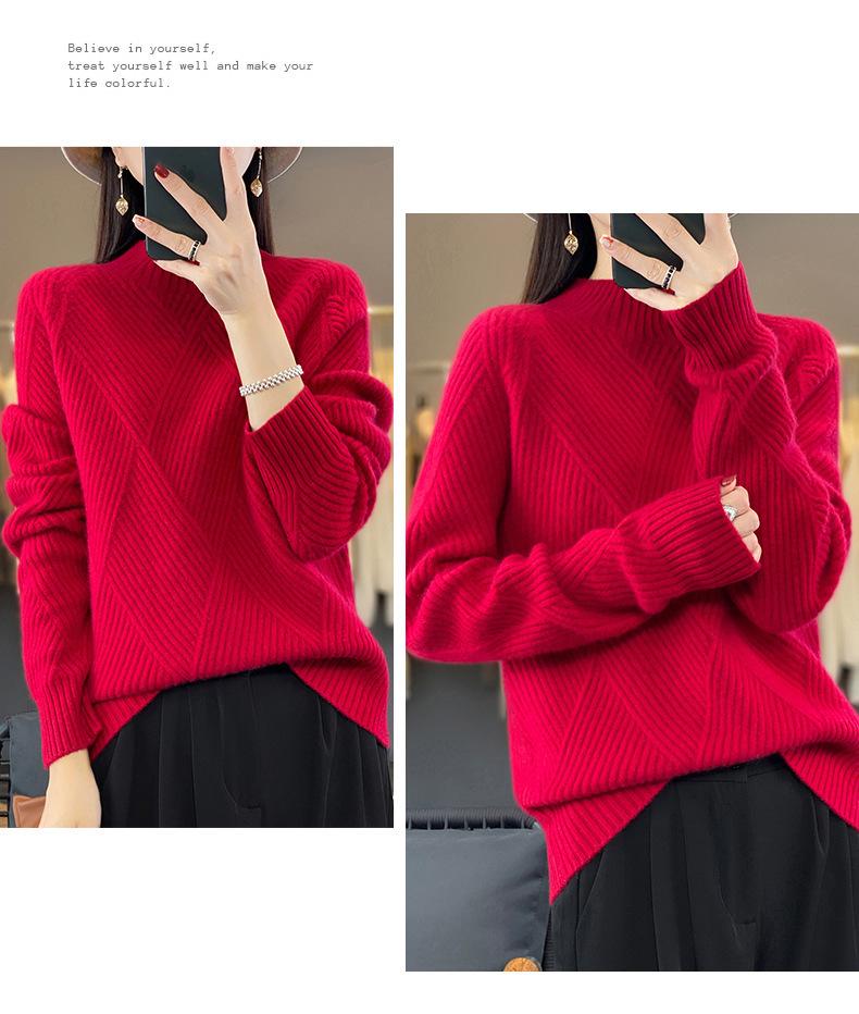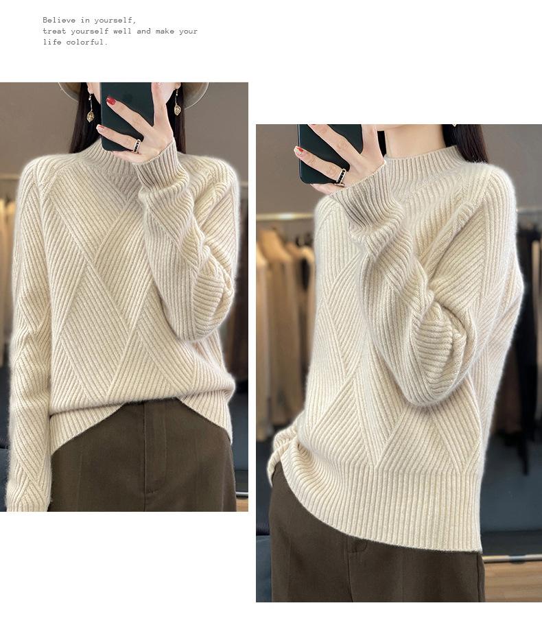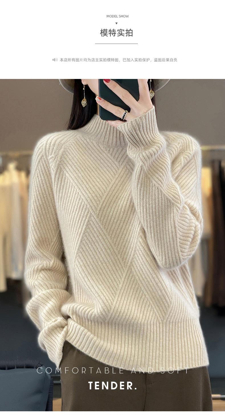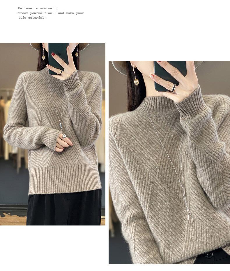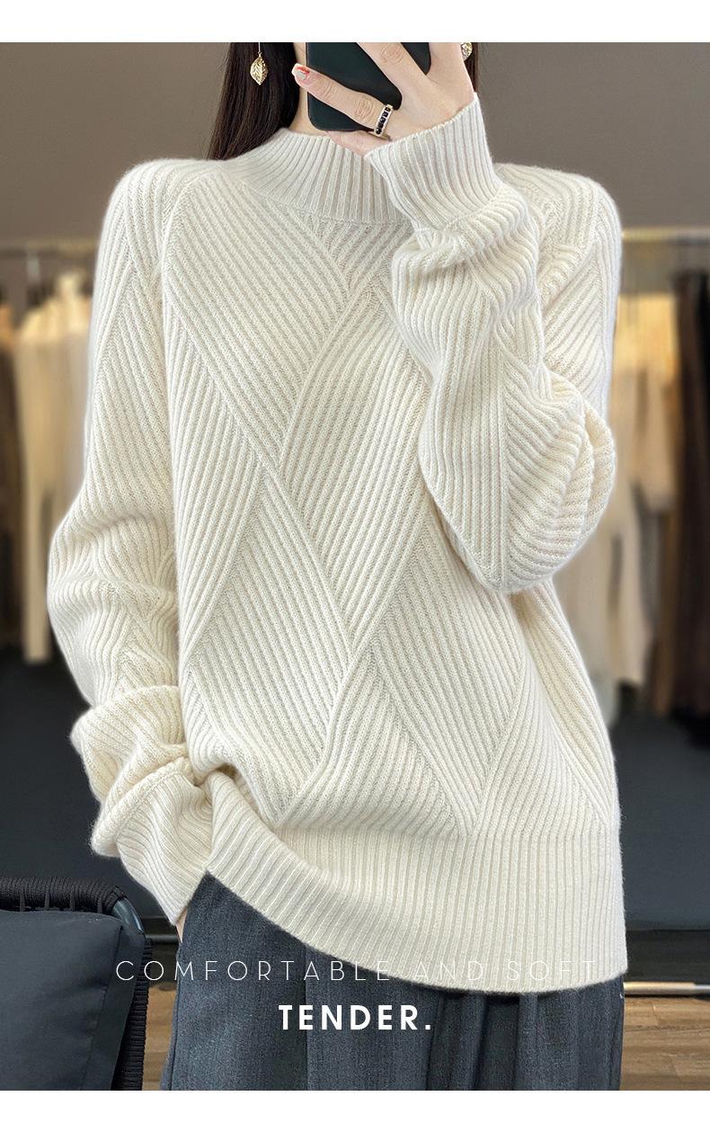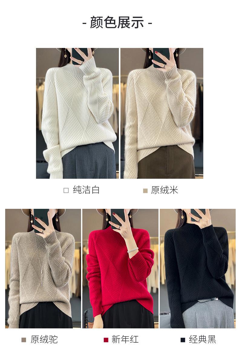 Tops de Otoño e Invierno, Suéteres de Lana, Suéteres de Cuello Alto Medio para Mujer, Camisas Base Holgadas de Estilo Coreano Elegantes, Tops Versátiles