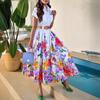 Vestido de manga corta con botones y estampado floral, estilo europeo y americano, con cuello camisero grande y cinturón, 2023